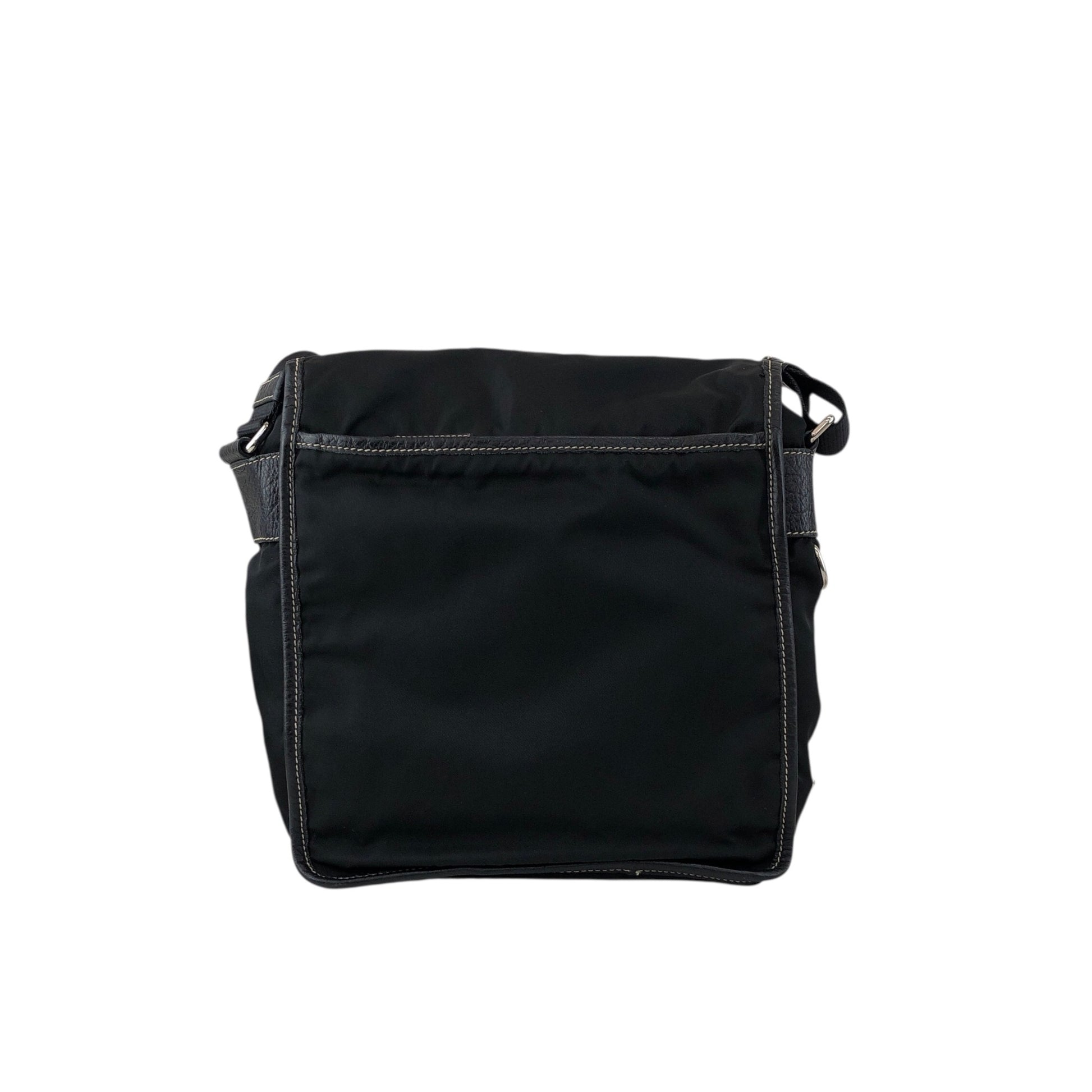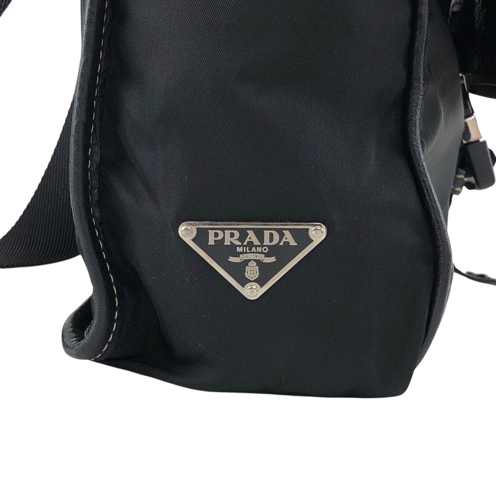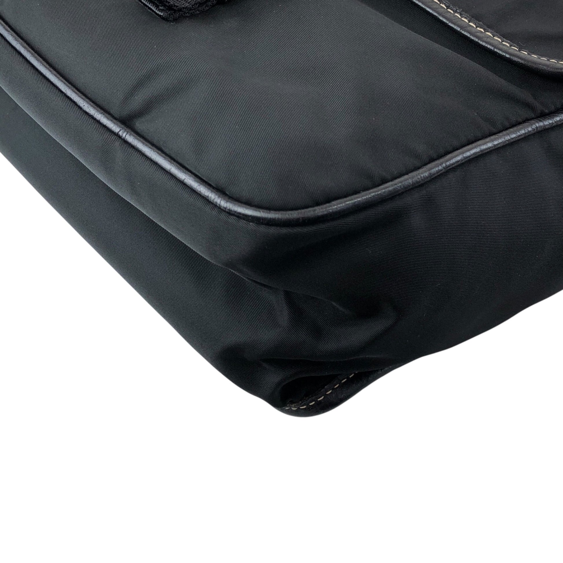 PRADA Tessuto Triangle Logo Front Buckle Shoulder bag Black Vintage bcdpsd