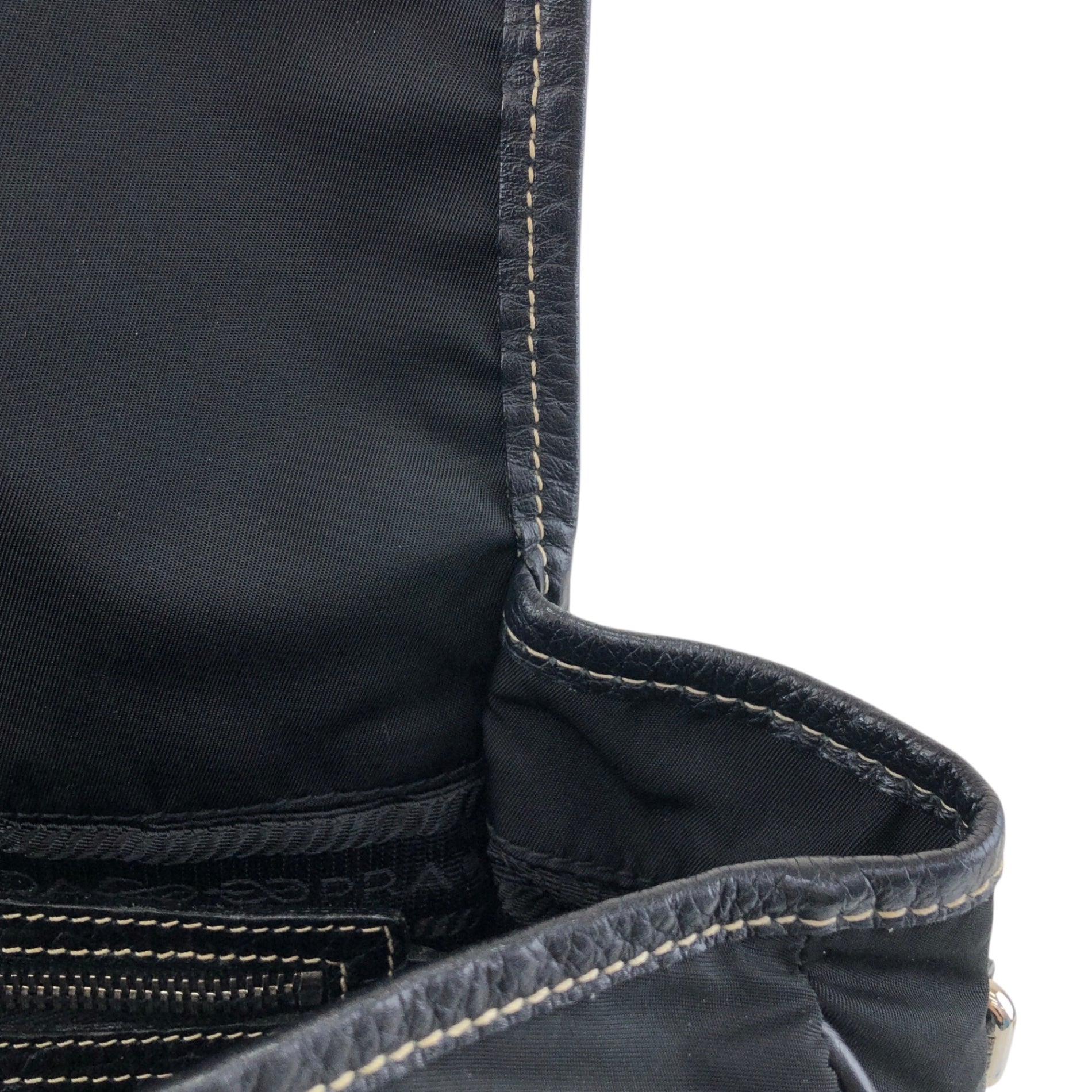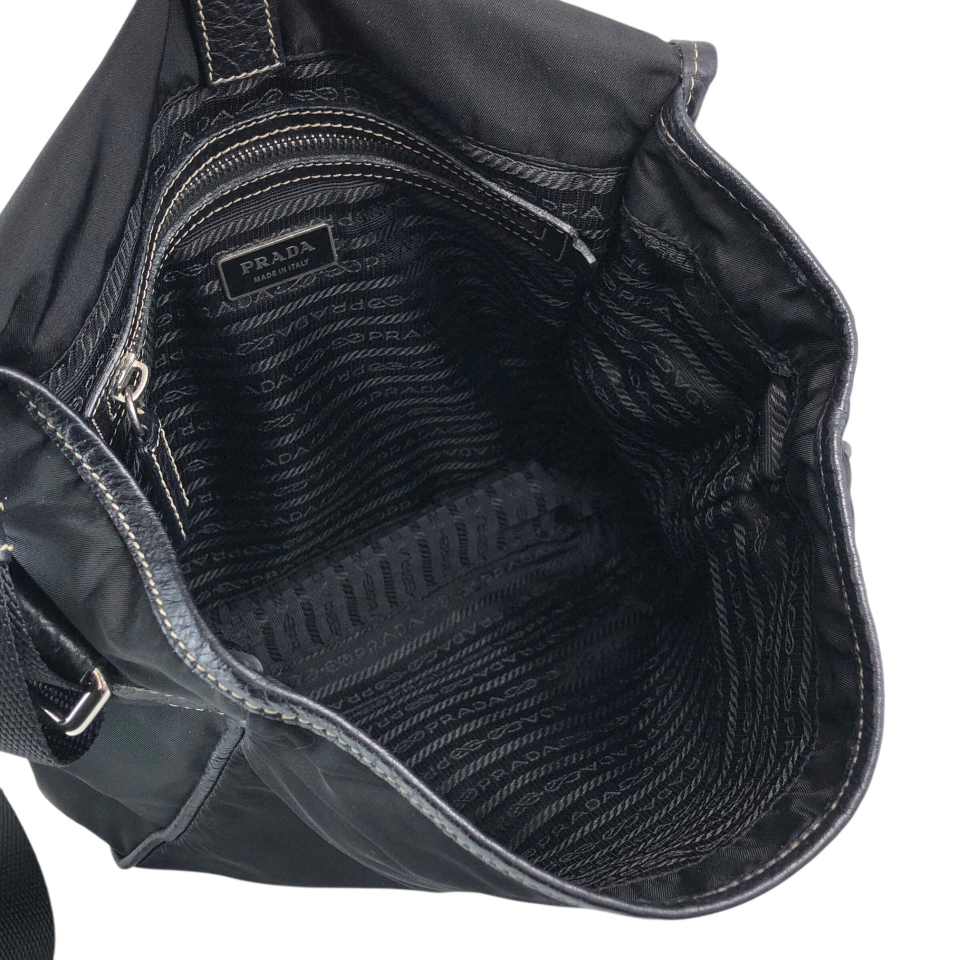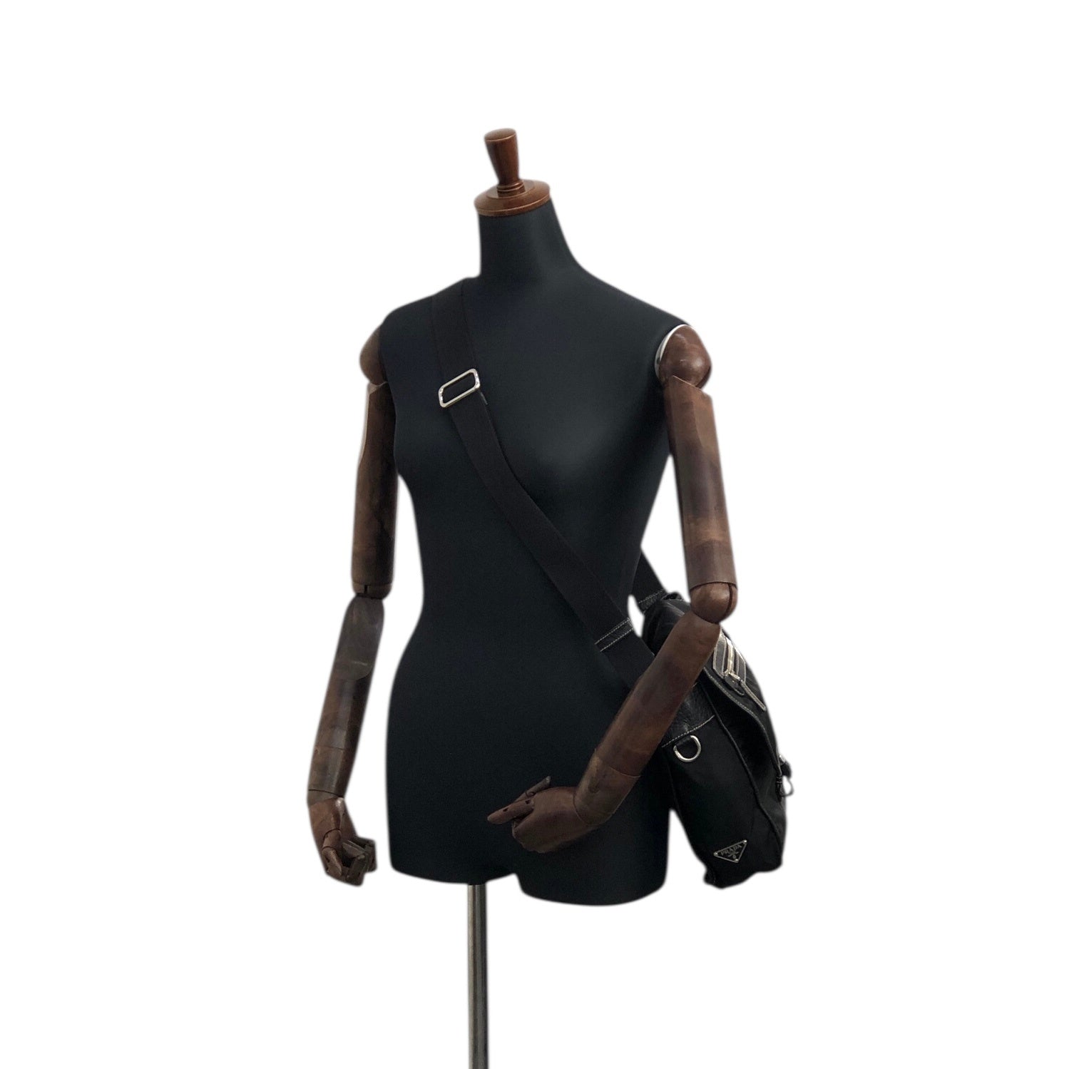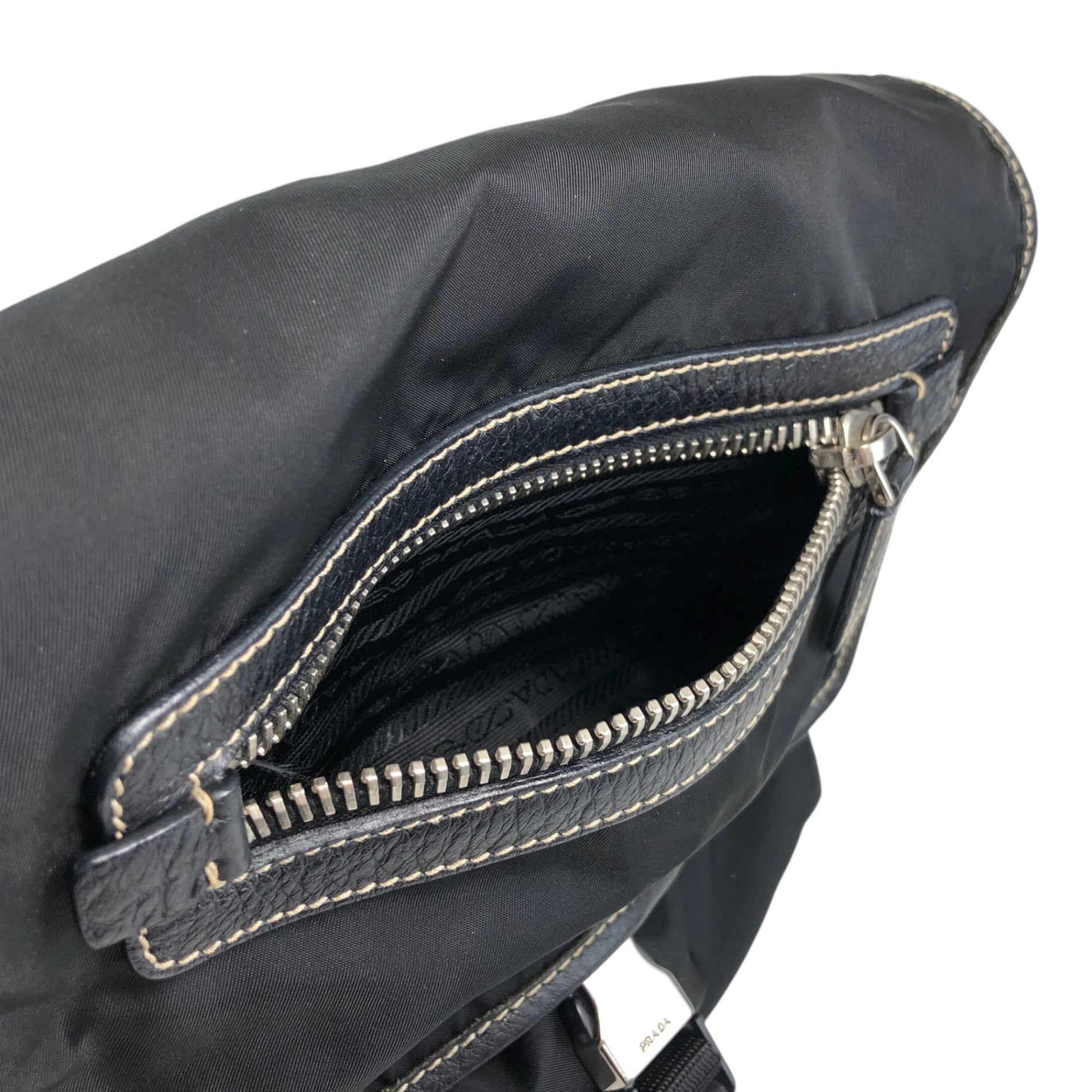 PRADA Tessuto Triangle Logo Front Buckle Shoulder bag Black Vintage bcdpsd