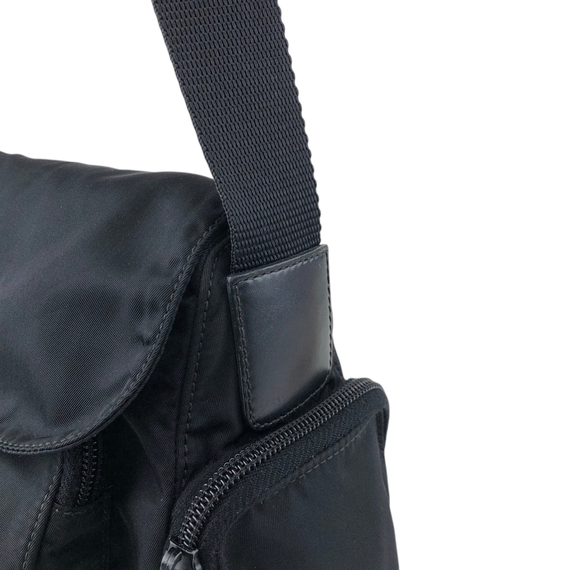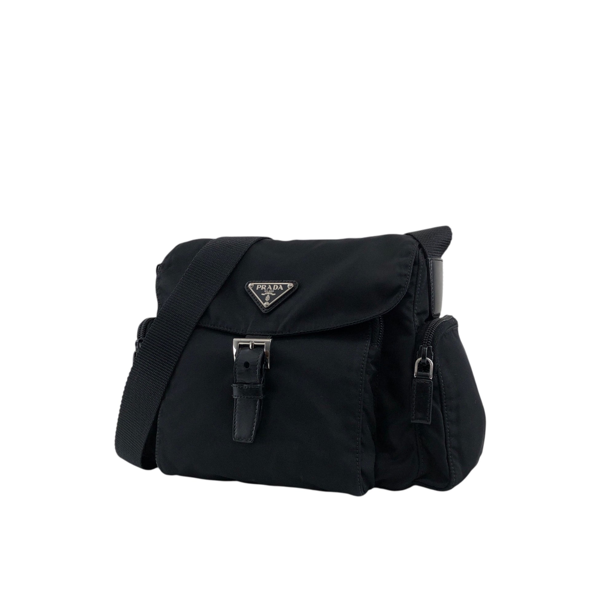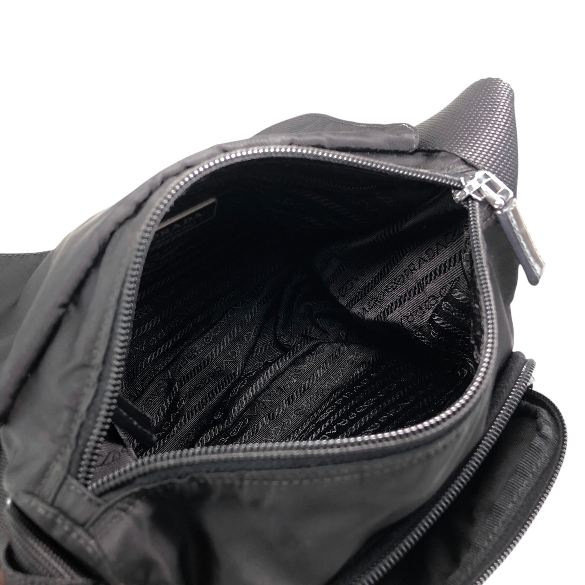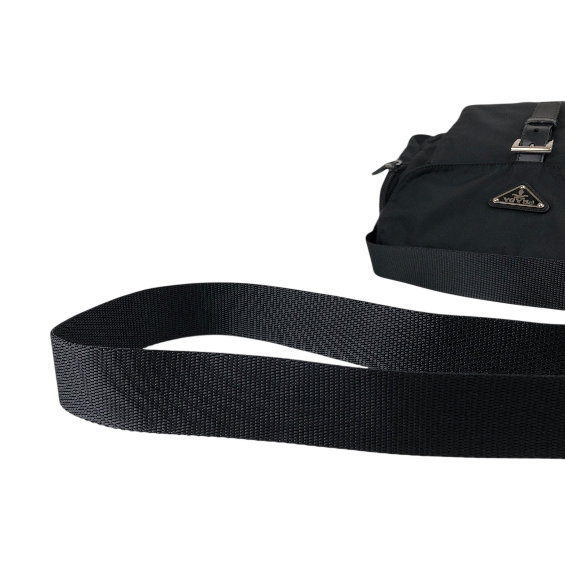 PRADA Tessuto Triangle Logo Front Buckle Side Pocket Shoulder bag Black Vintage pvgpkk