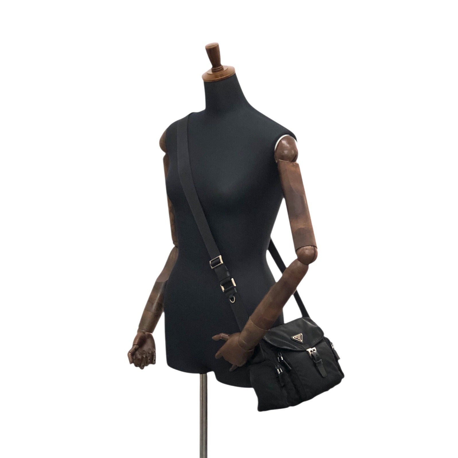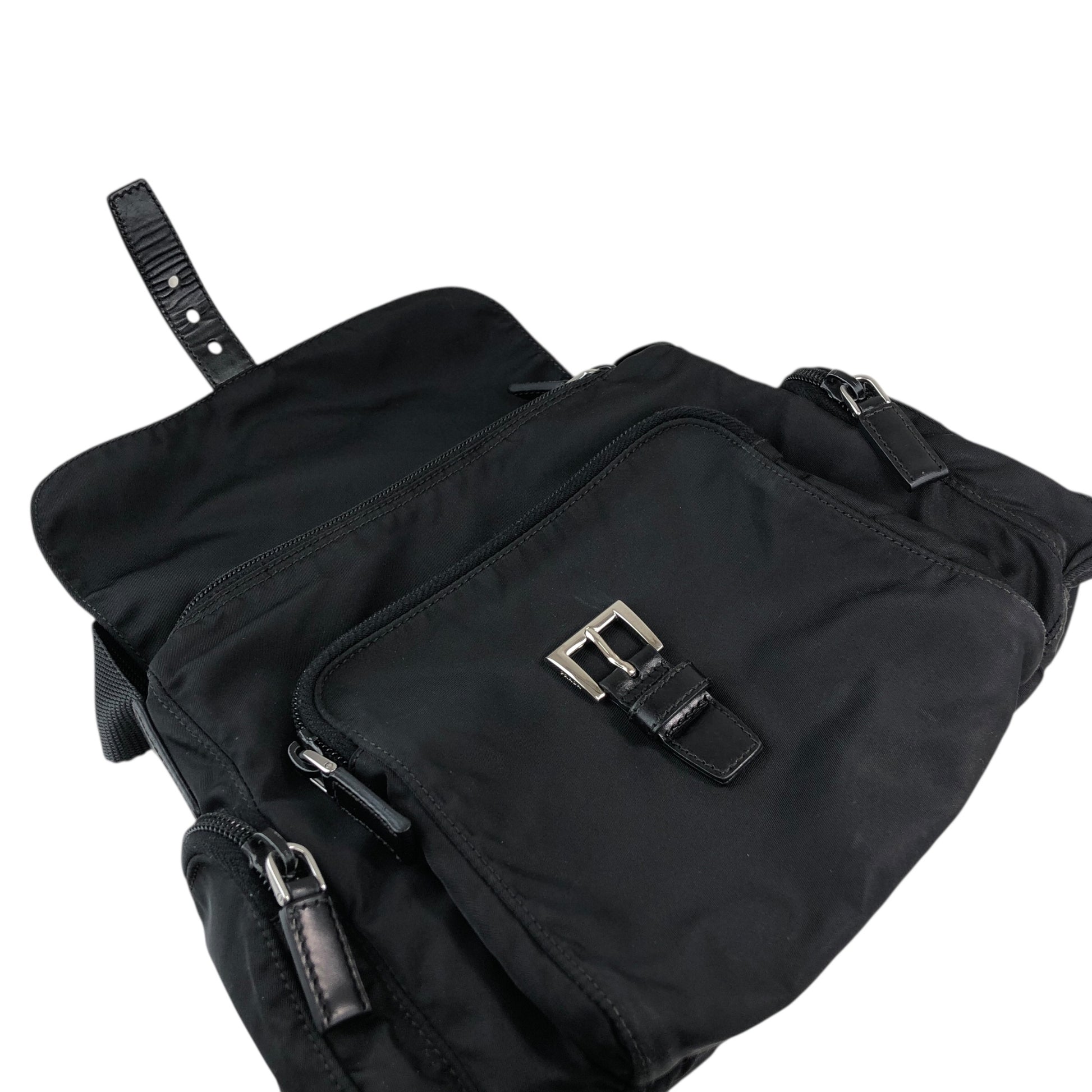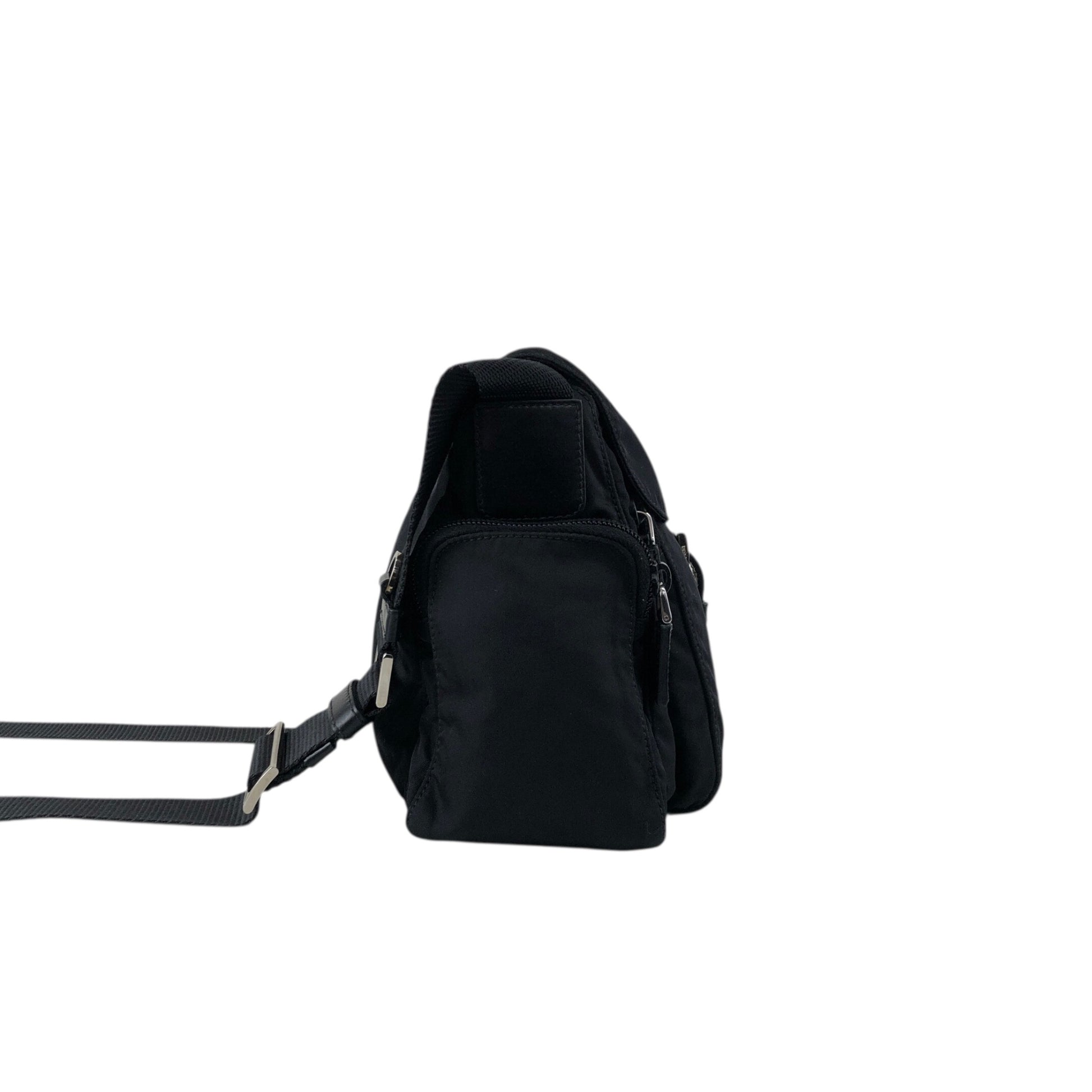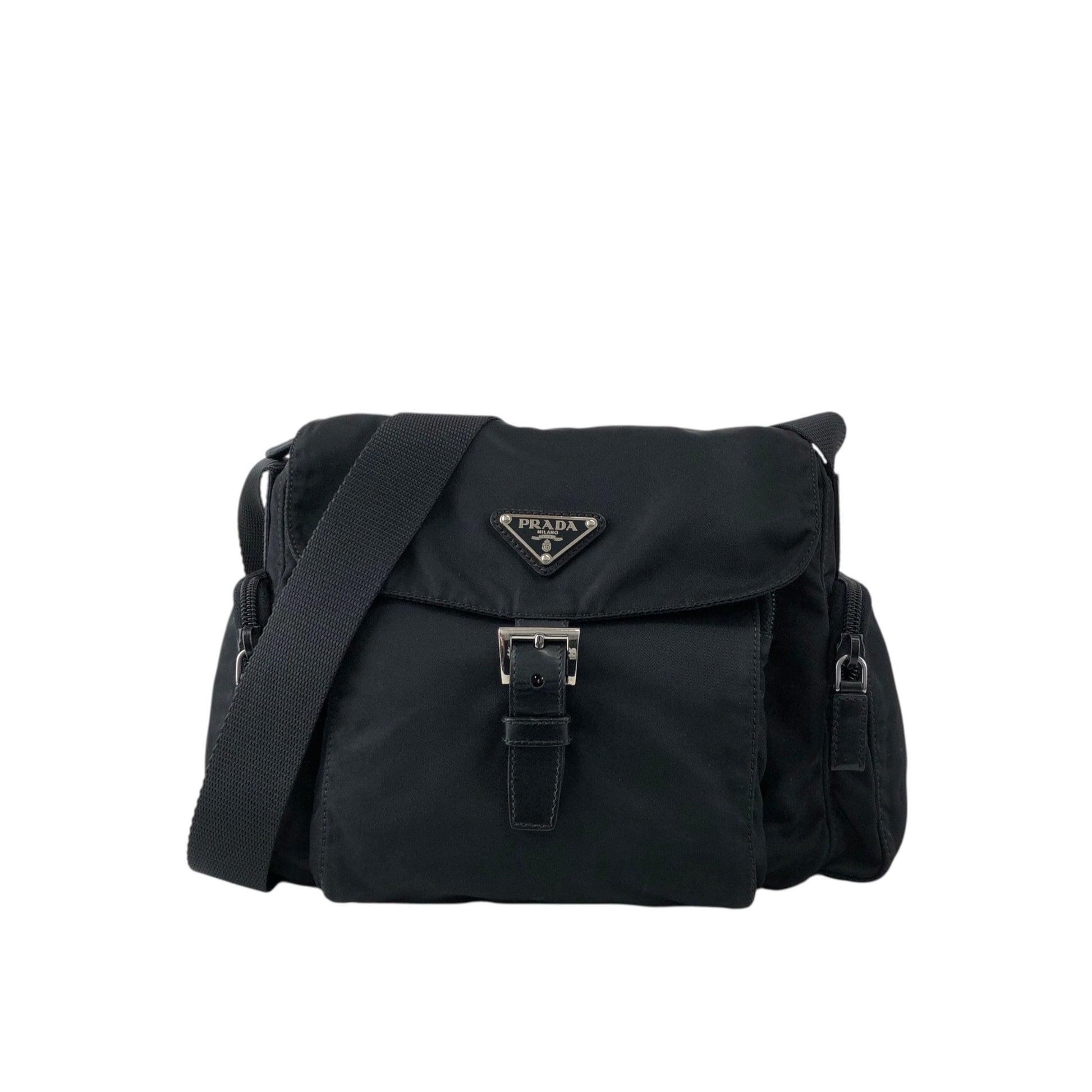 PRADA Tessuto Triangle Logo Front Buckle Side Pocket Shoulder bag Black Vintage pvgpkk