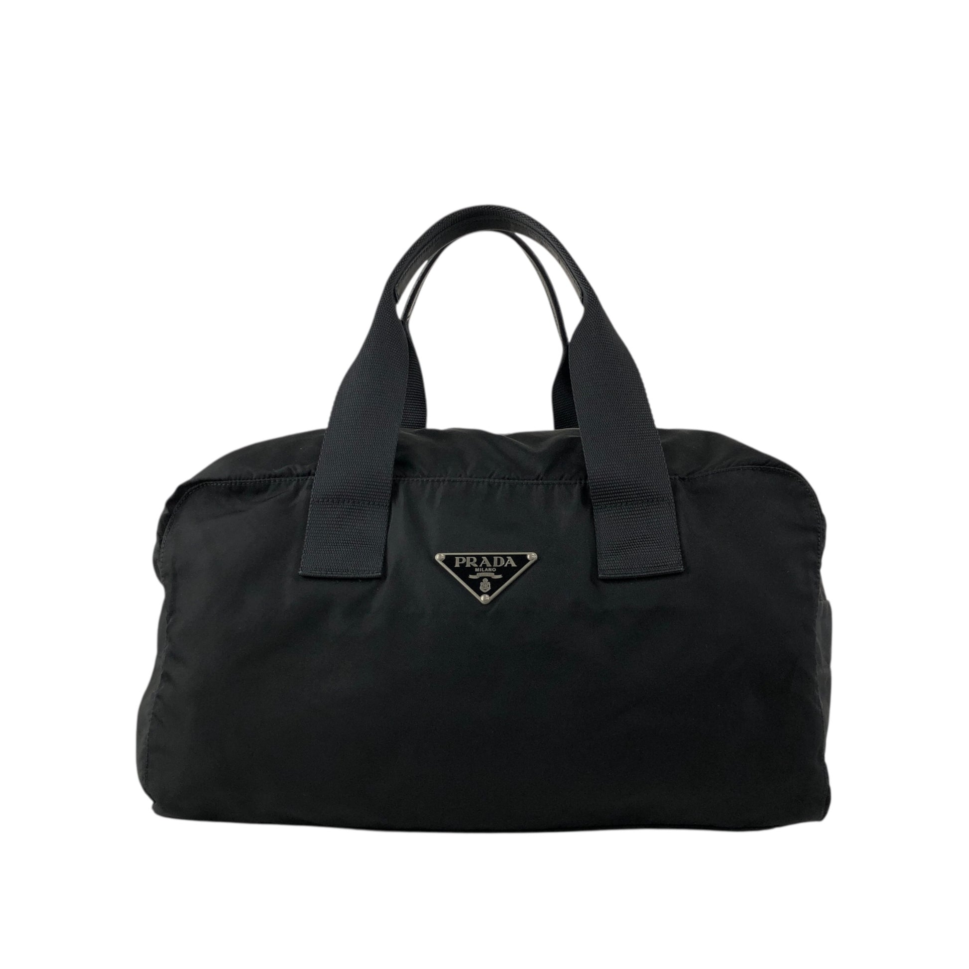 PRADA Tessuto Triangle Logo Handbag Boston bag Black Vintage ycwtum