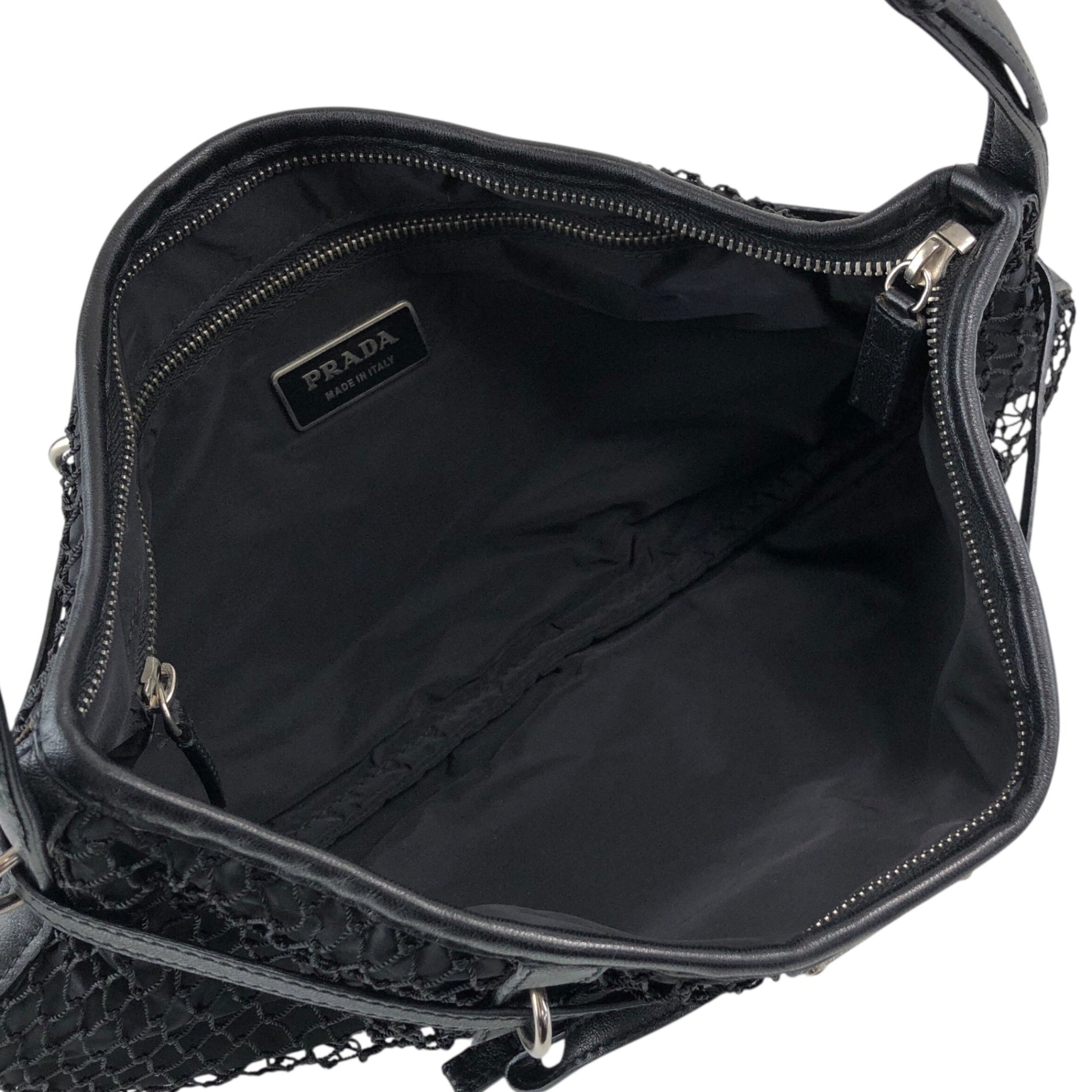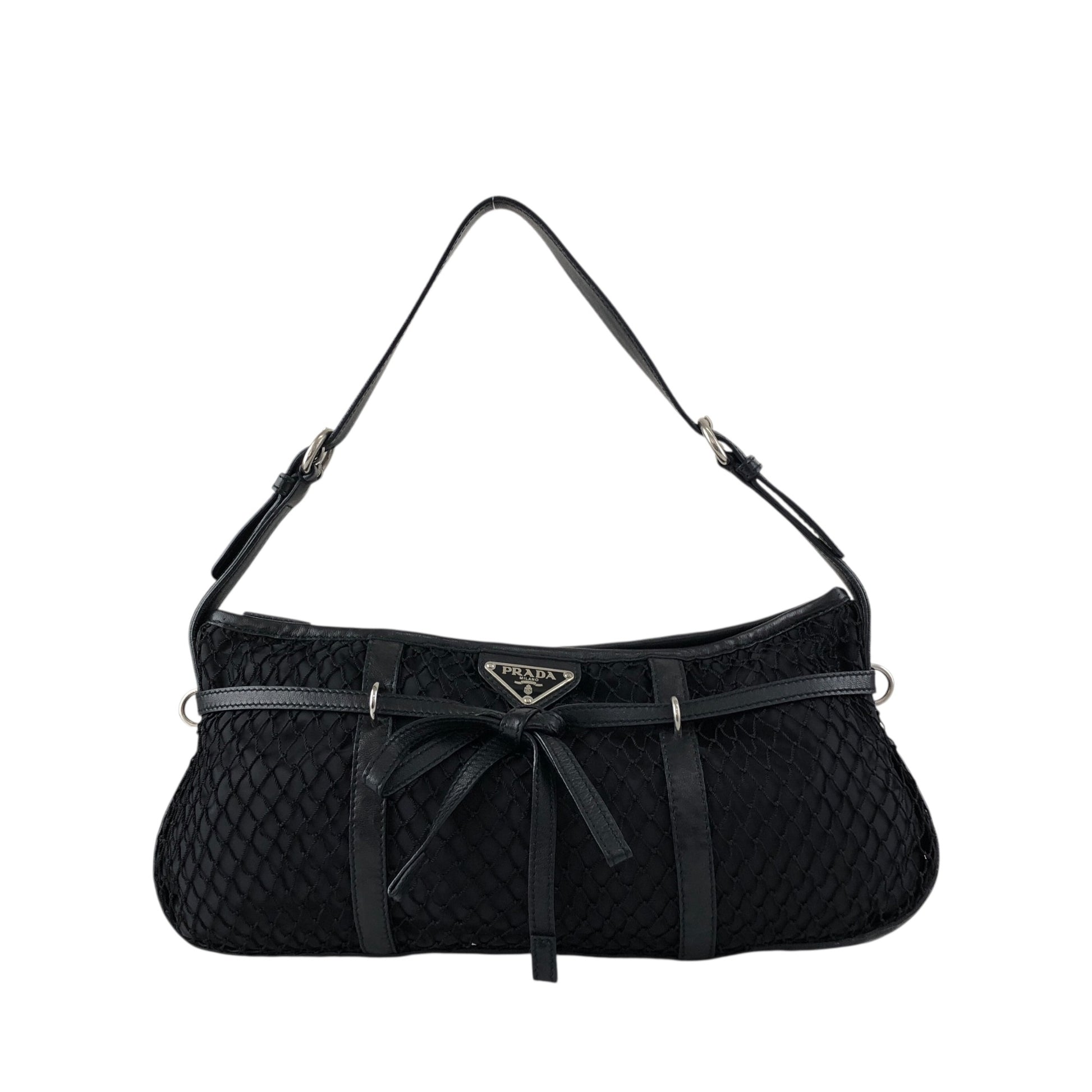 PRADA Tessuto Triangle Logo Shoulder bag Black Vintage 7hmnip