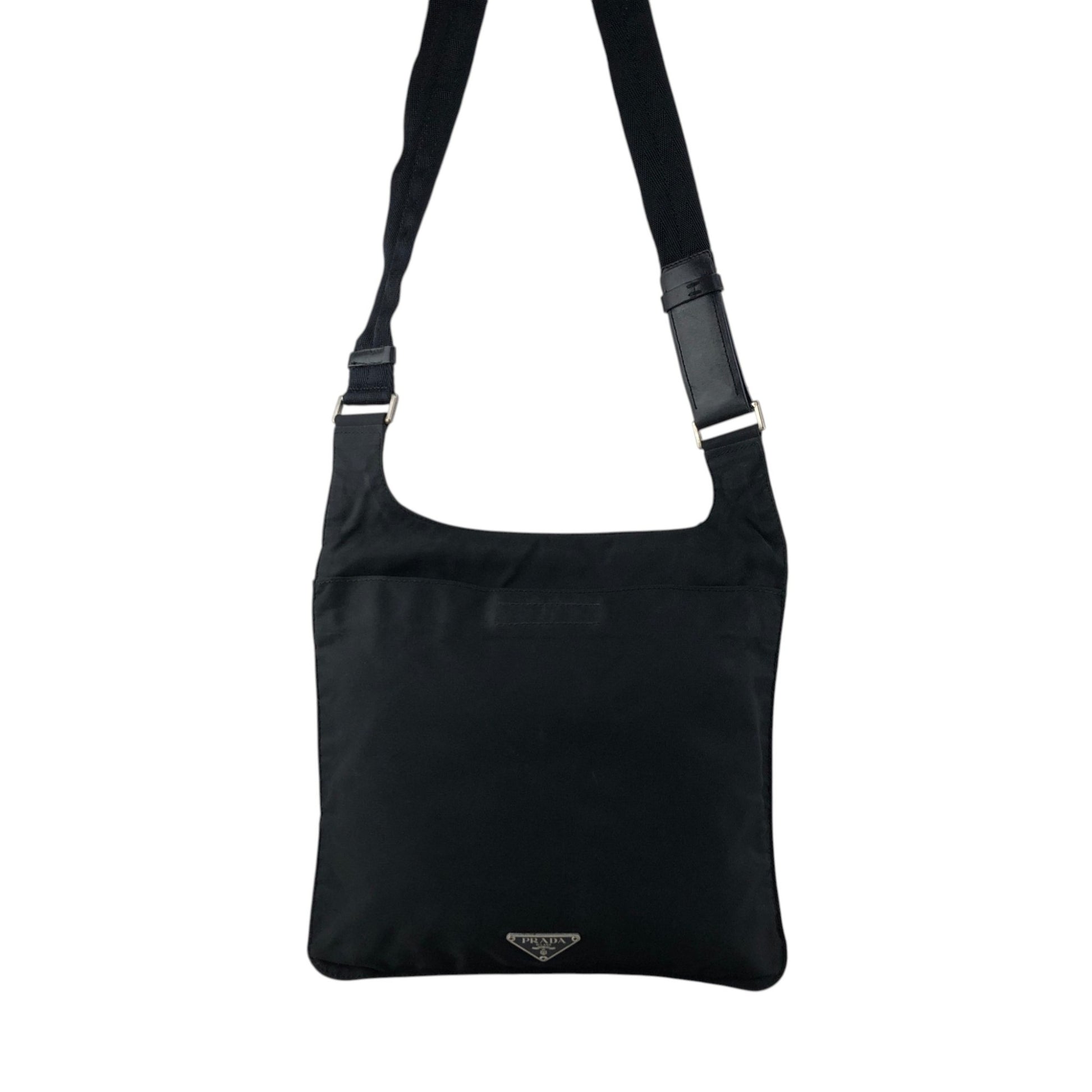 PRADA Tessuto Triangle Logo Shoulder bag Black Vintage h7a6s3