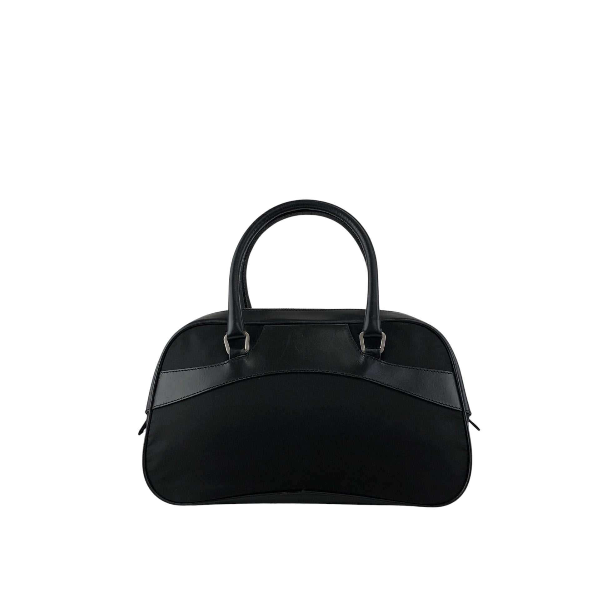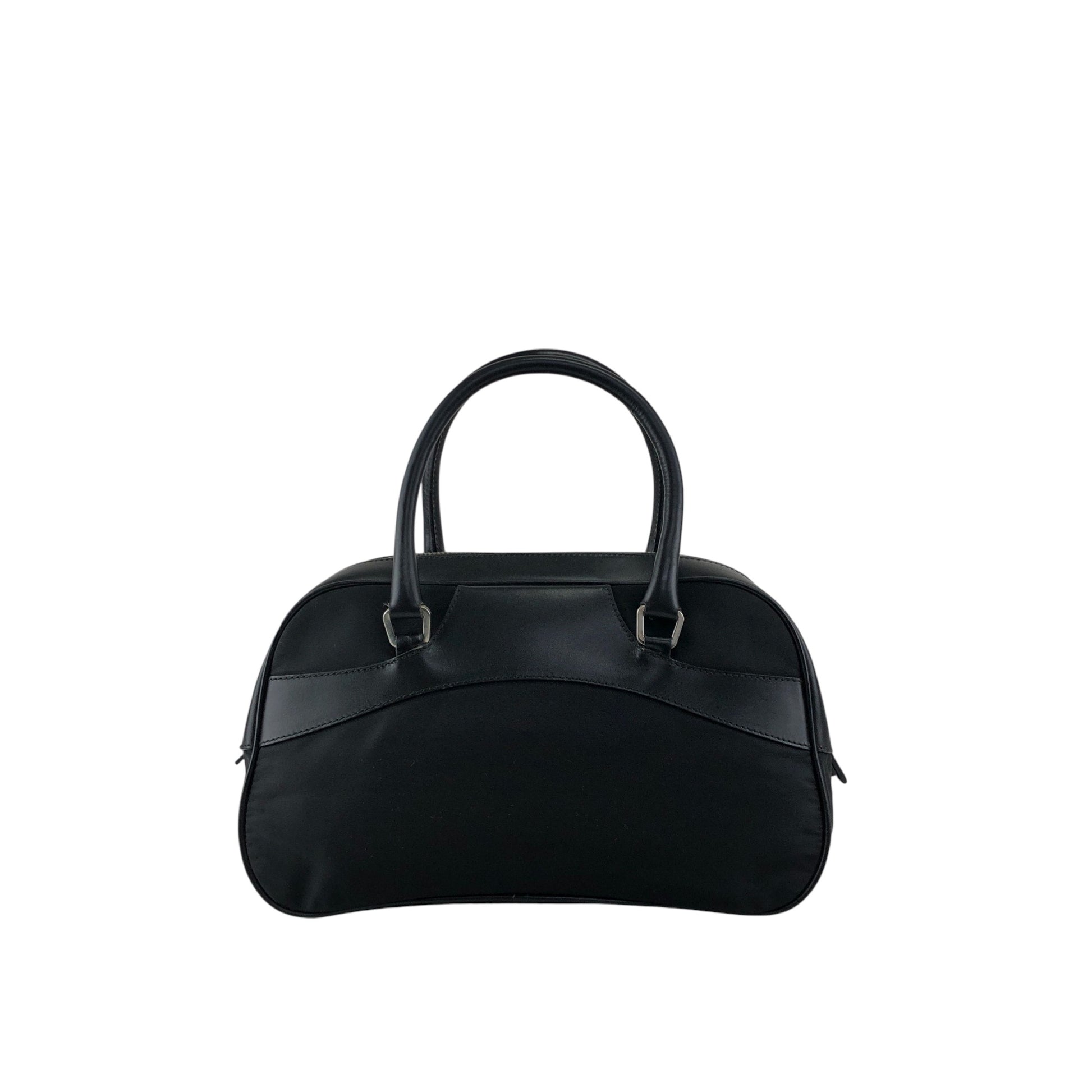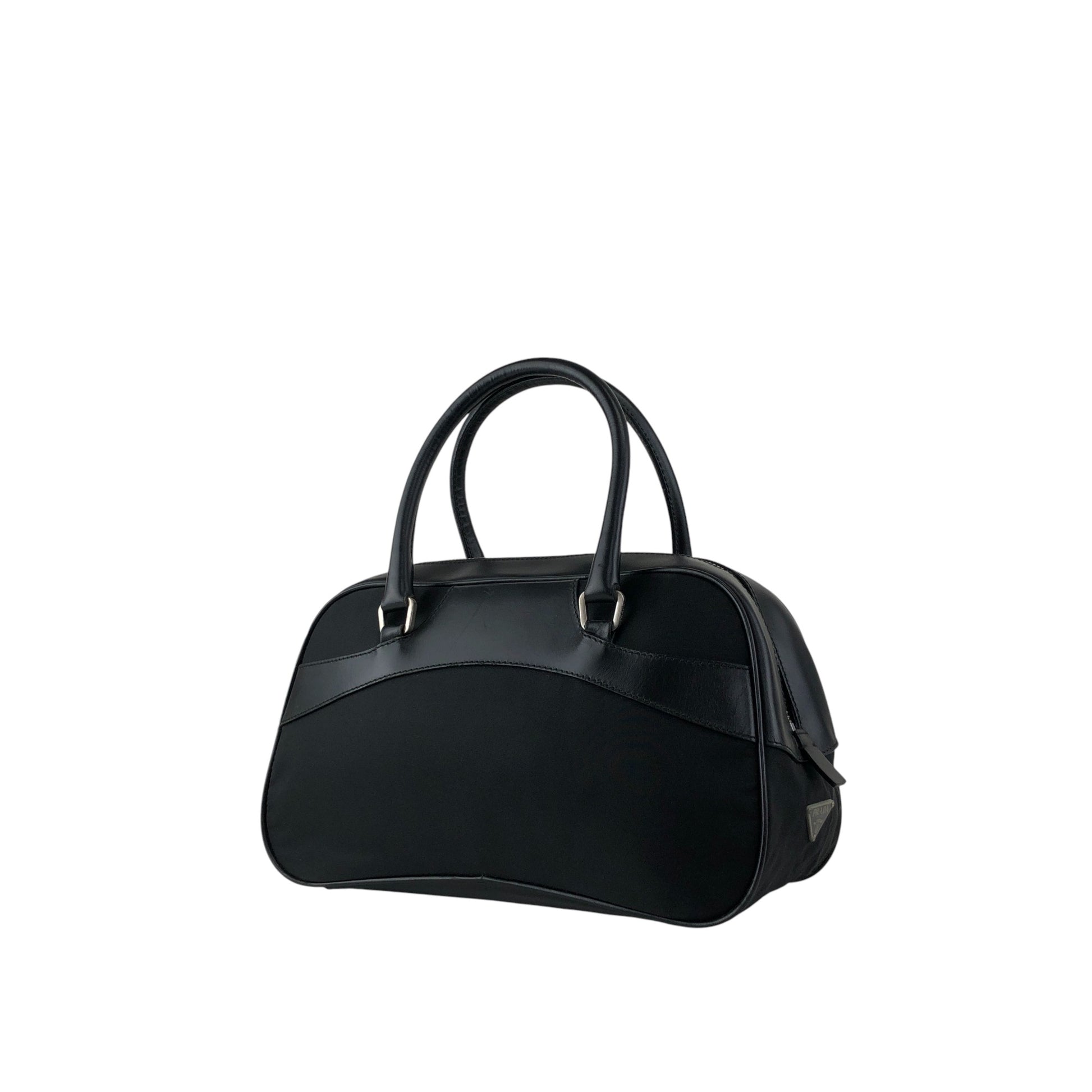 PRADA Tessuto Triangle Logo Small Boston bag Handbag Black Vintage ezhmex