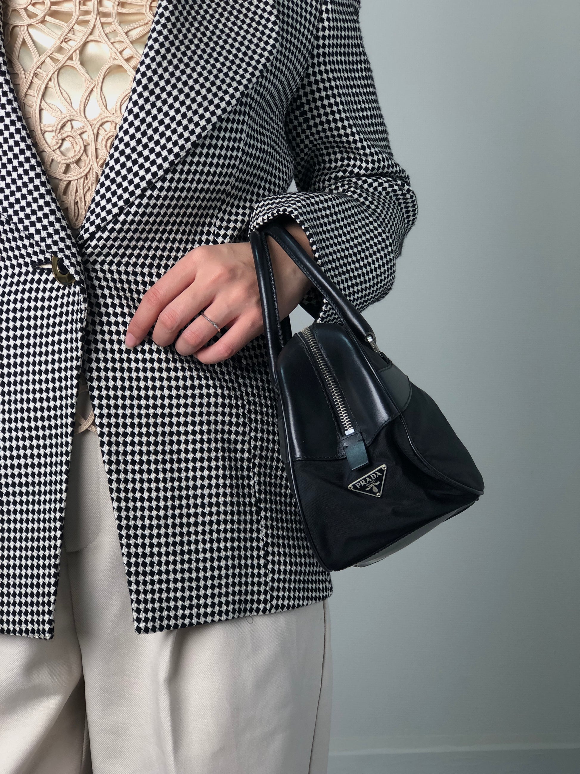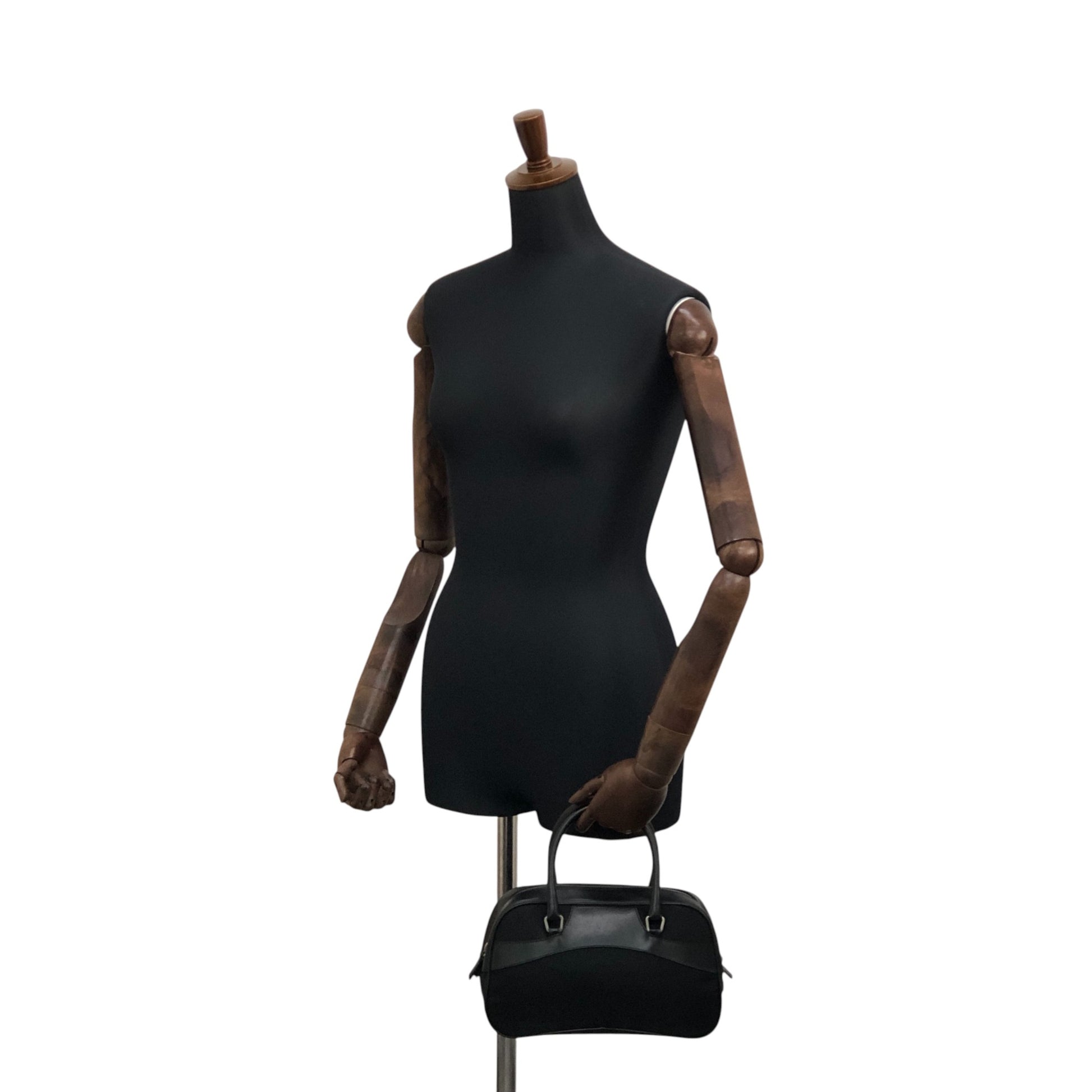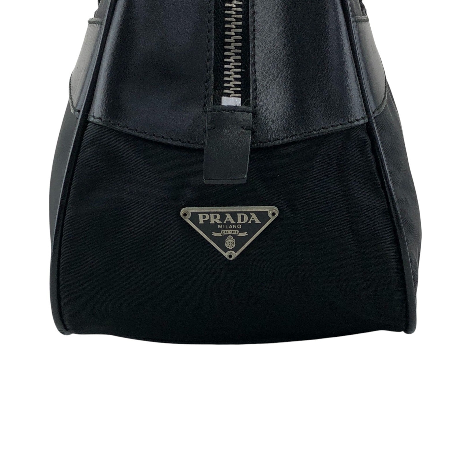 PRADA Tessuto Triangle Logo Small Boston bag Handbag Black Vintage ezhmex