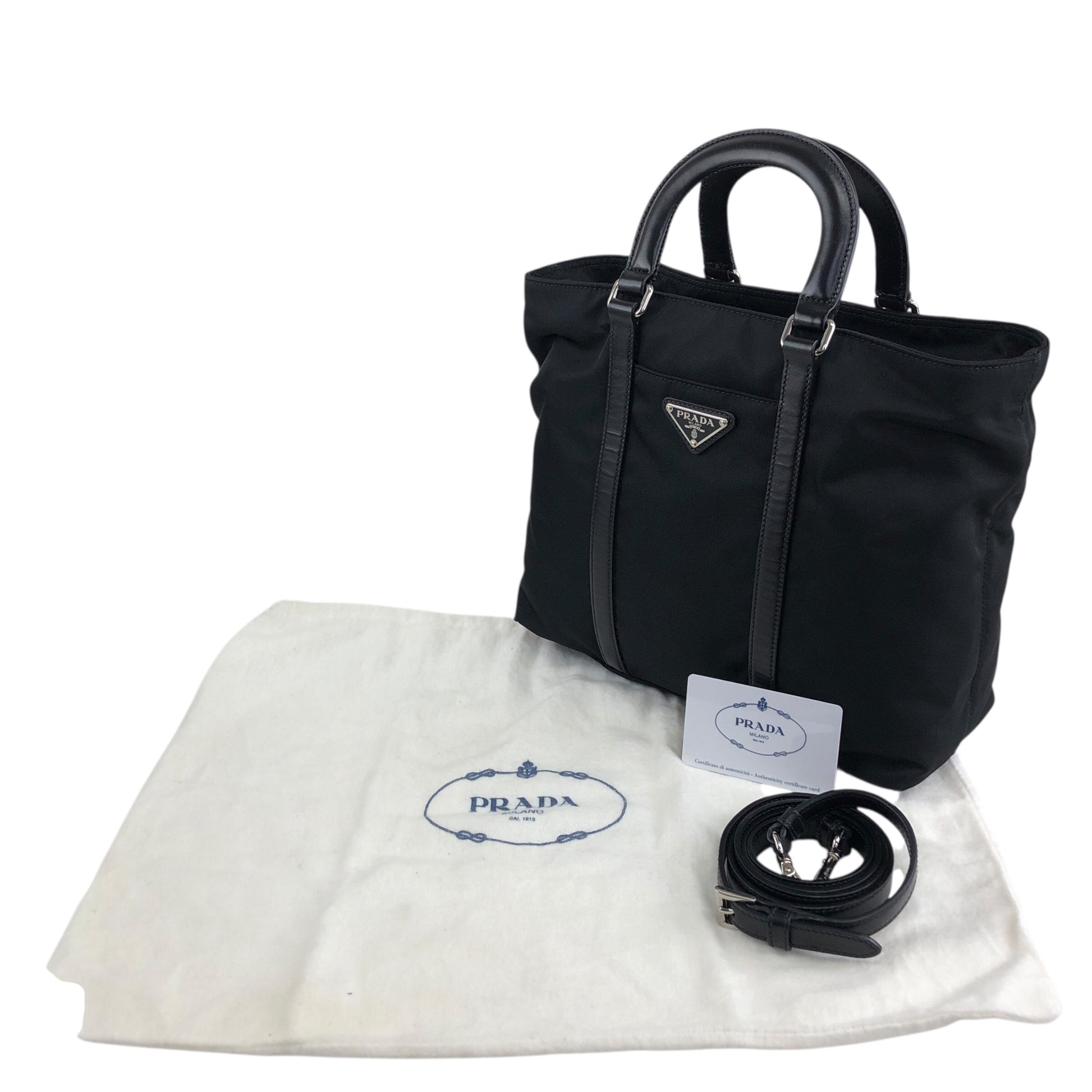 PRADA Tessuto Triangle Logo Two-way Handbag Shoulder bag Black Vintage xd7tr6