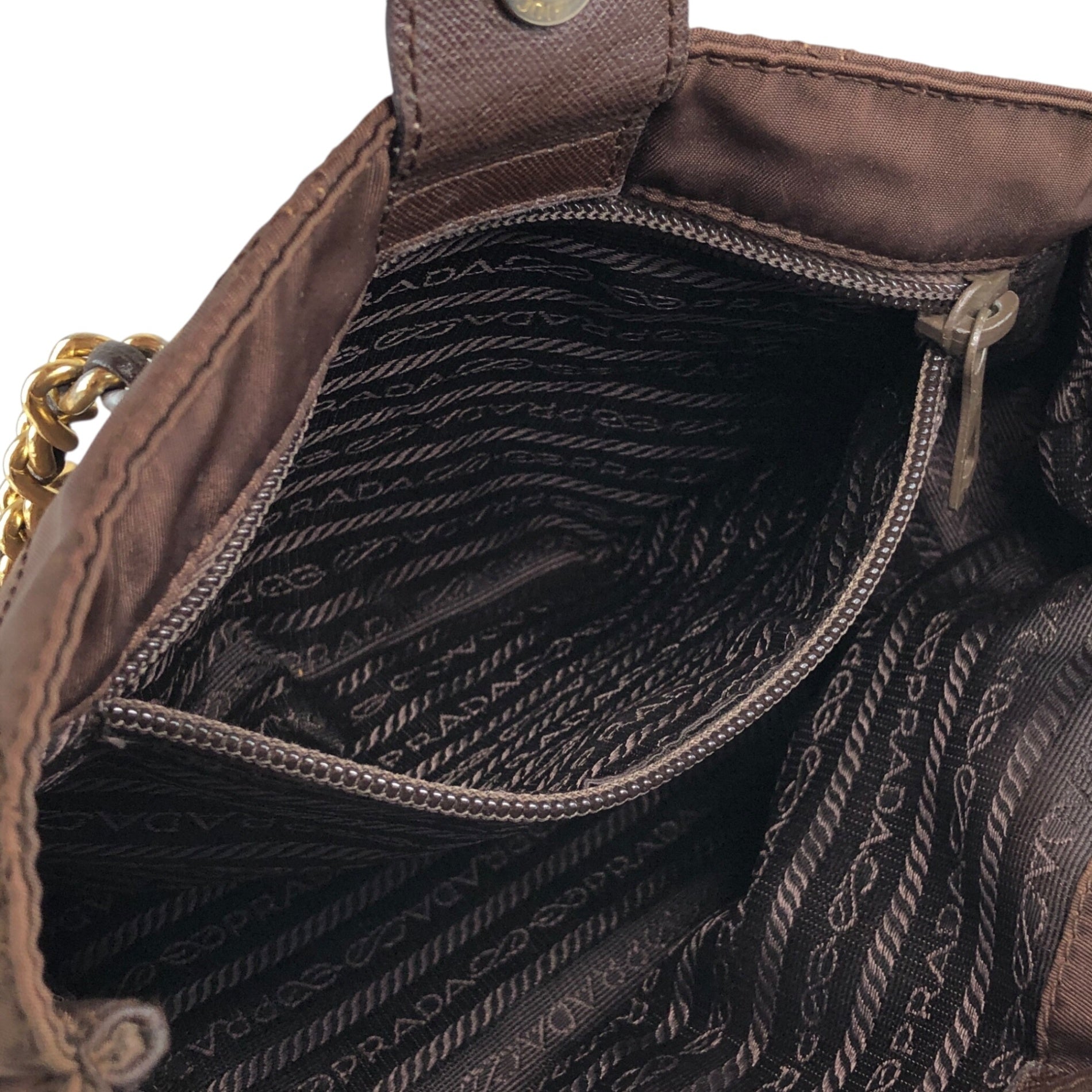 PRADA Triangle Logo Chain Shoulder bag Brown Vintage da3gbv
