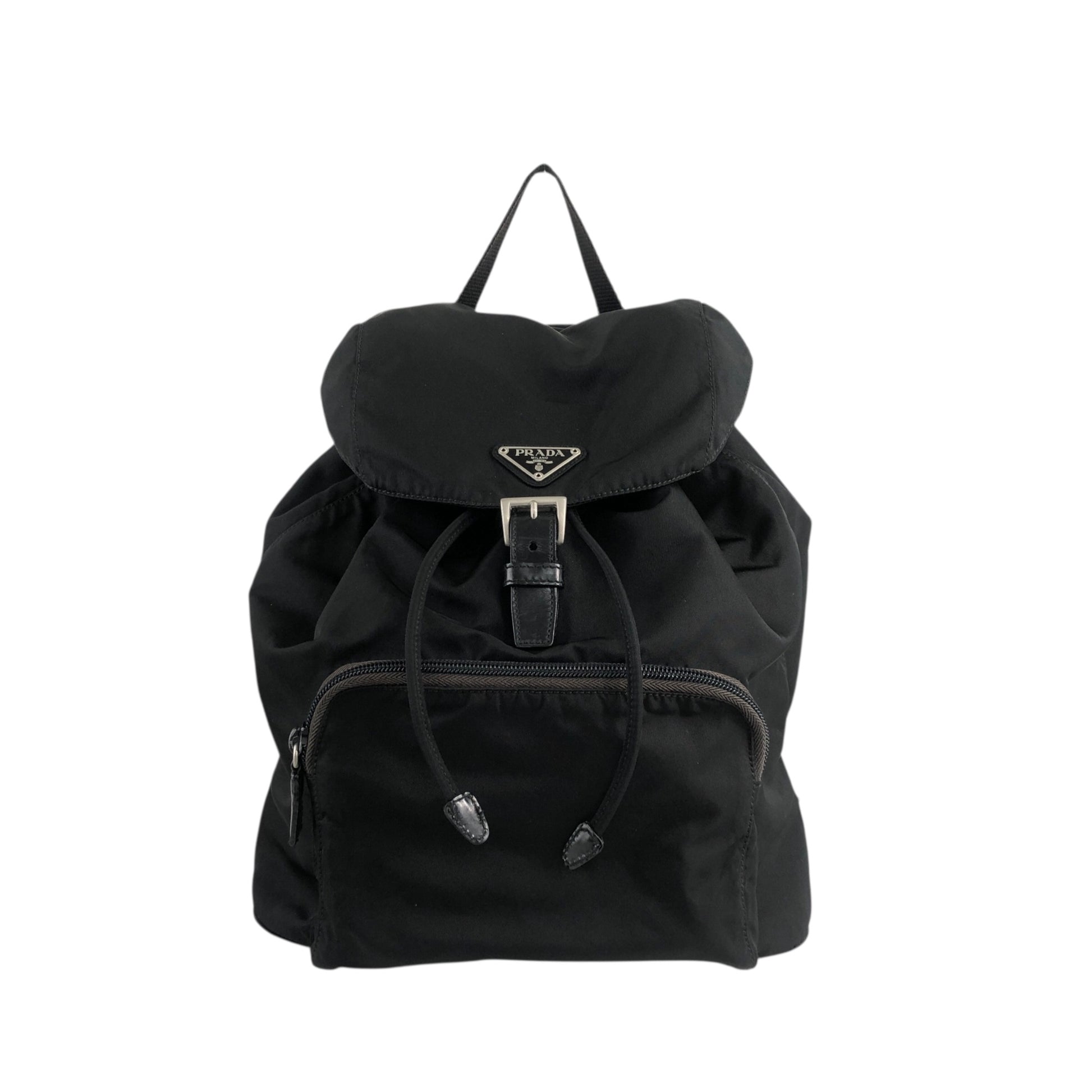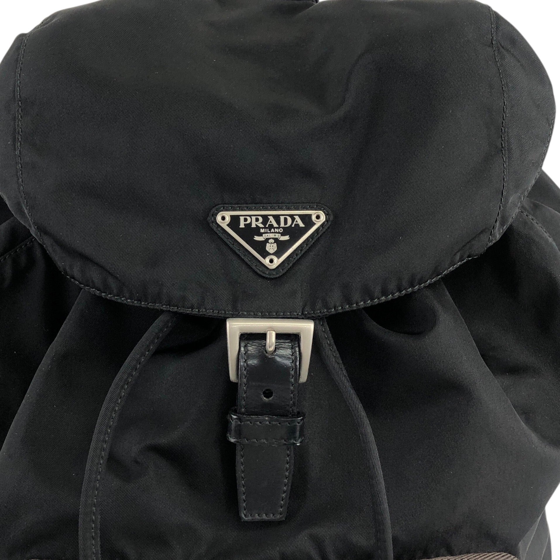 PRADA Tessuto Triangle Logo Front Buckle Backpack Black Vintage adjm4v