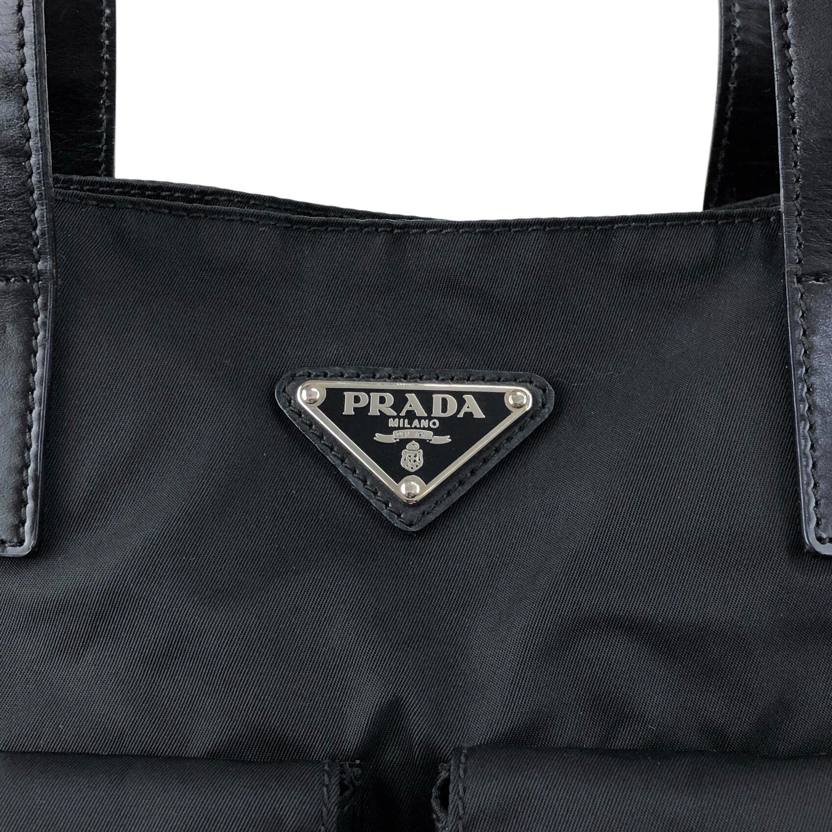 PRADA Triangle Logo Front Buckle Totebag Black Vintage 7sstfx