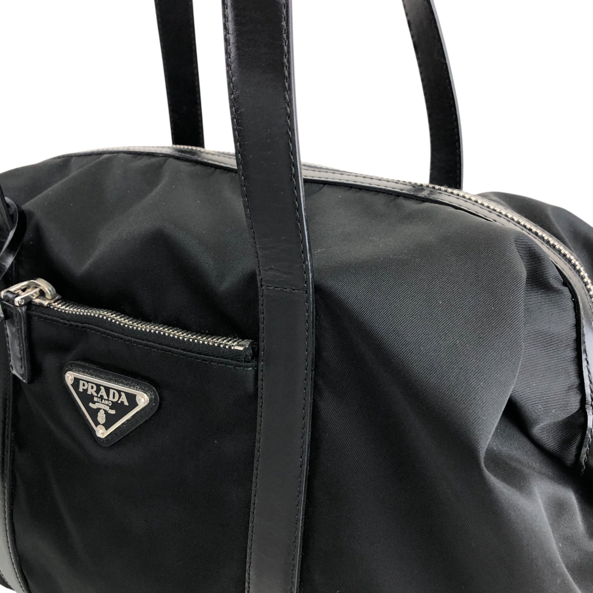 PRADA Tessuto Triangle Logo Handbag Black Vintage vgh2dk