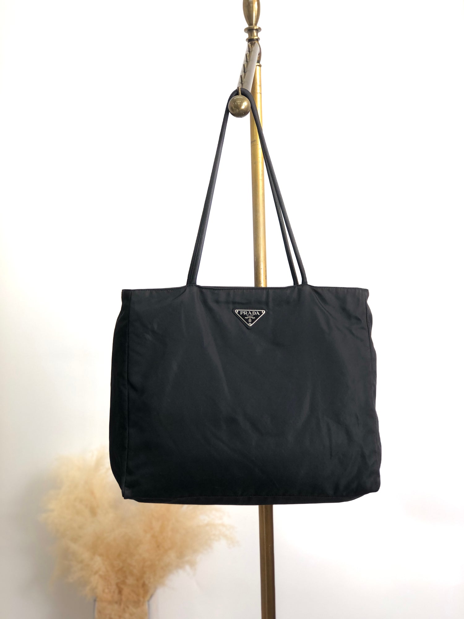 PRADA Tessuto Triangle Logo Totebag Black Vintage rsxruc