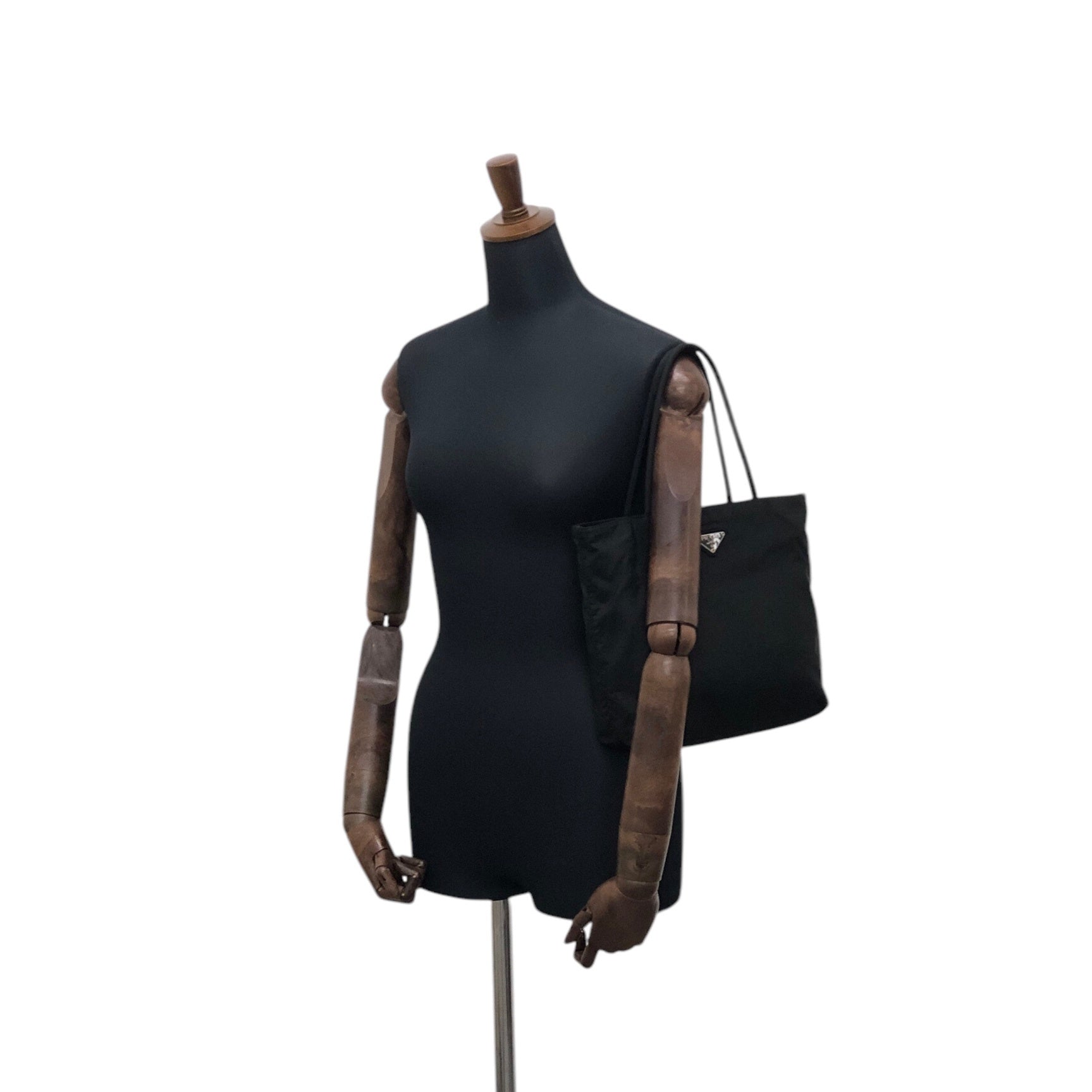 PRADA Tessuto Triangle Logo Totebag Black Vintage wen6ju