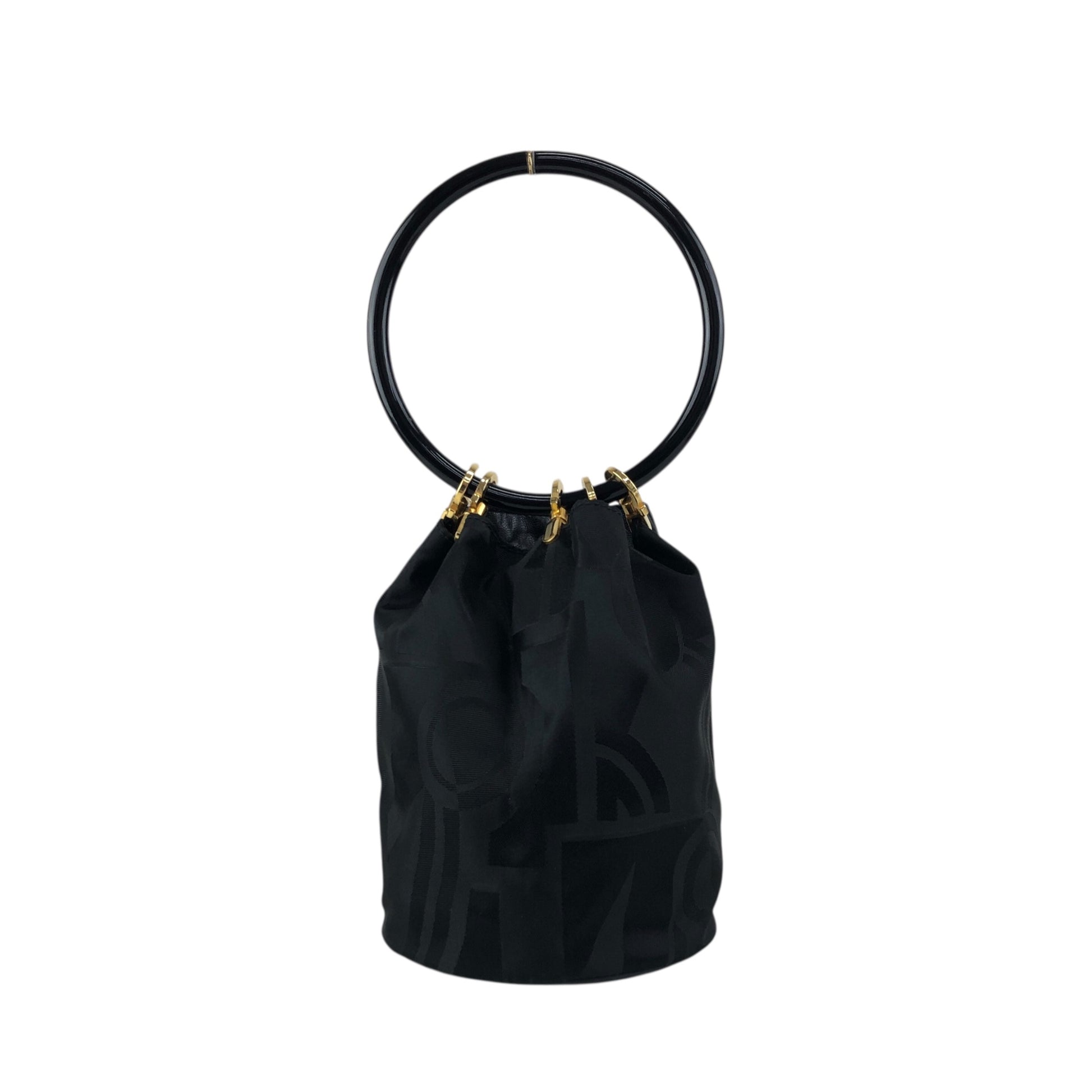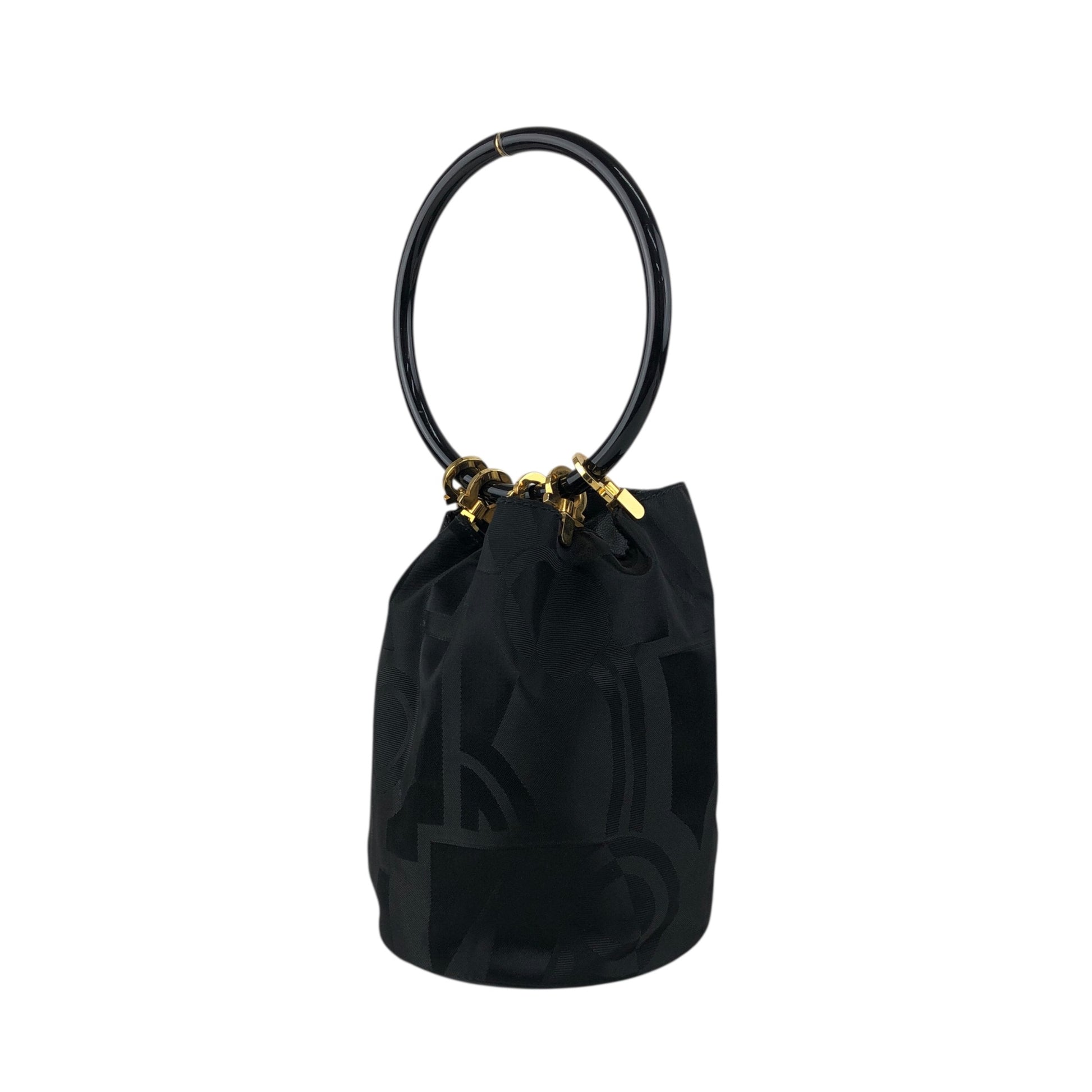 Salvatore Ferragamo Gancini Drawstring Small Handbag Black Vintage tigpxb