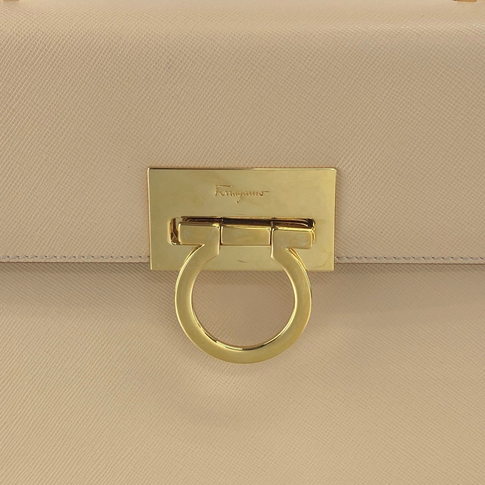 Salvatore Ferragamo Gancini Two-way Handbag Shoulder bag Beige Vintage khdcf6