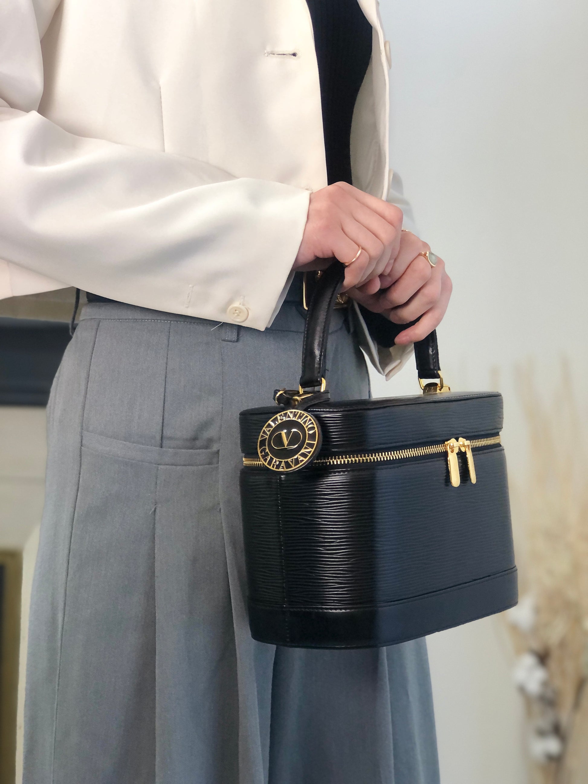 VALENTINO GARAVANI Logo Charm Two-way Handbag Shoulder bag Black Vintage 58zrvp