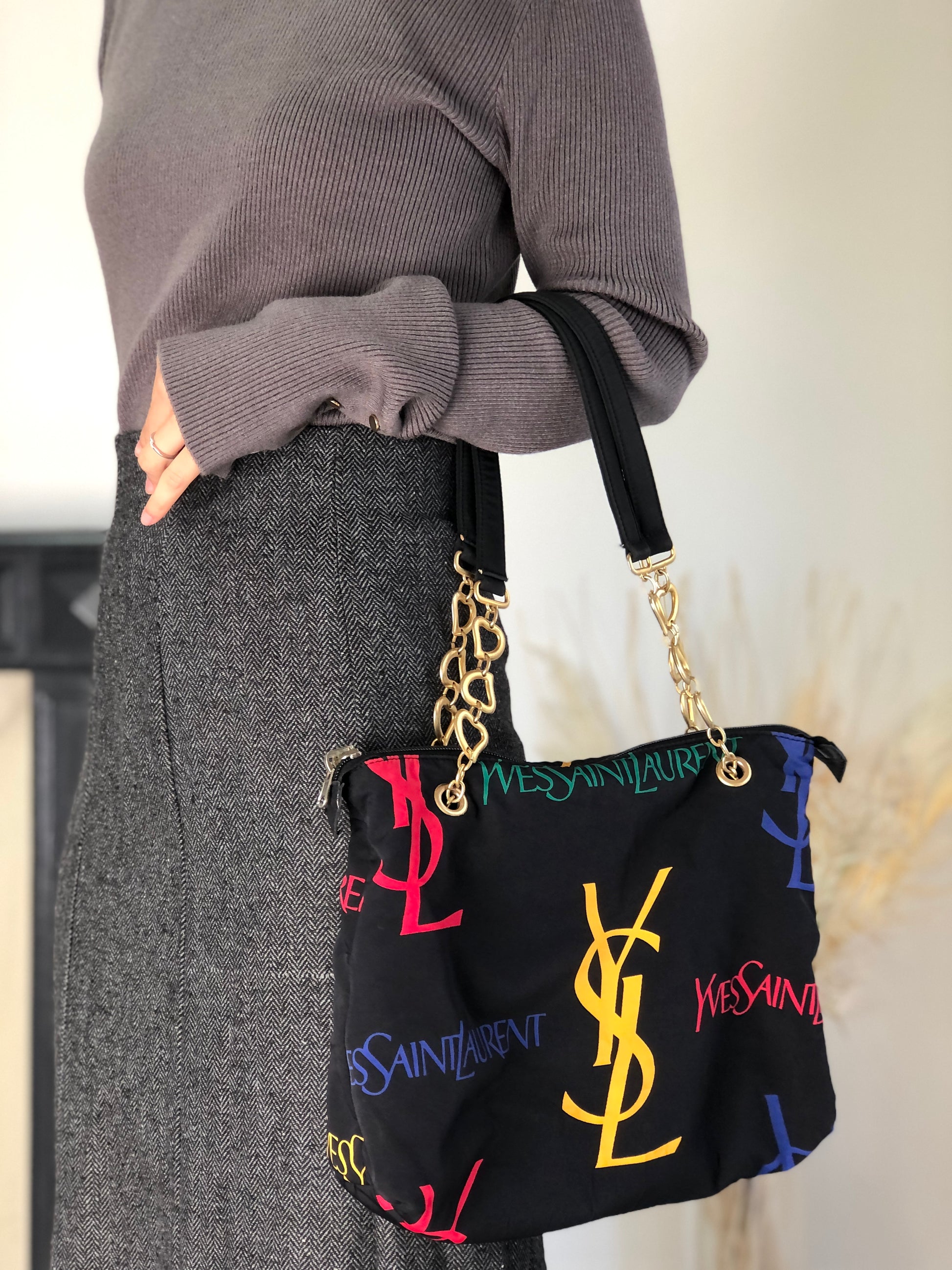 Yves Saint Laurent Logo Chain Totebag Black Vintage fniuvx