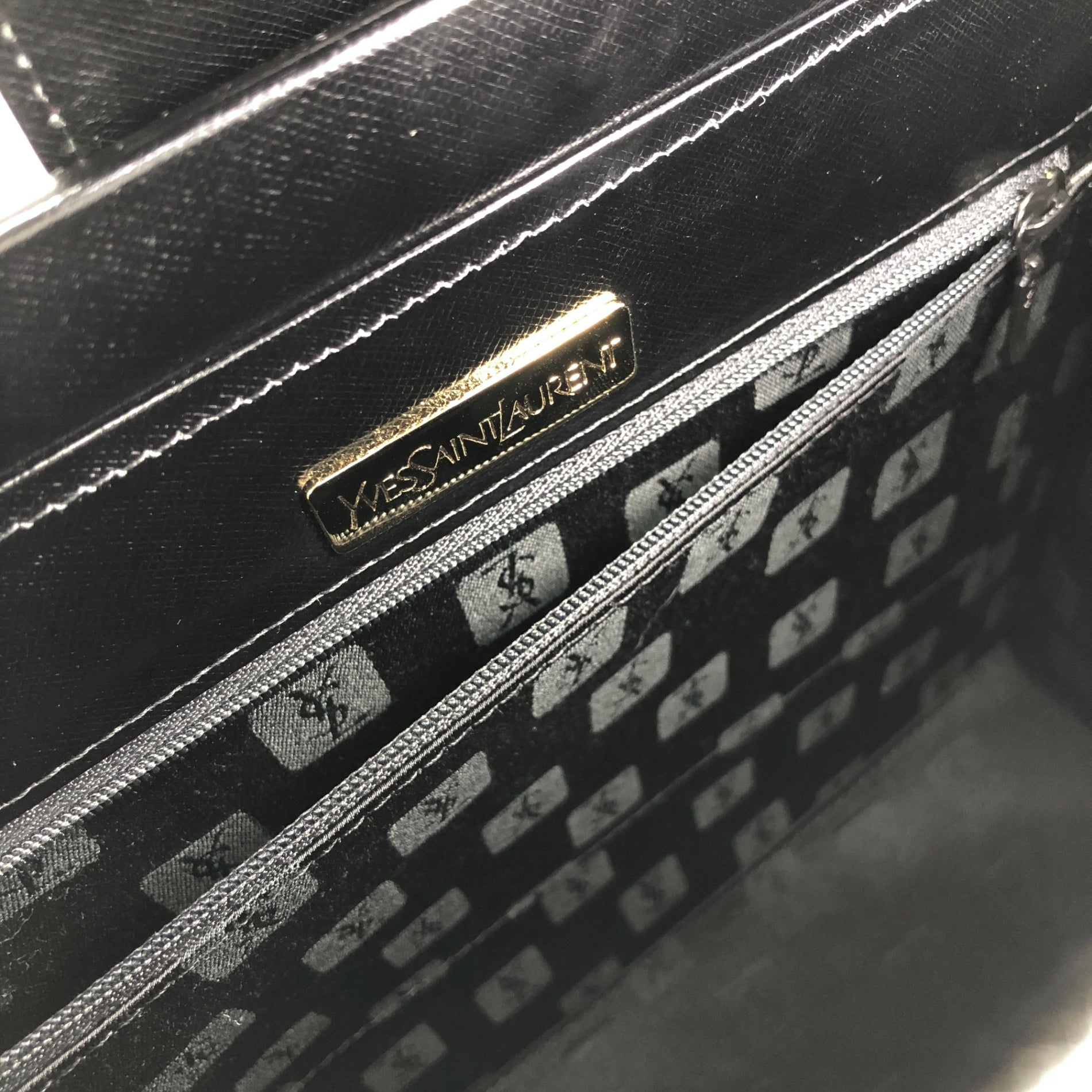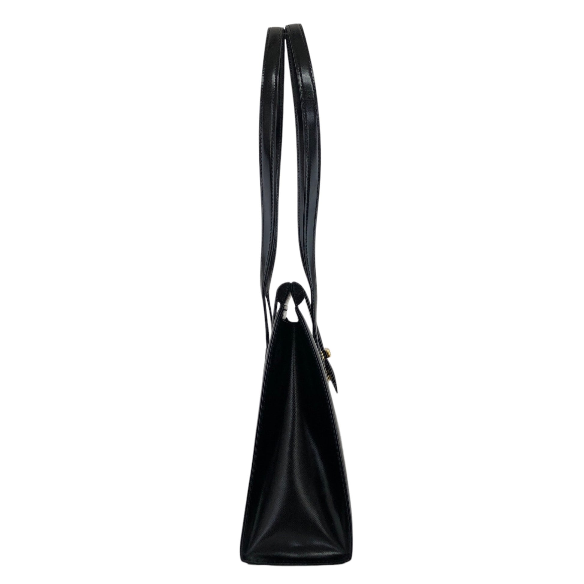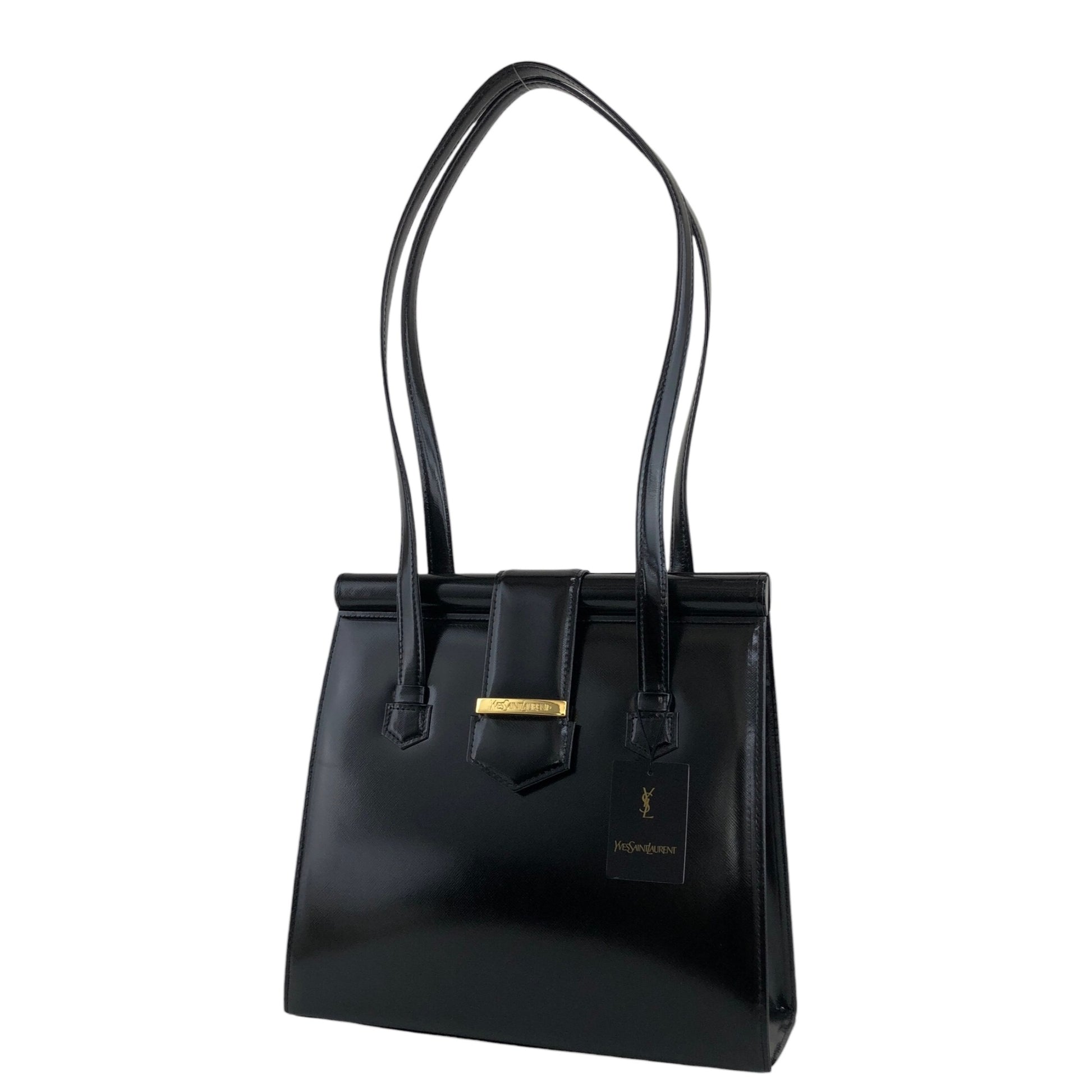 Yves Saint Laurent Logo Handbag Totebag Black Vintage vukaay