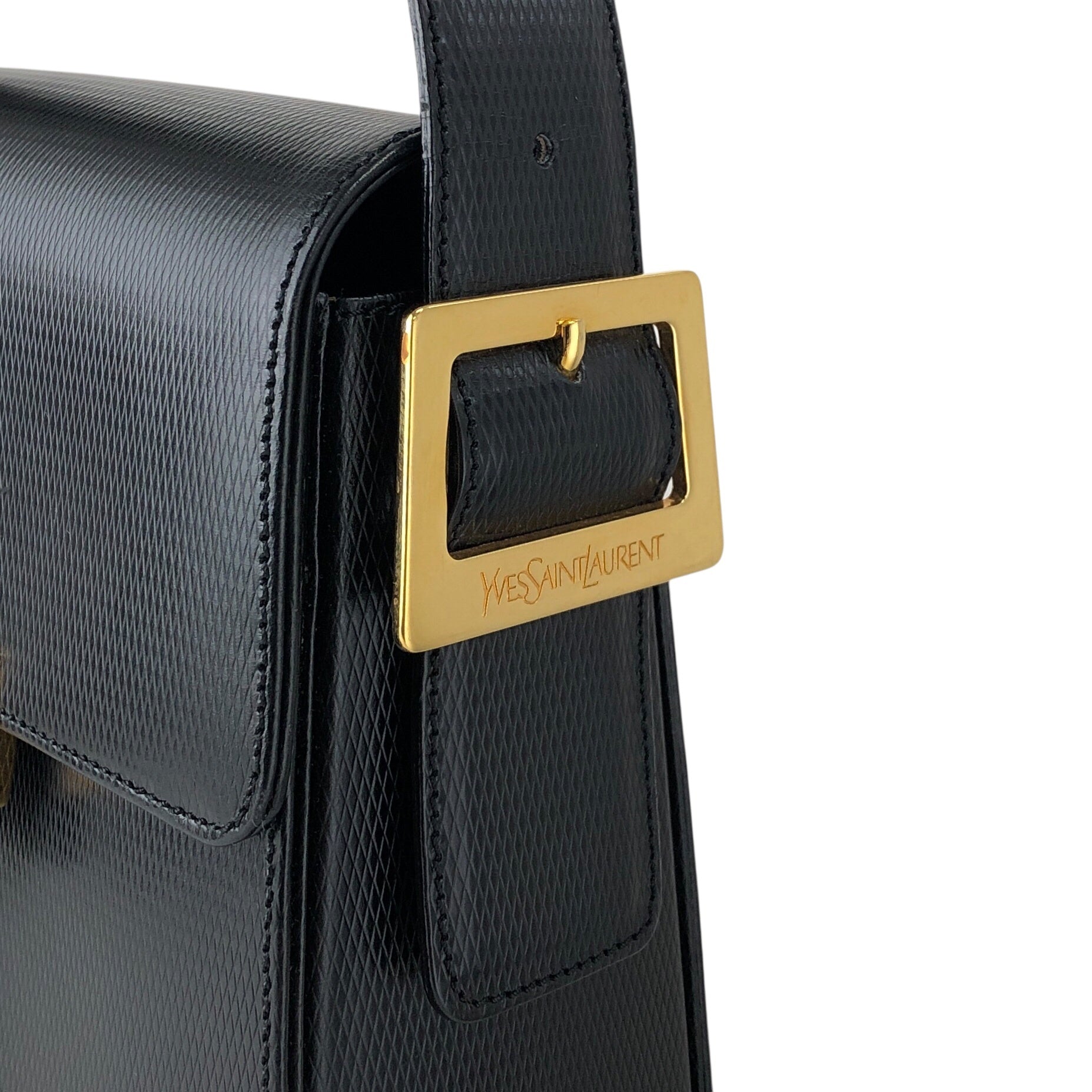 Yves Saint Laurent Logo Shoulder bag Black Vintage avbr5u