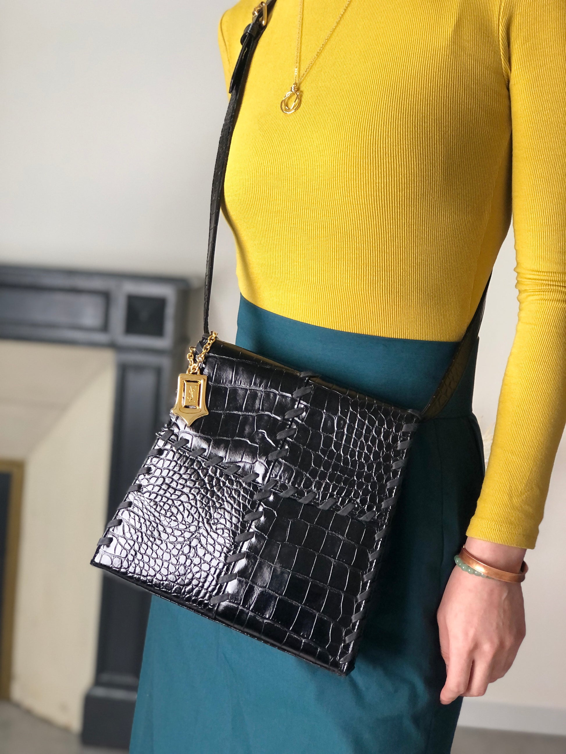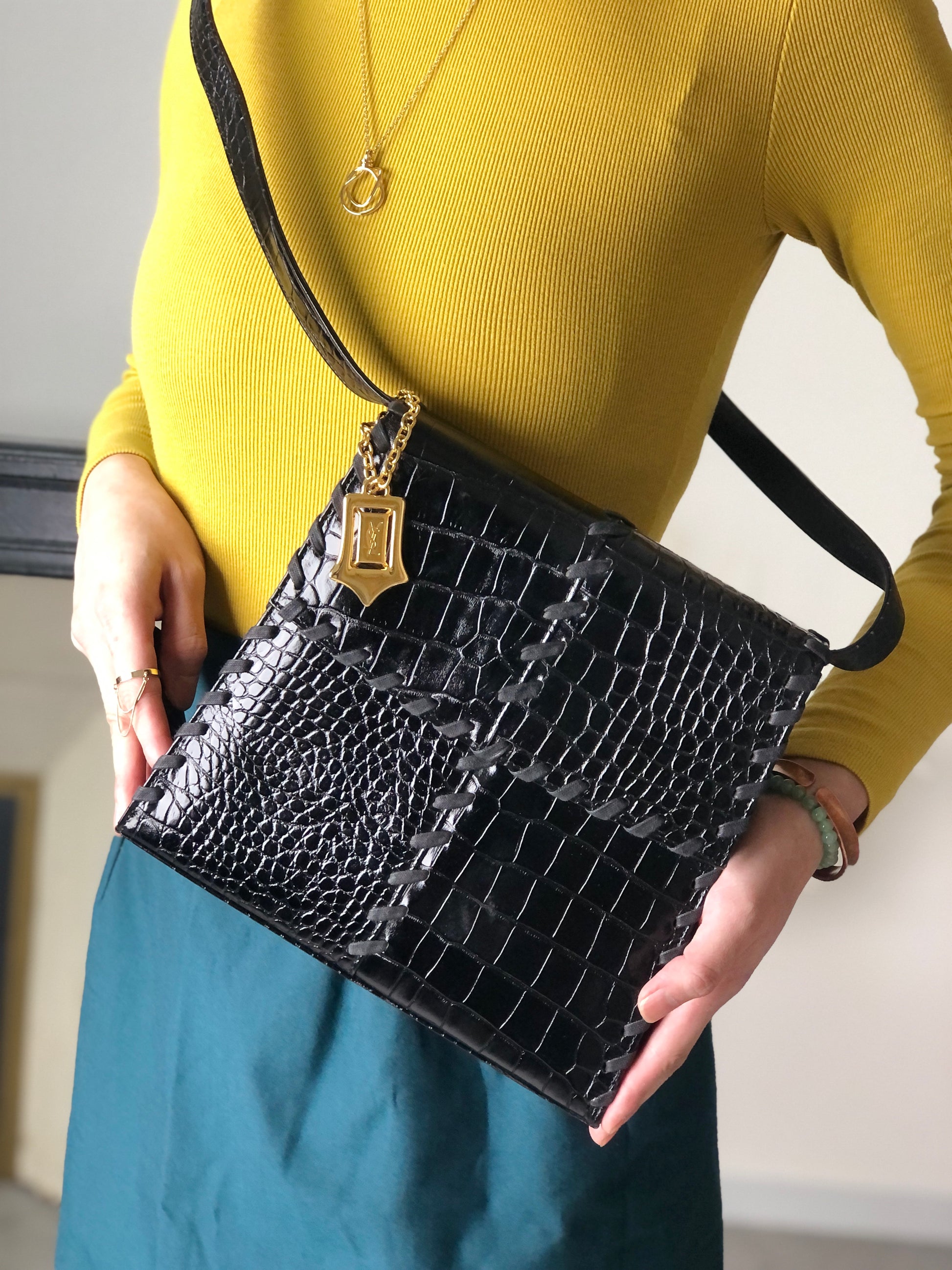 Yves Saint Laurent YSL Logo Charm Shoulder bag Black Vintage p7s3ib
