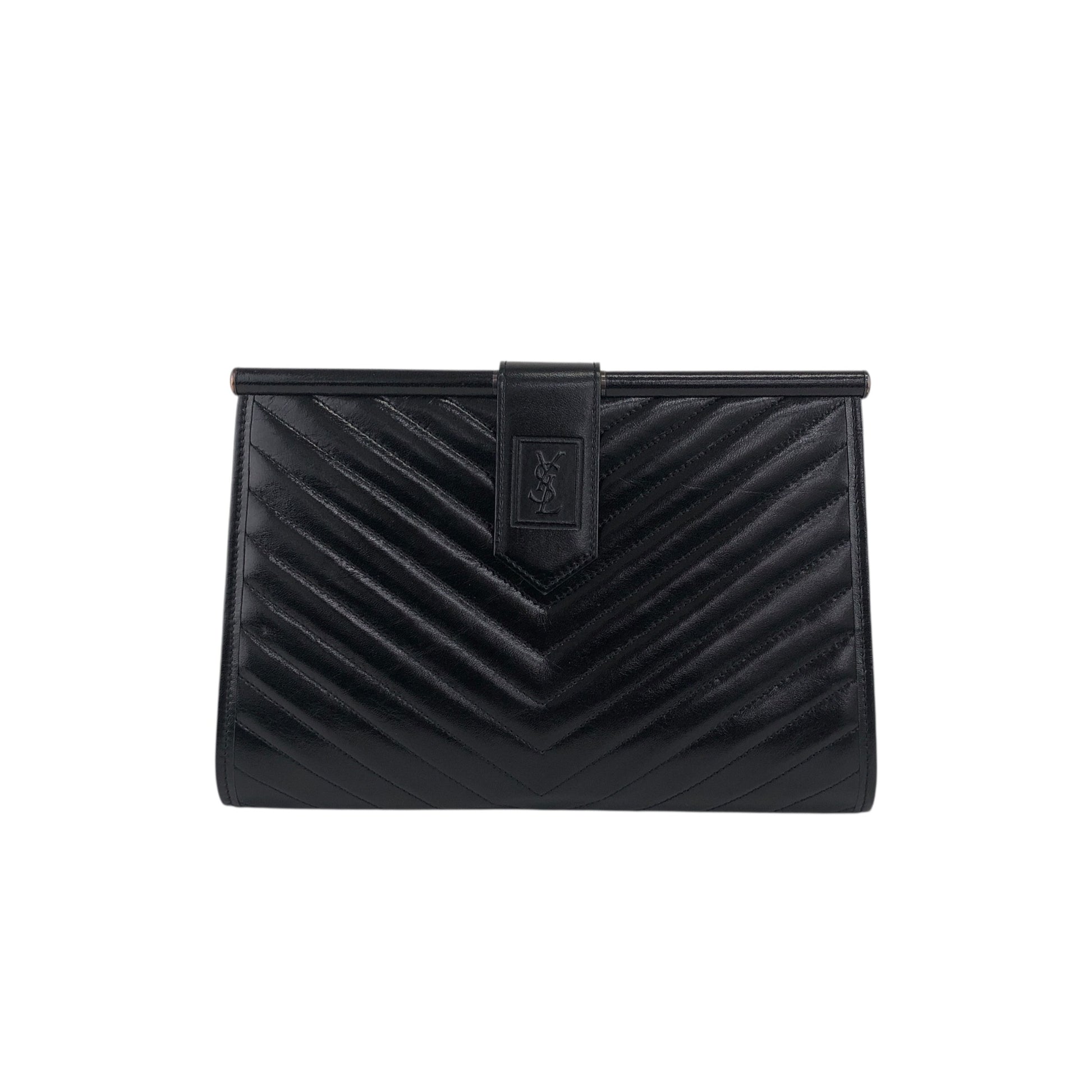 Yves Saint Laurent YSL Logo Clutch bag Black Vintage xv8d62