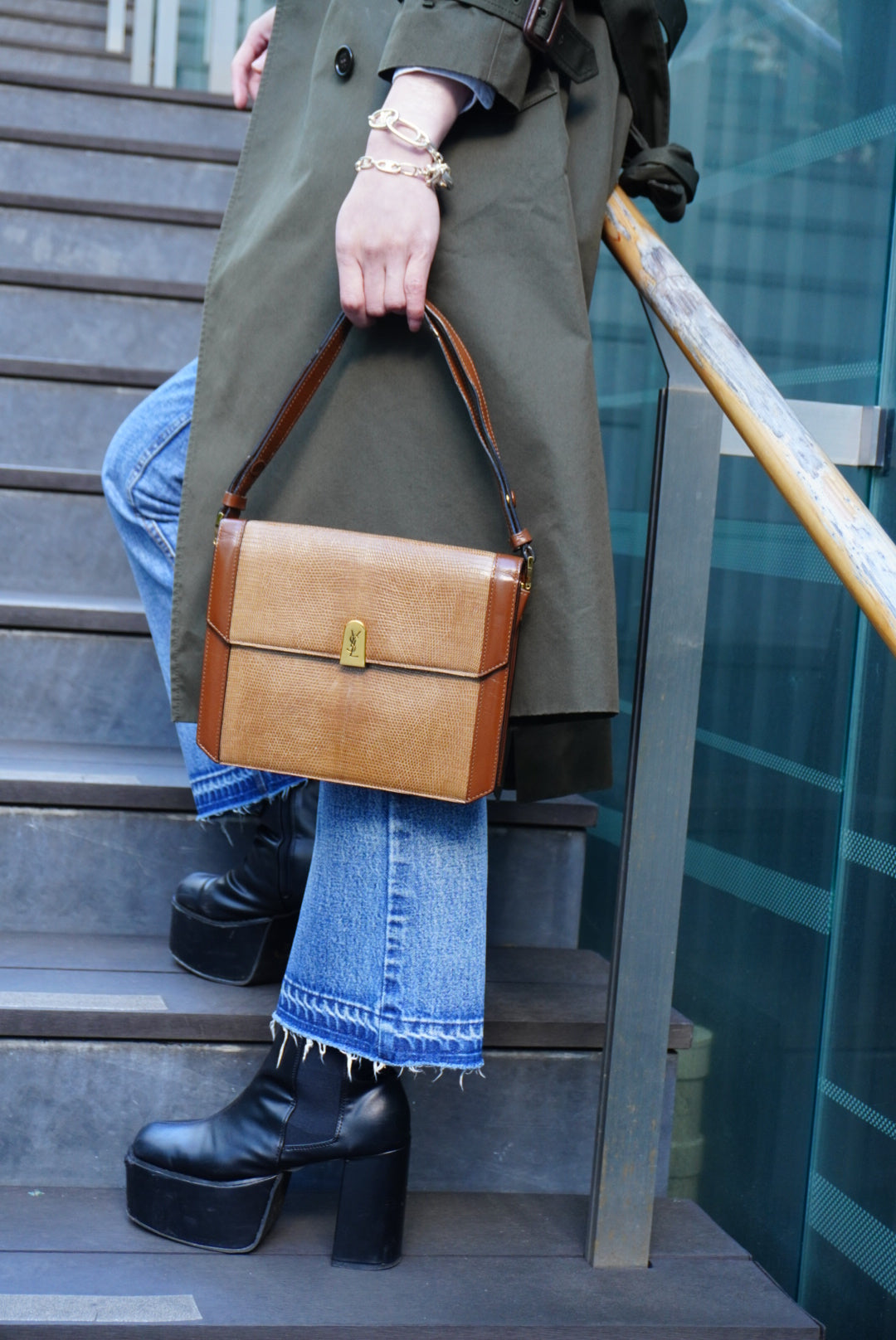 Yves Saint Laurent YSL Logo Handbag Shoulder bag Brown Vintage 2hmb86