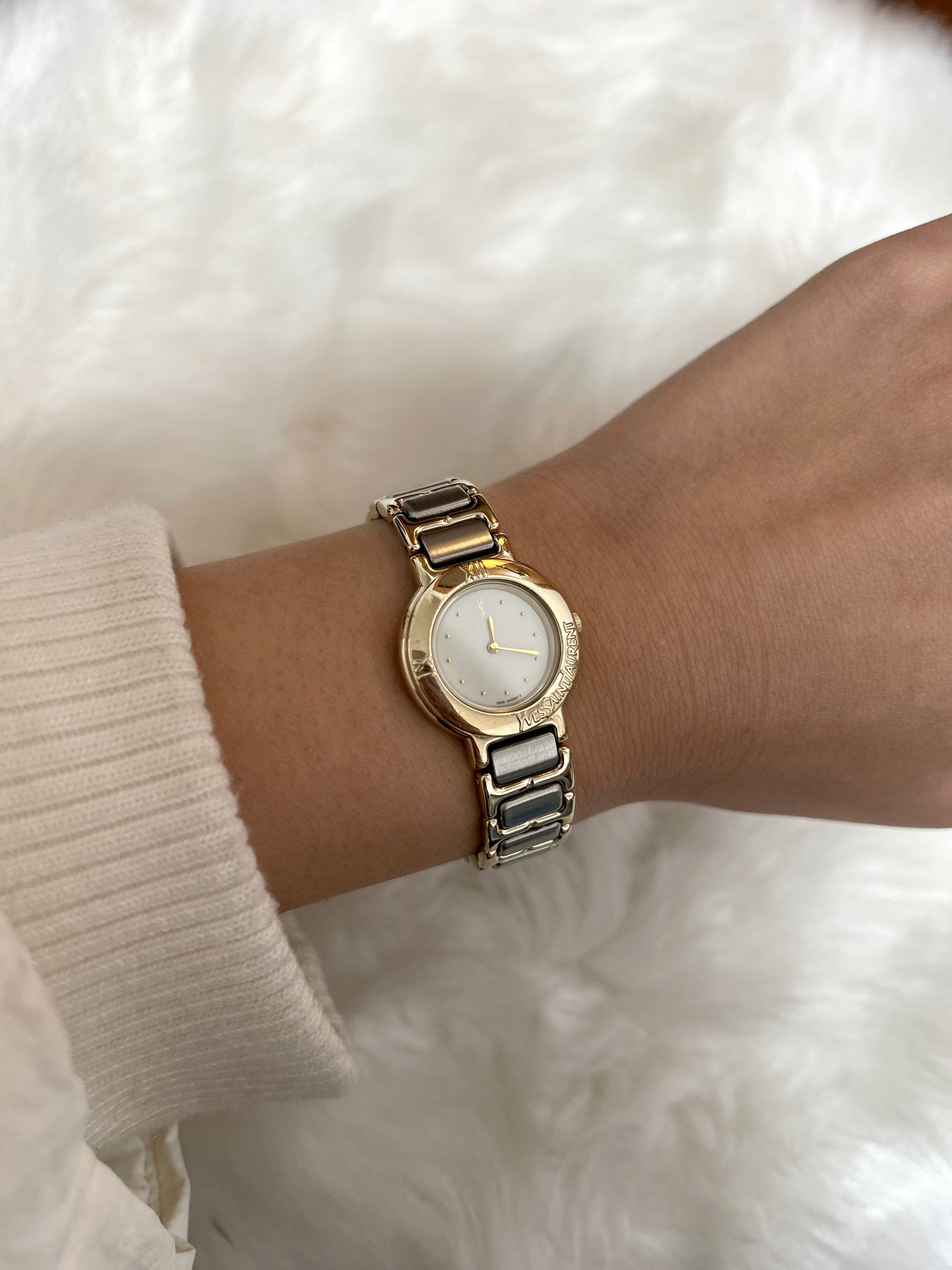 Yves Saint Laurent YSL Logo Quartz Watch Gold 2200-229789 Y Vintage kyi7bd