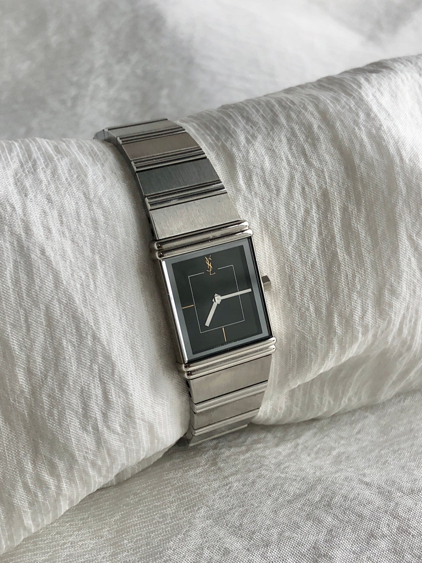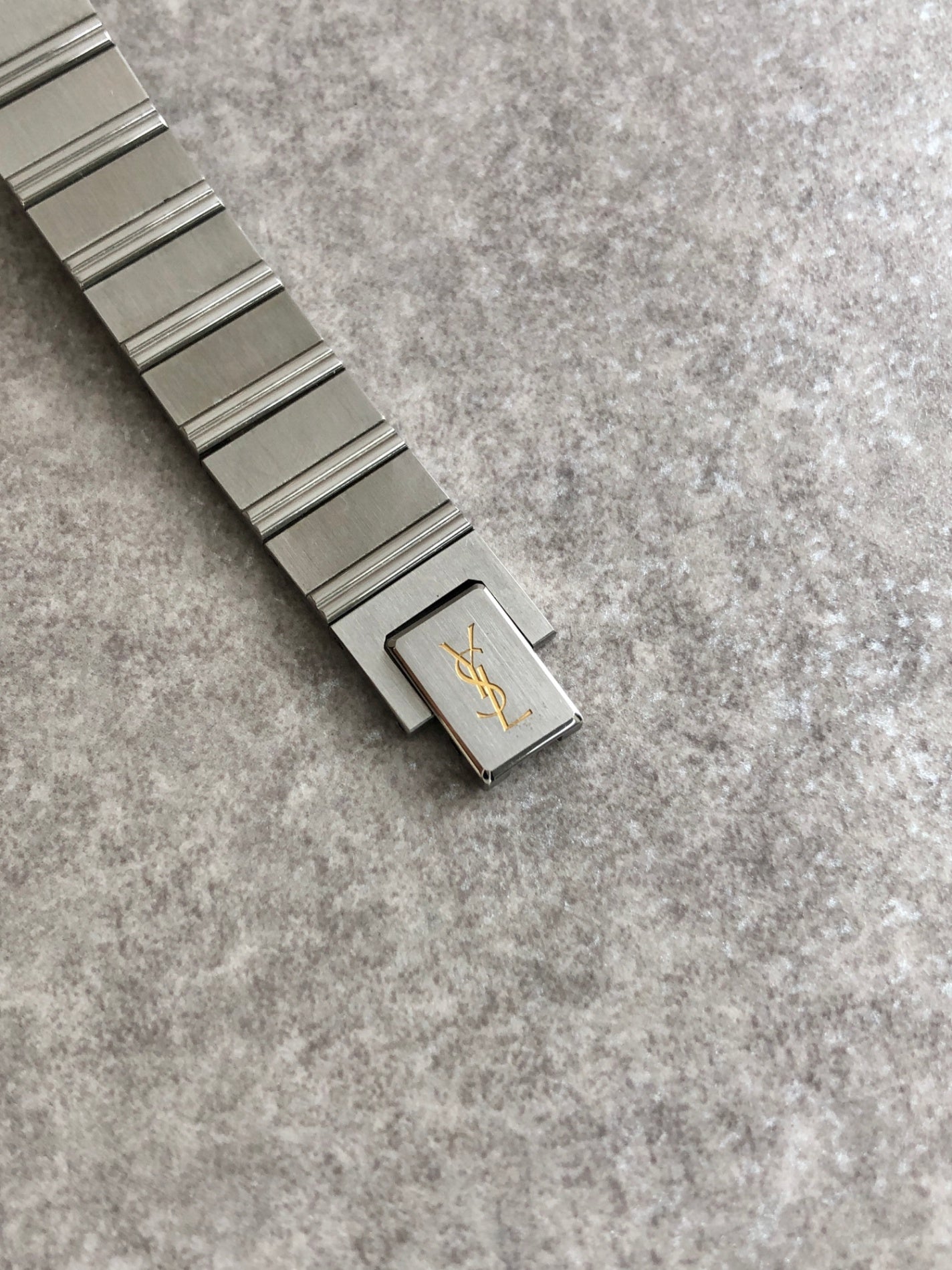 Yves Saint Laurent YSL Logo Quartz Watch Silver 2200-221362 Vintage nbbdz8