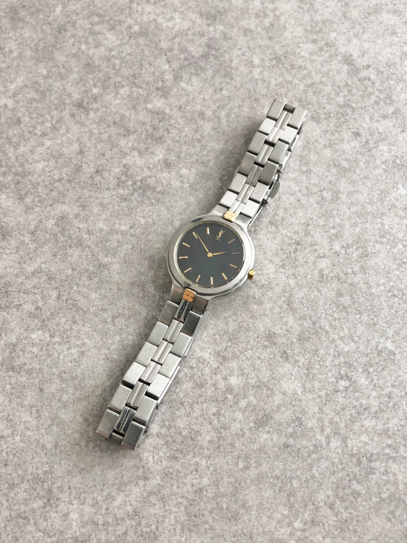 Yves Saint Laurent YSL Logo Quartz Watch Silver 5421-H13939Y Vintage epnx46