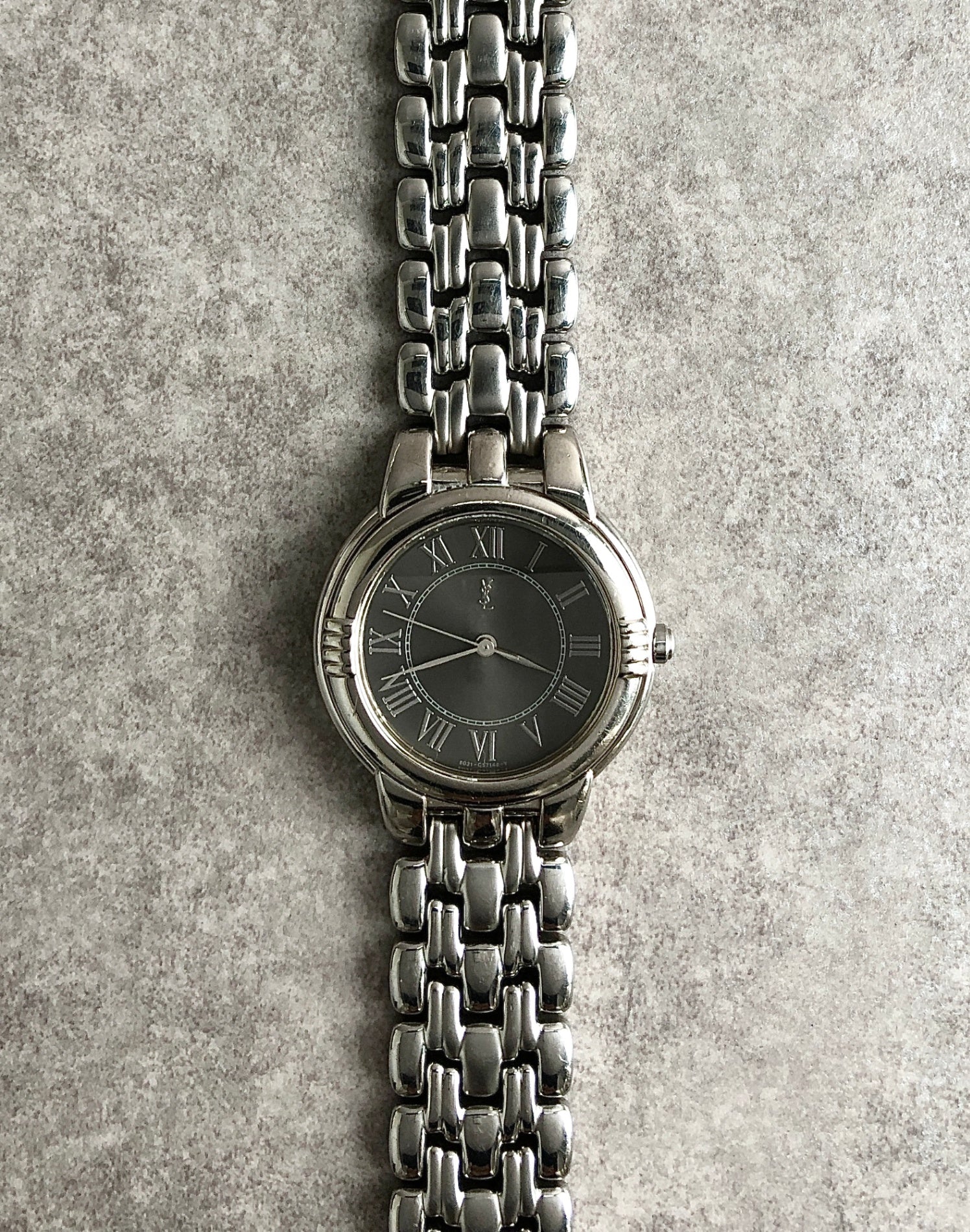 Yves Saint Laurent YSL Logo Quartz Watch Silver 6031-G11680 Vintage nkprwd