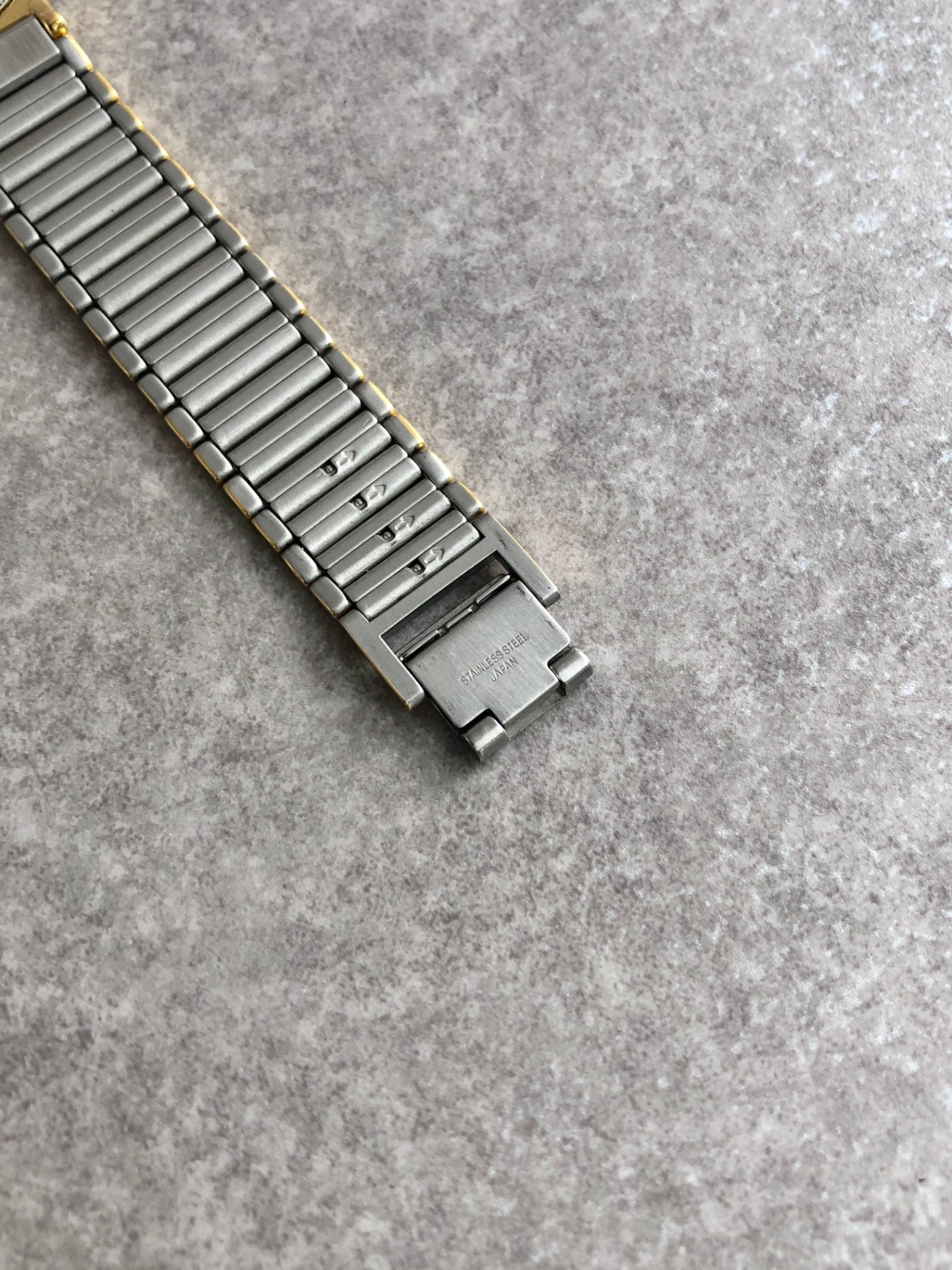Yves Saint Laurent YSL Logo Quartz Watch Silver×Gold 4620-E62267Y Vintage iymii4