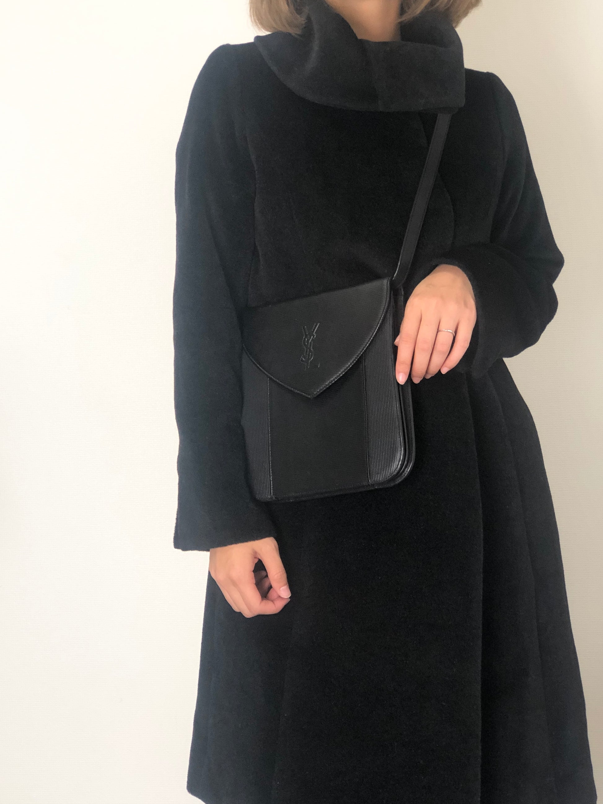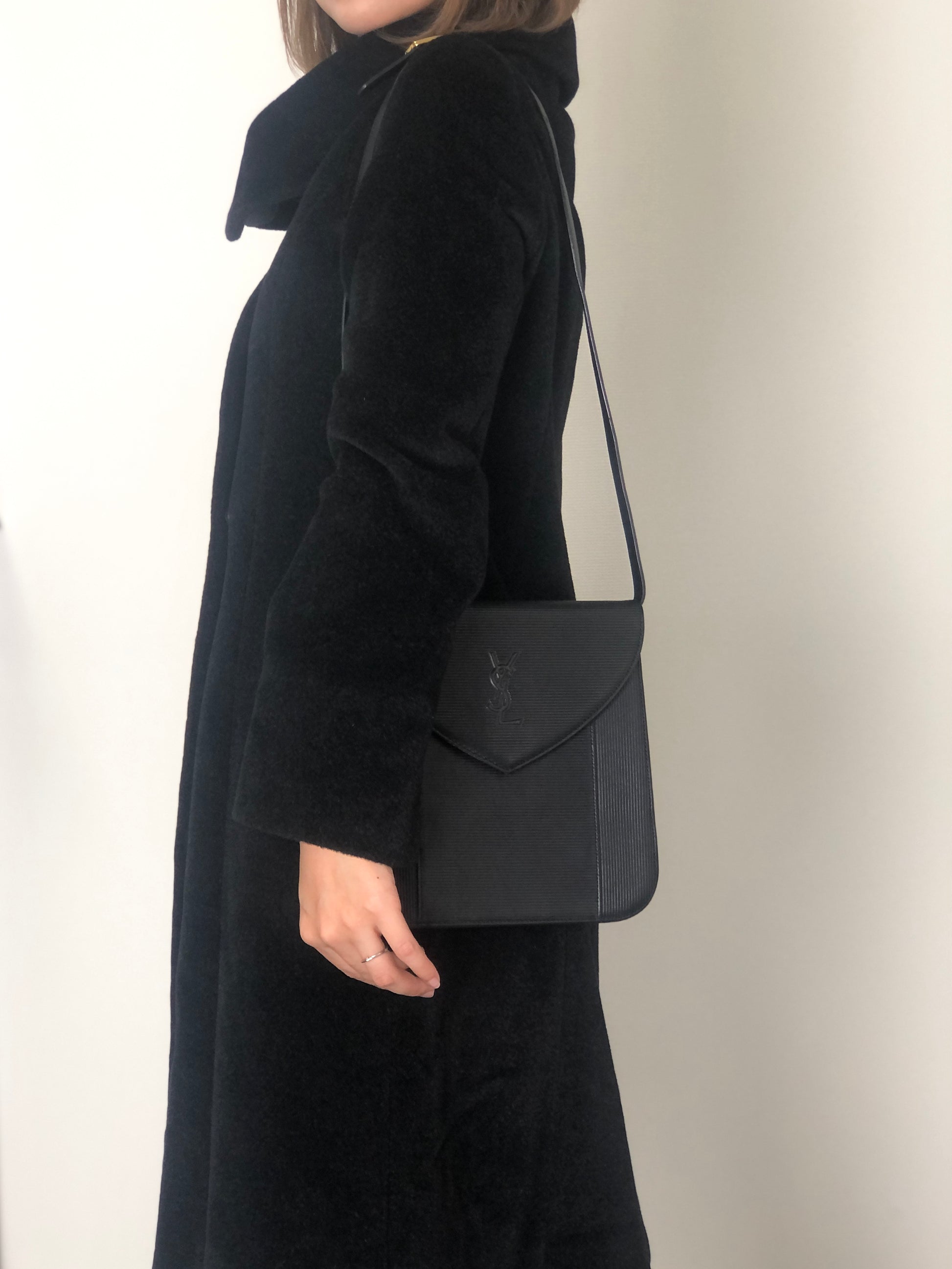 Yves Saint Laurent YSL Logo Shoulder bag Black Vintage 4x4vtu