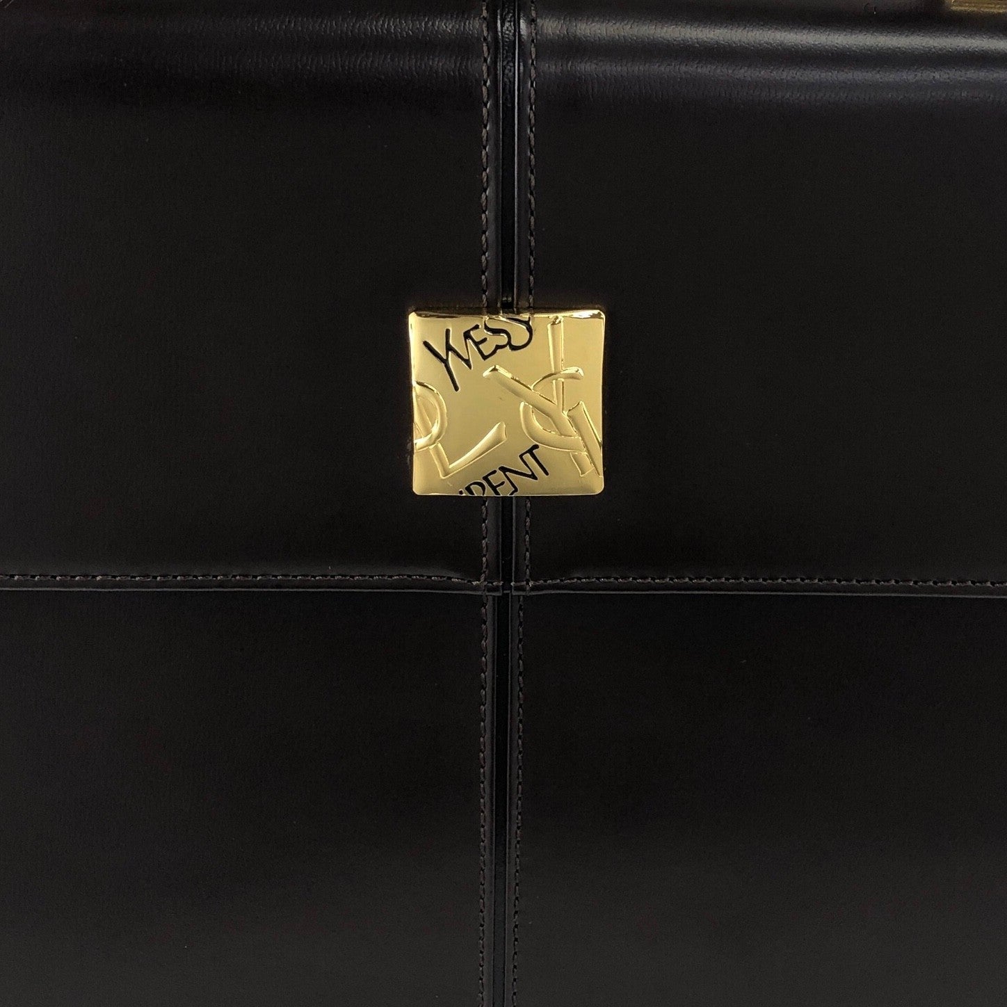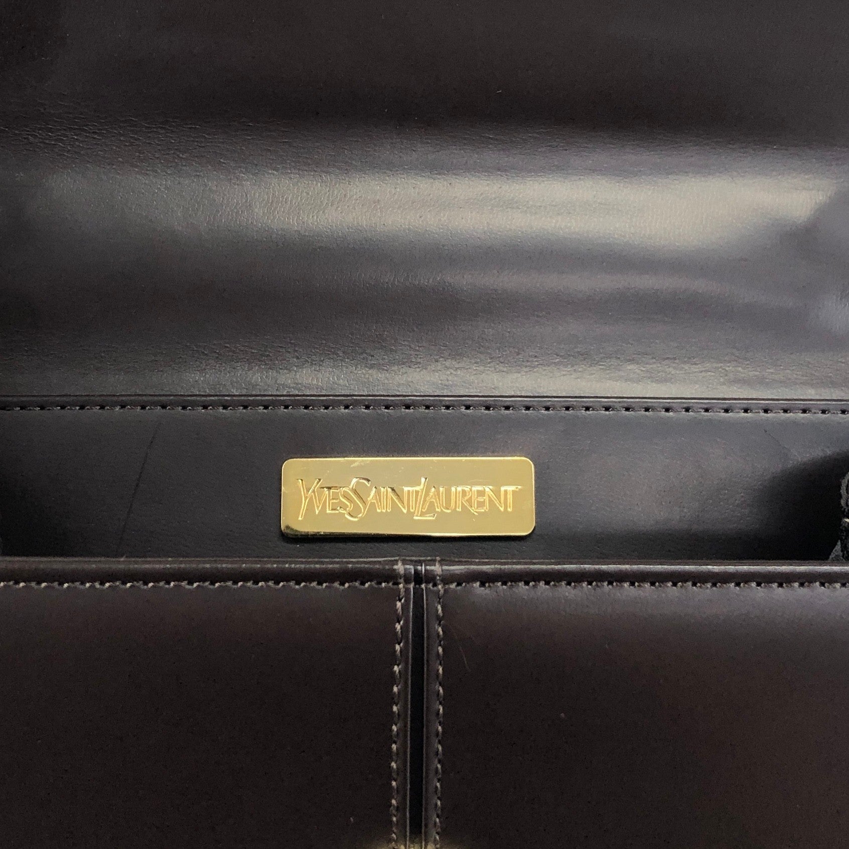 Yves Saint Laurent YSL Logo Top Handle Handbag Brown Vintage 3bhgkg
