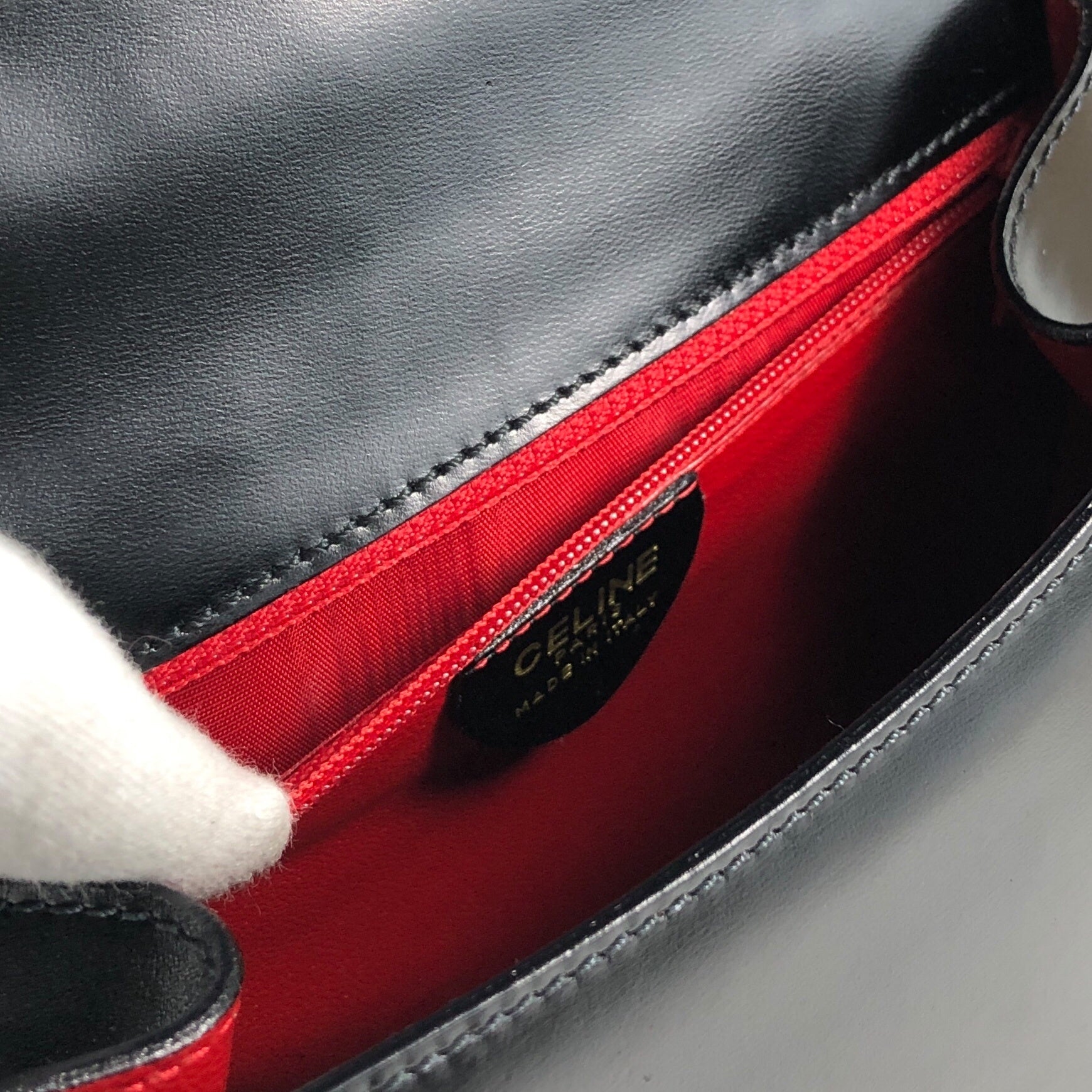 CELINE Front Buckle Two-way Handbag Shoulder bag Black Vintage htie7e