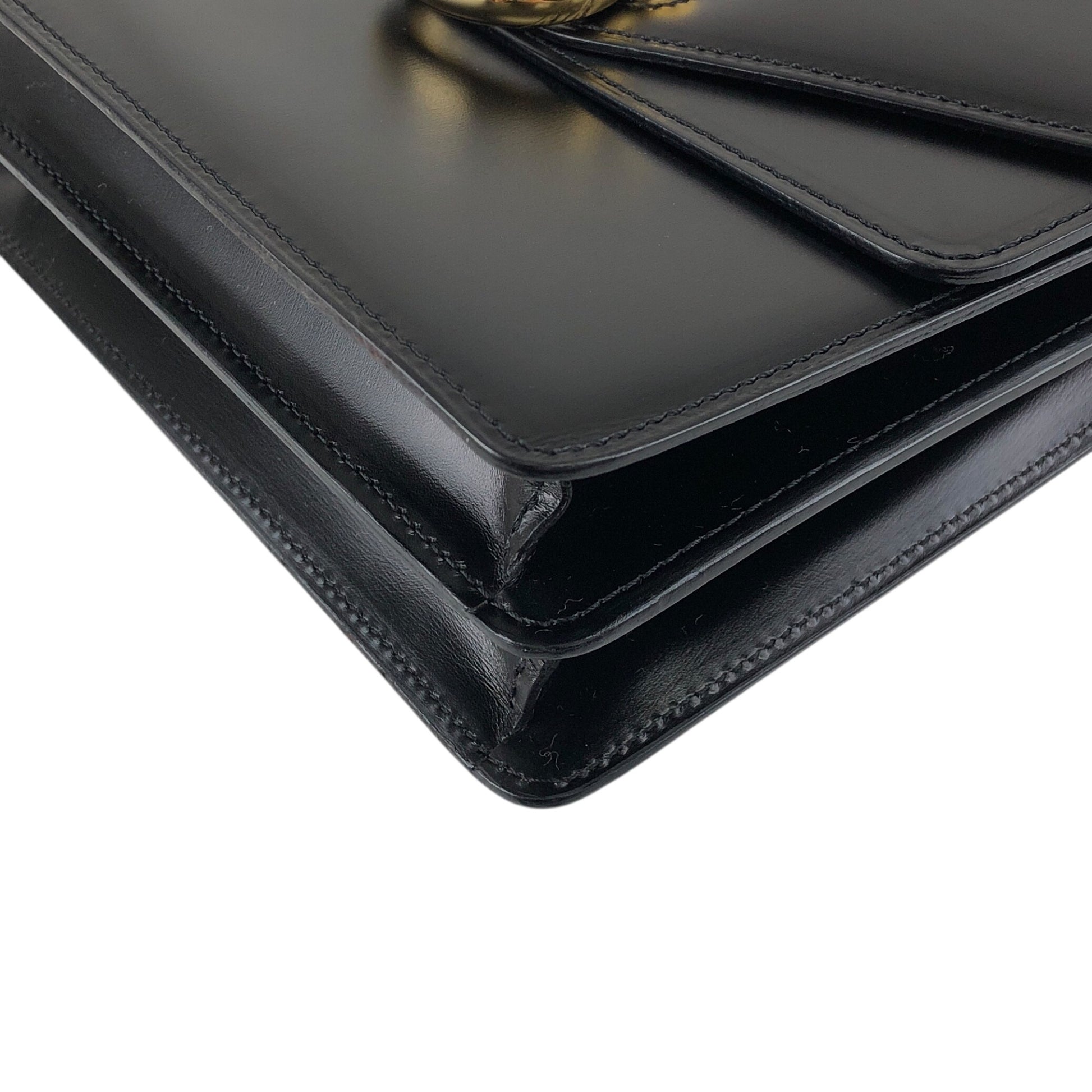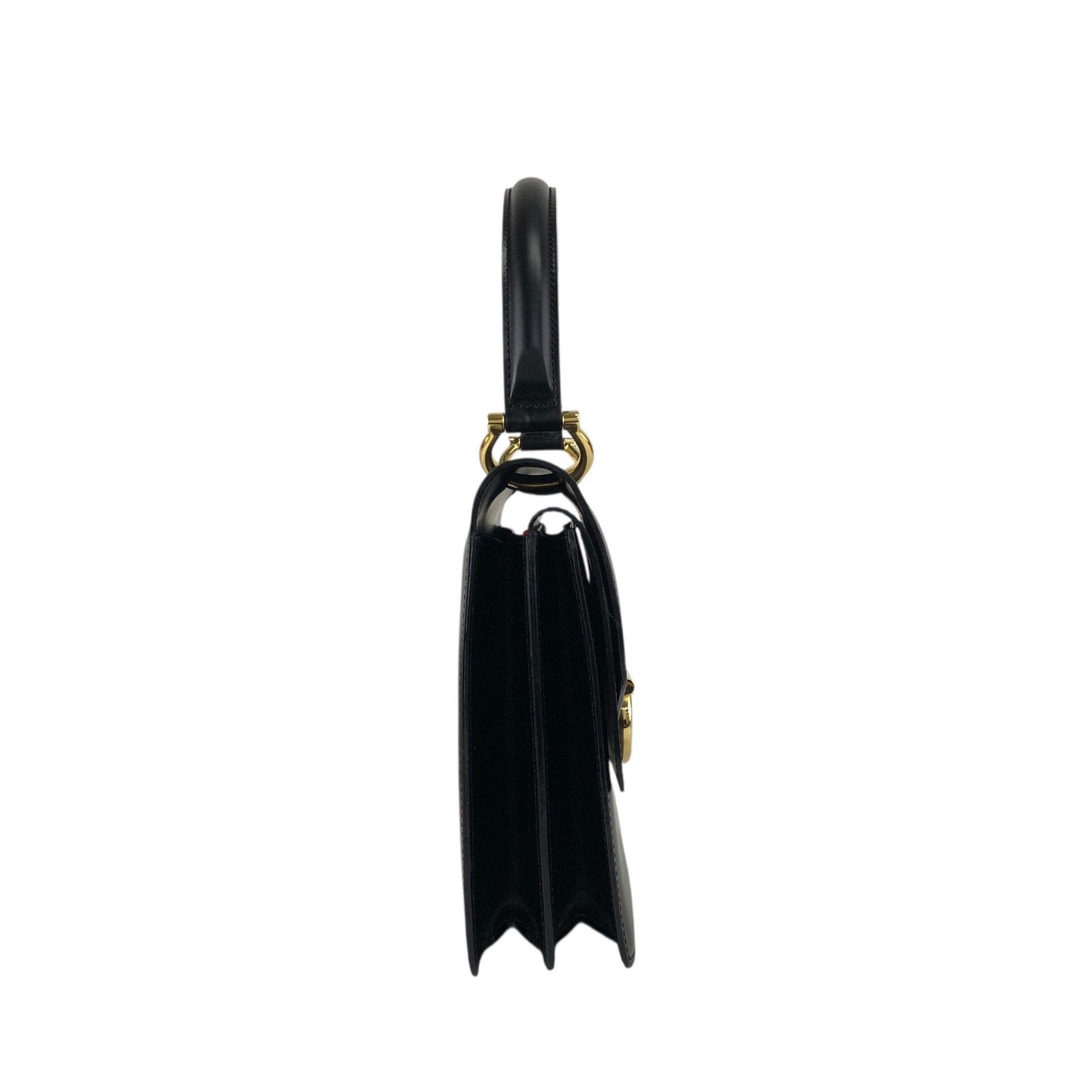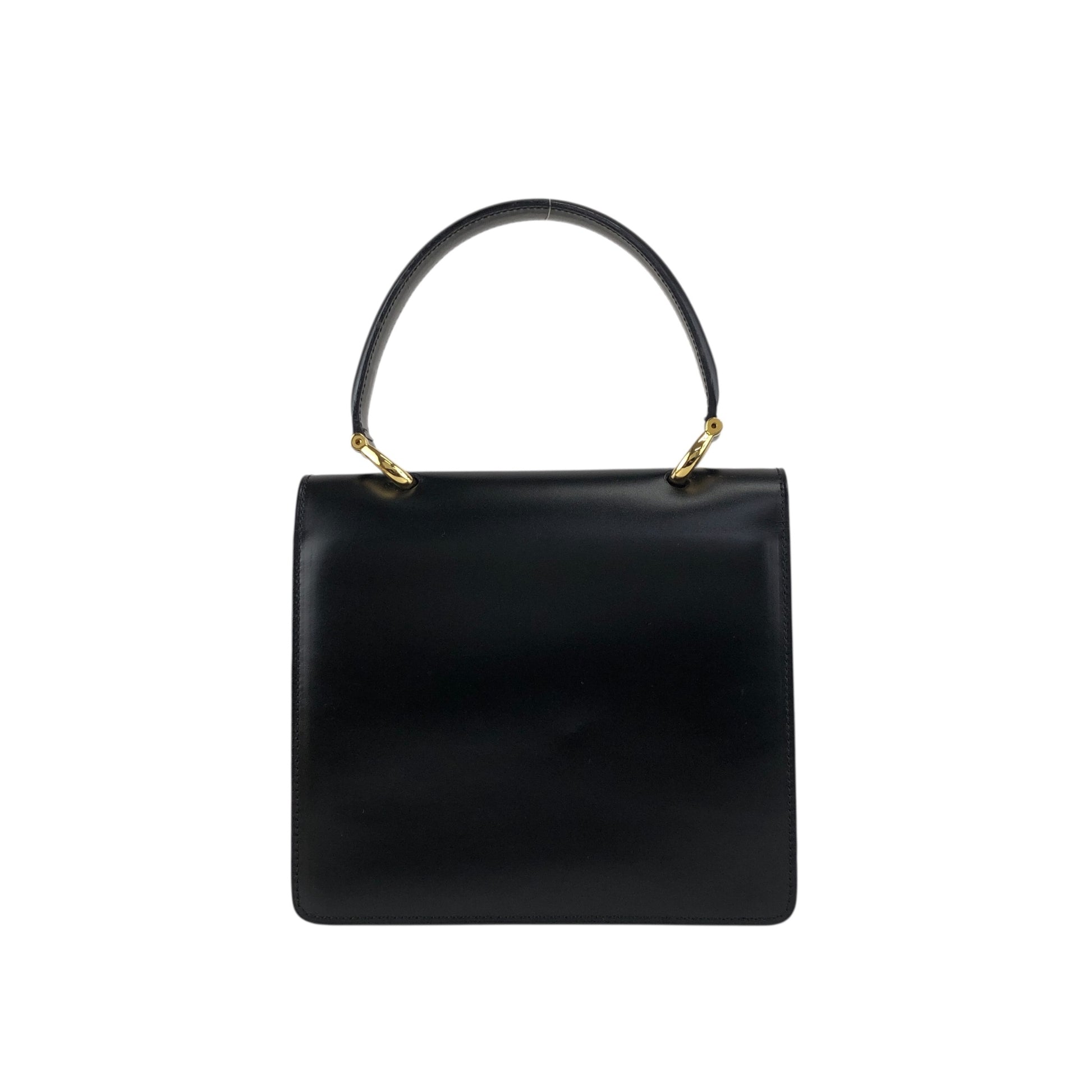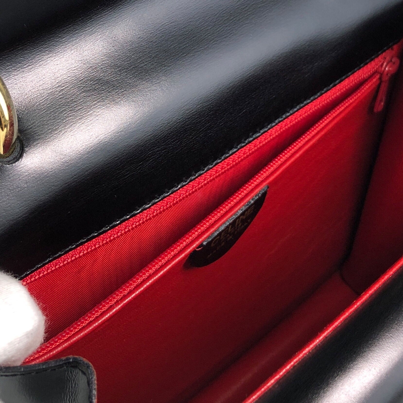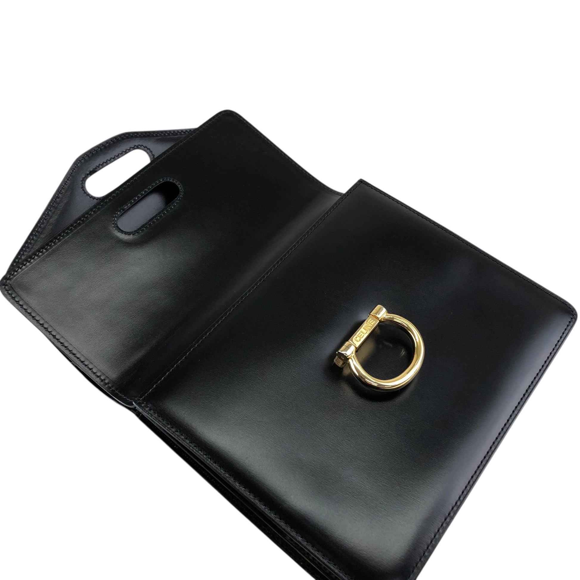 CELINE Horse Bit Double Flap Handbag Black Vintage nrxerm