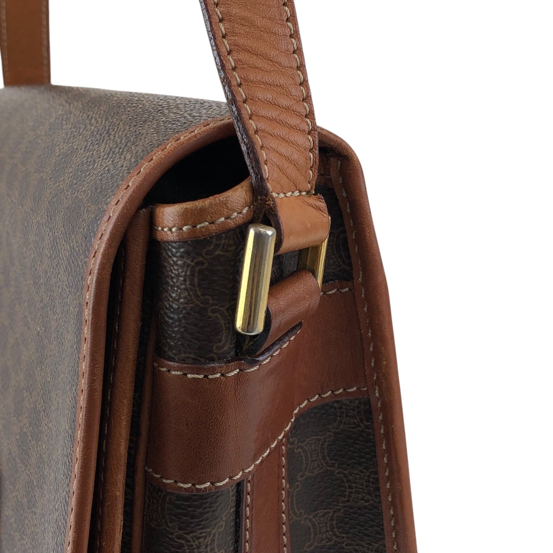 CELINE Macadam Blason Flap Shoulder bag Brown Vintage kv7fz3