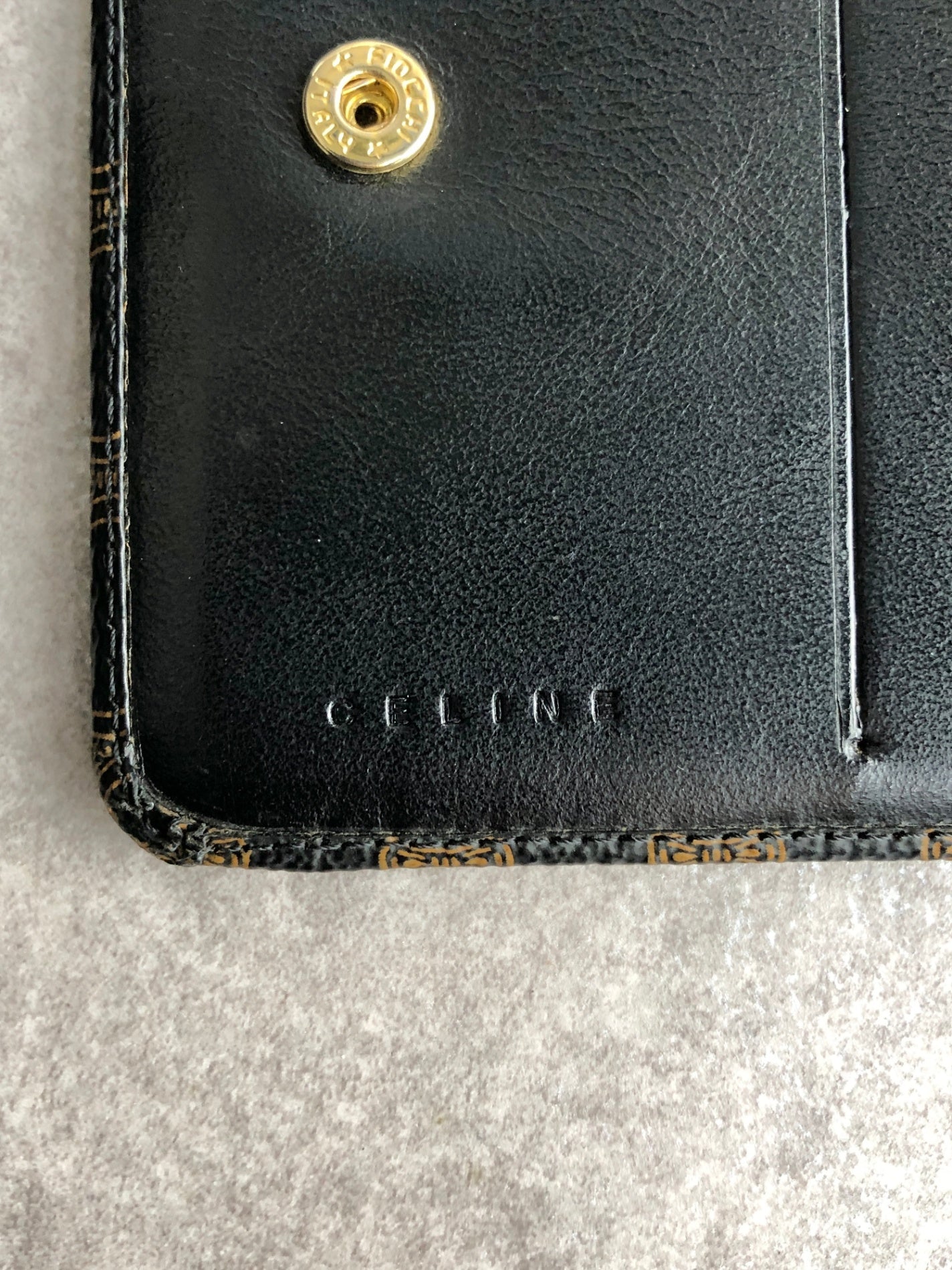 CELINE Macadam Logo Folded Wallet Black Vintage a4wnam