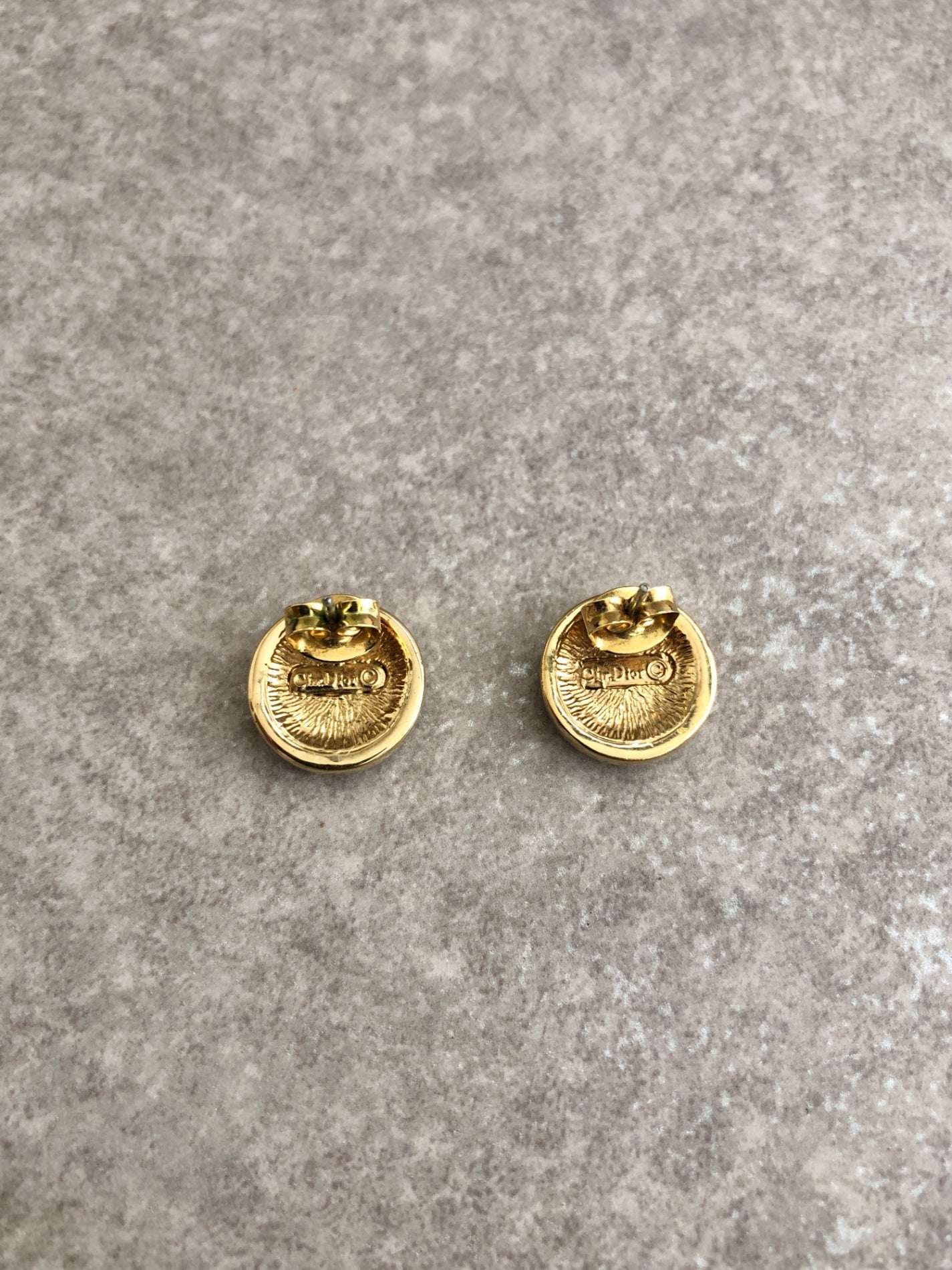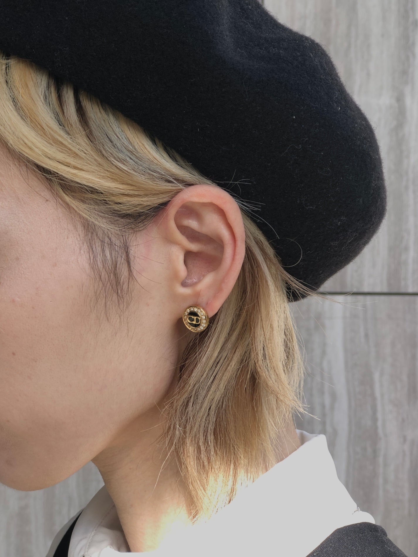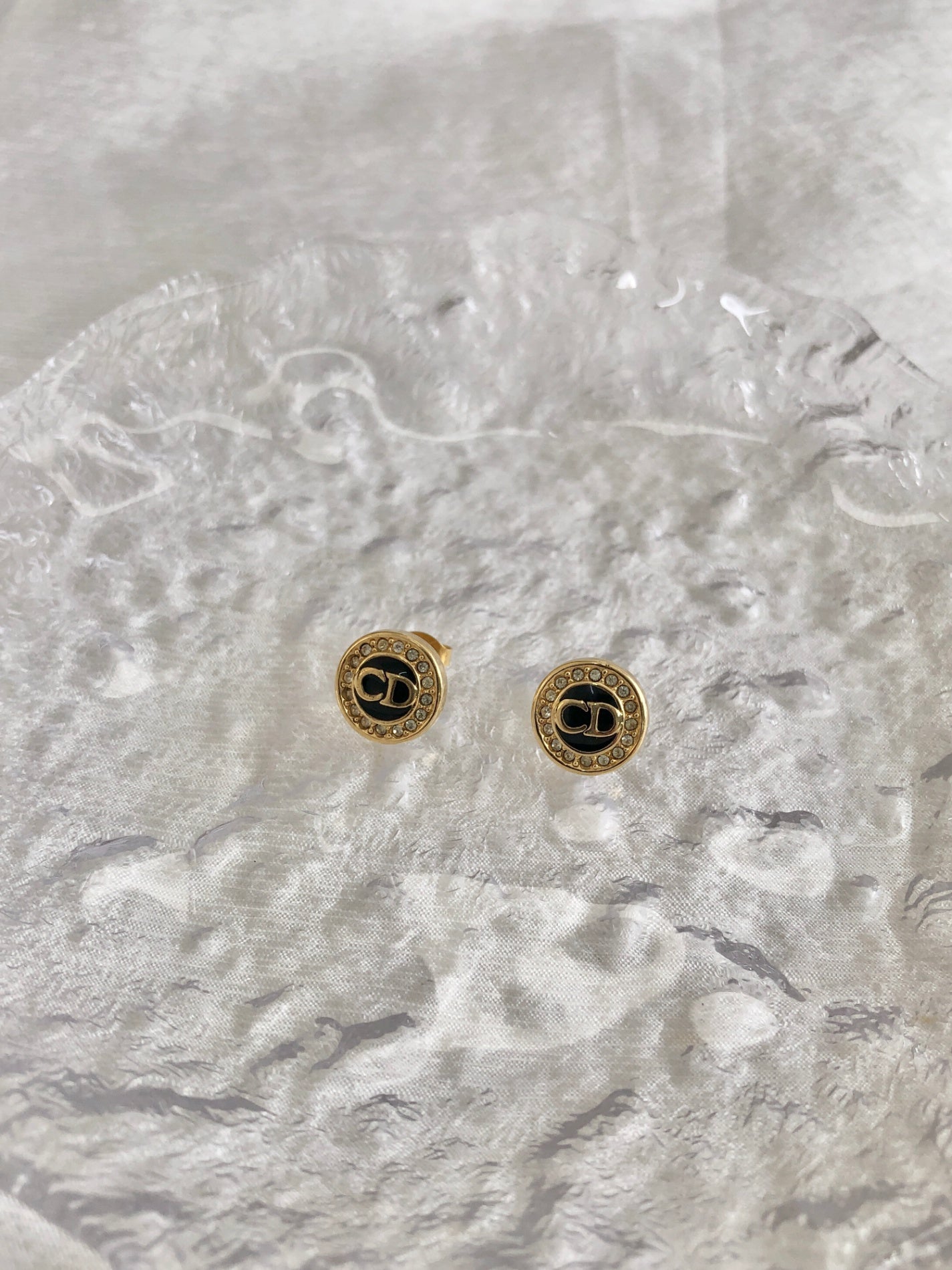 Christian Dior CD Logo Rhinestone Pierced Black×Gold Vintage ayjypj