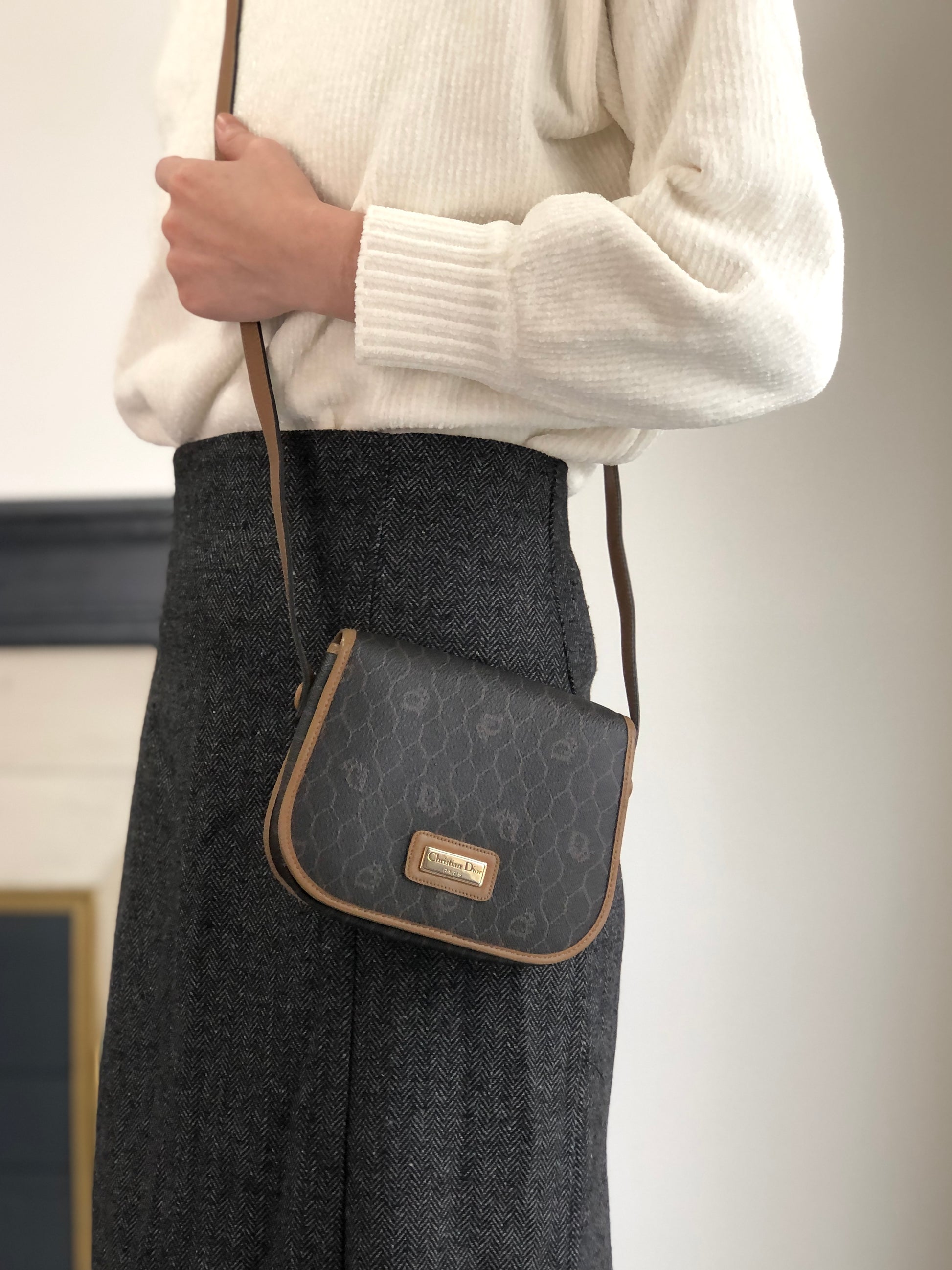 Christian Dior Honeycomb Pattern Small Shoulder bag Black Vintage 6h24uc
