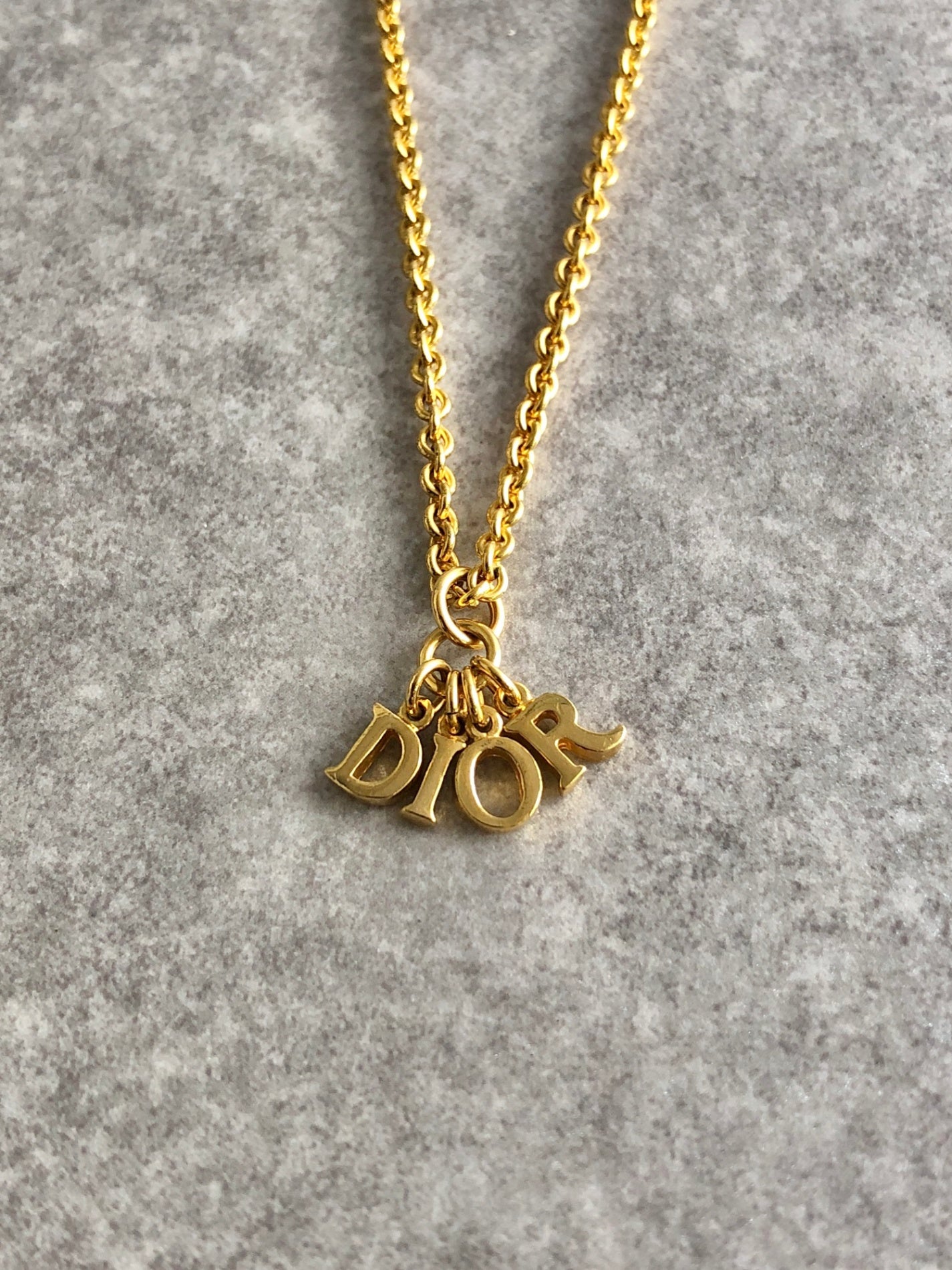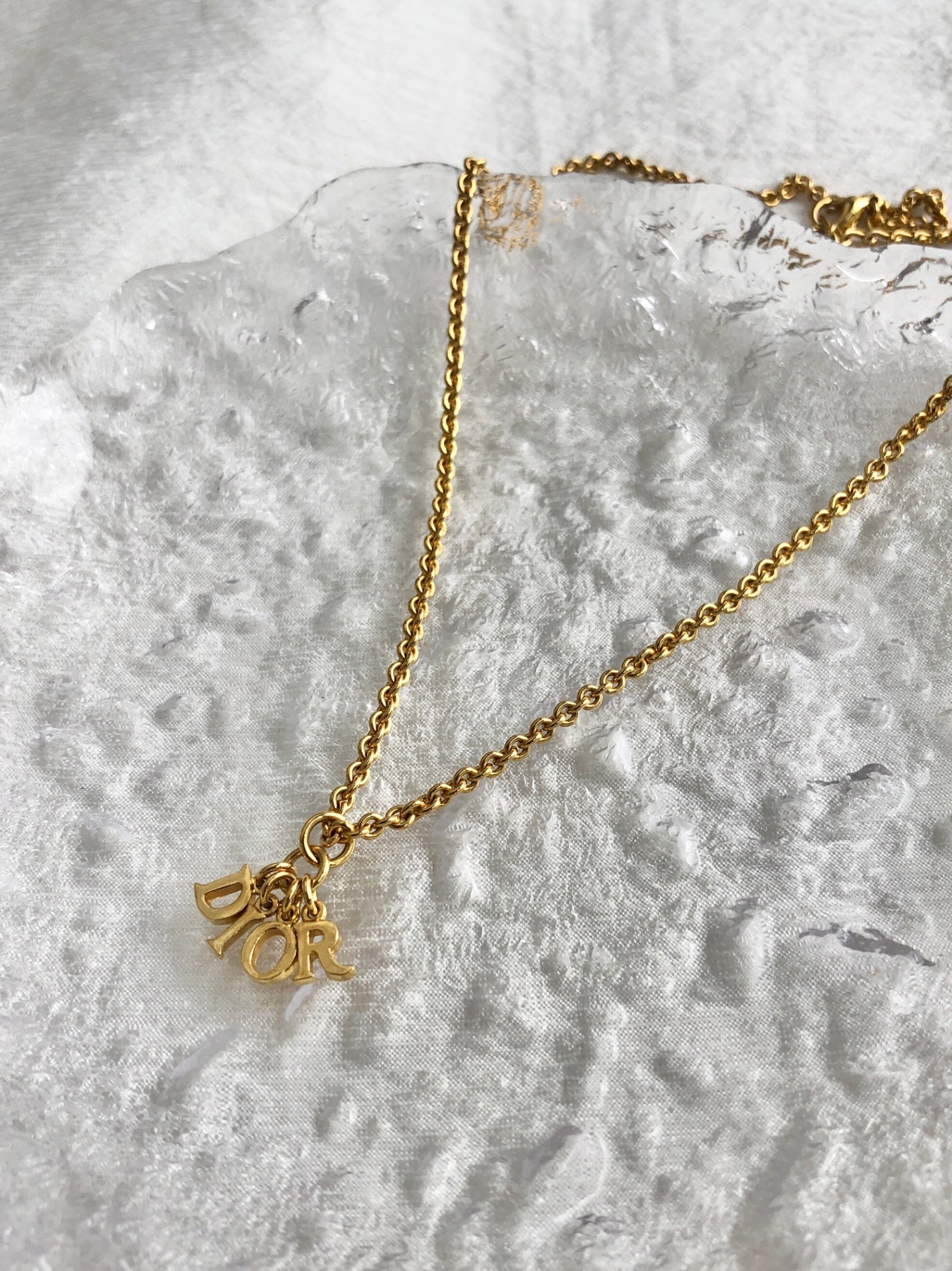 Christian Dior Logo Motif Necklace Gold Vintage jye8pu