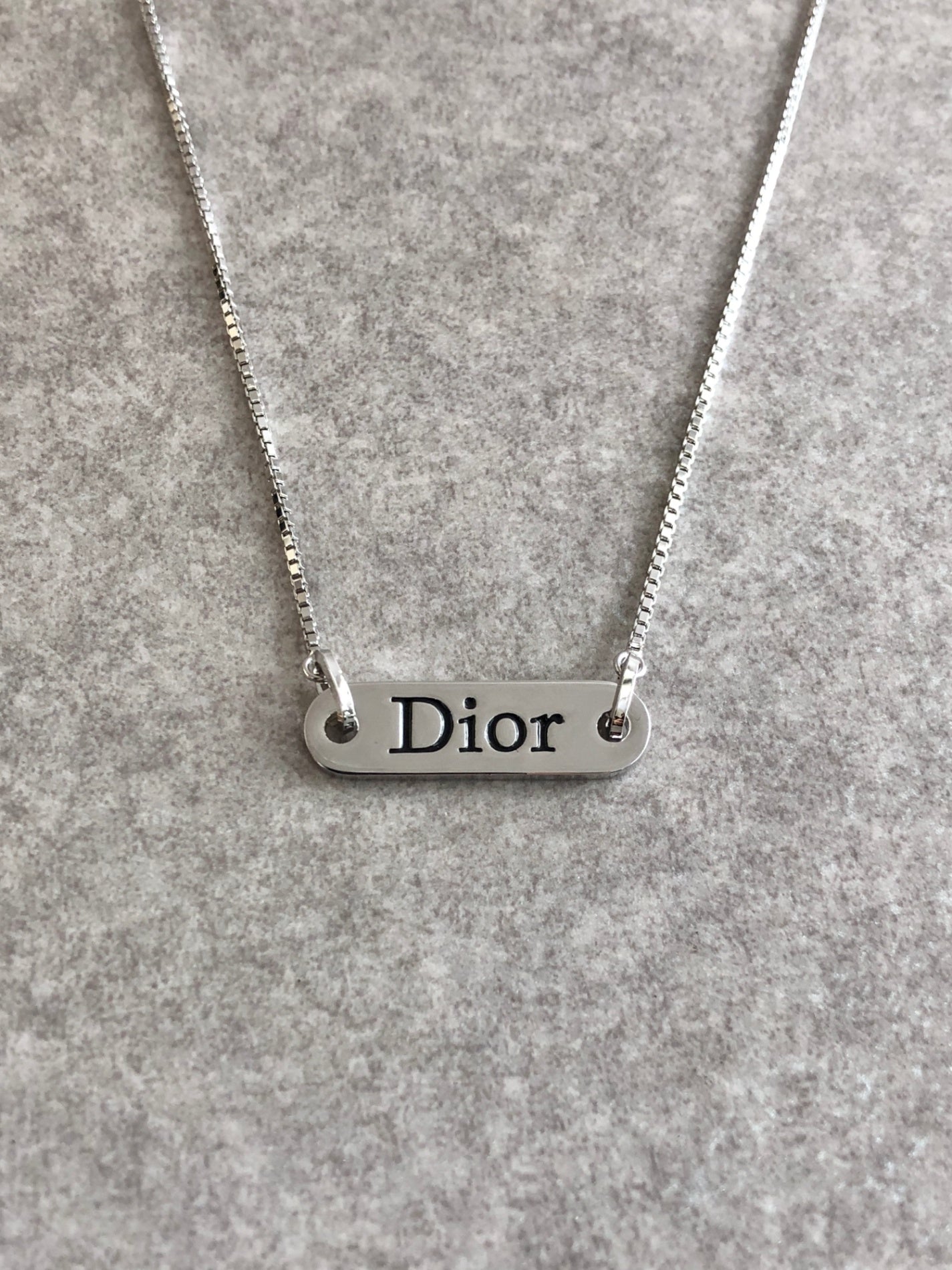 Christian Dior Logo Motif Necklace Silver Vintage pidv5i