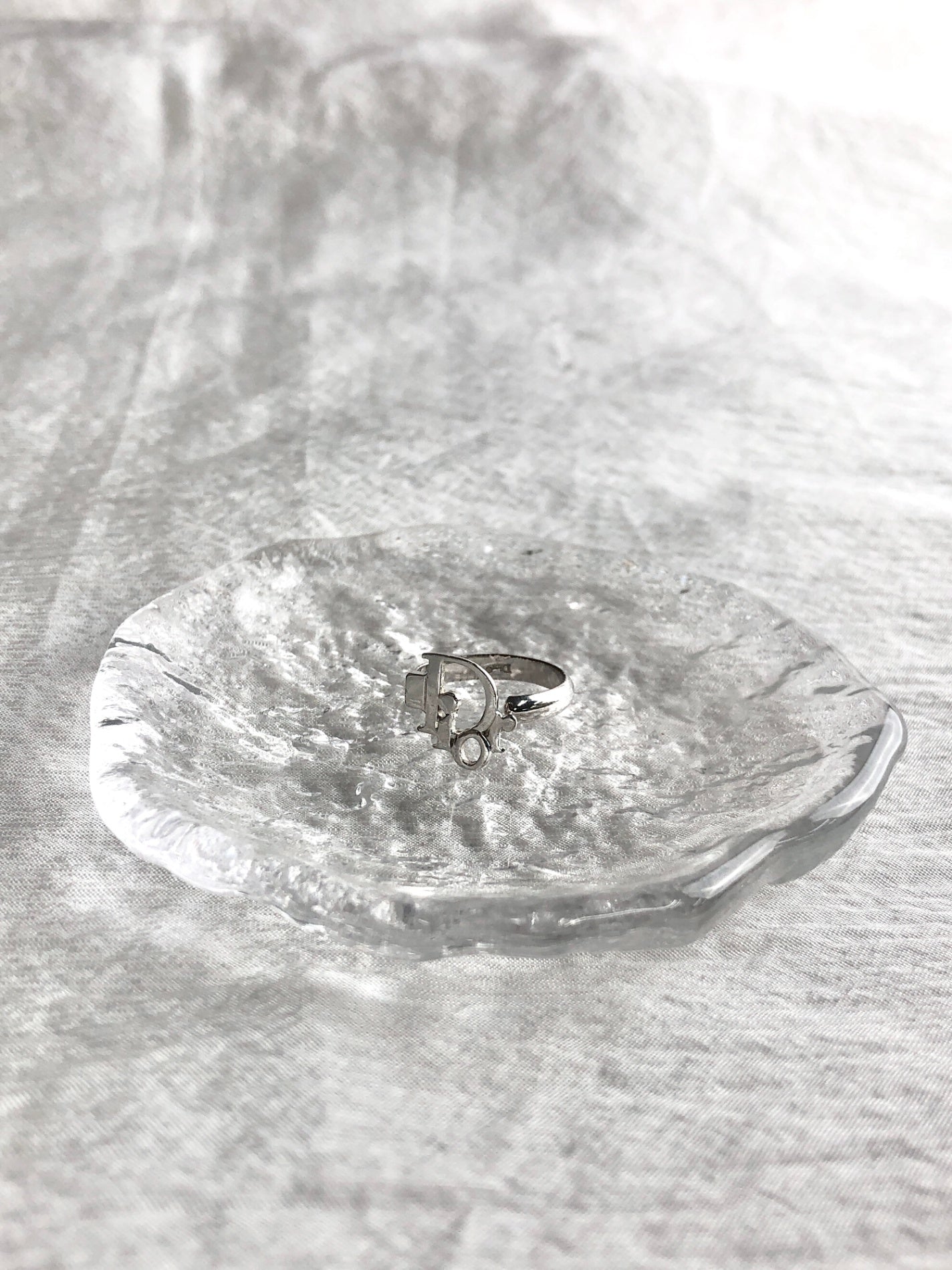 Christian Dior Logo Motif Ring Silver Vintage s42k5y
