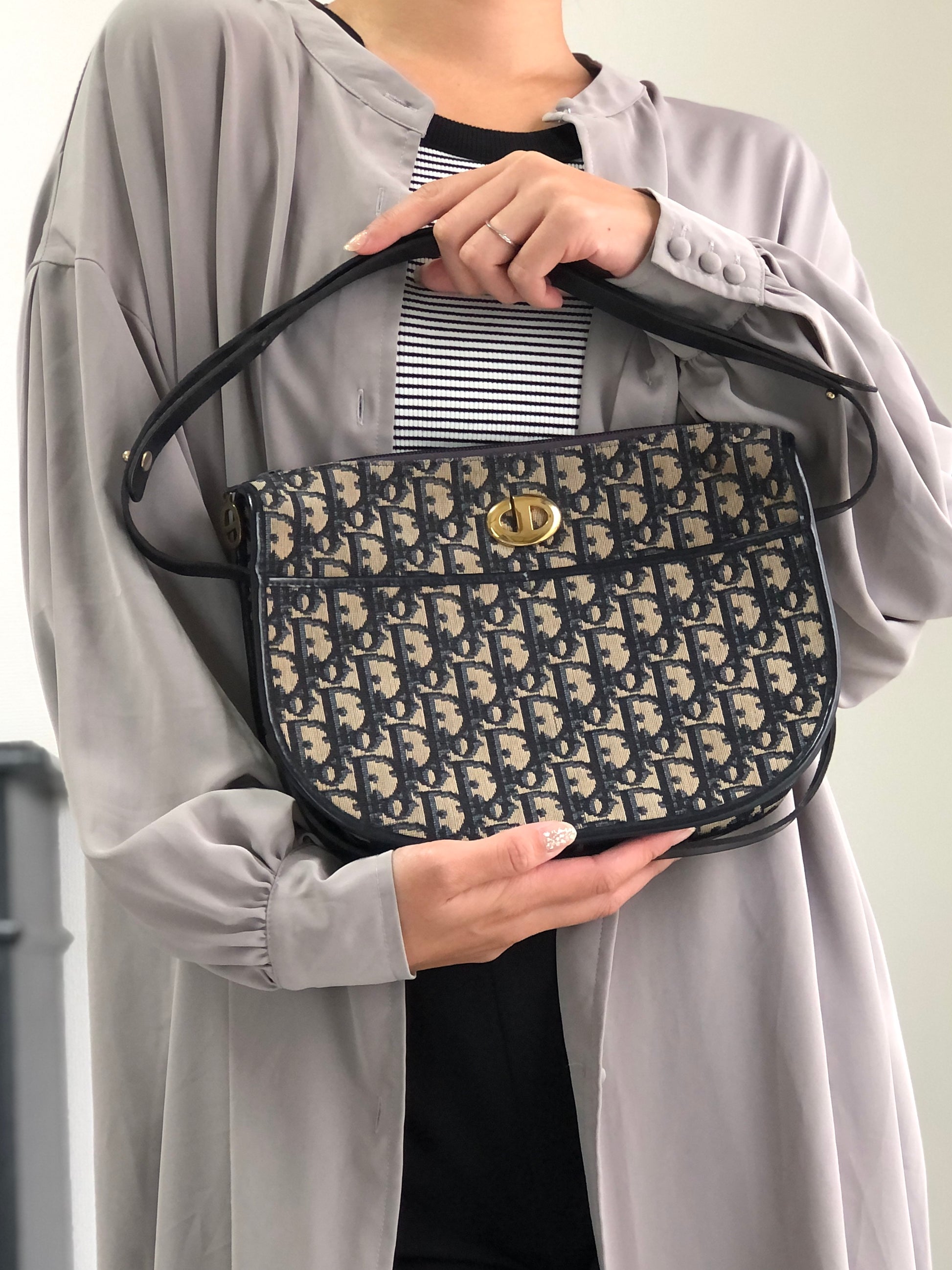 Christian Dior Trotter CD Logo Round Shoulder bag Navy Vintage pca7bv