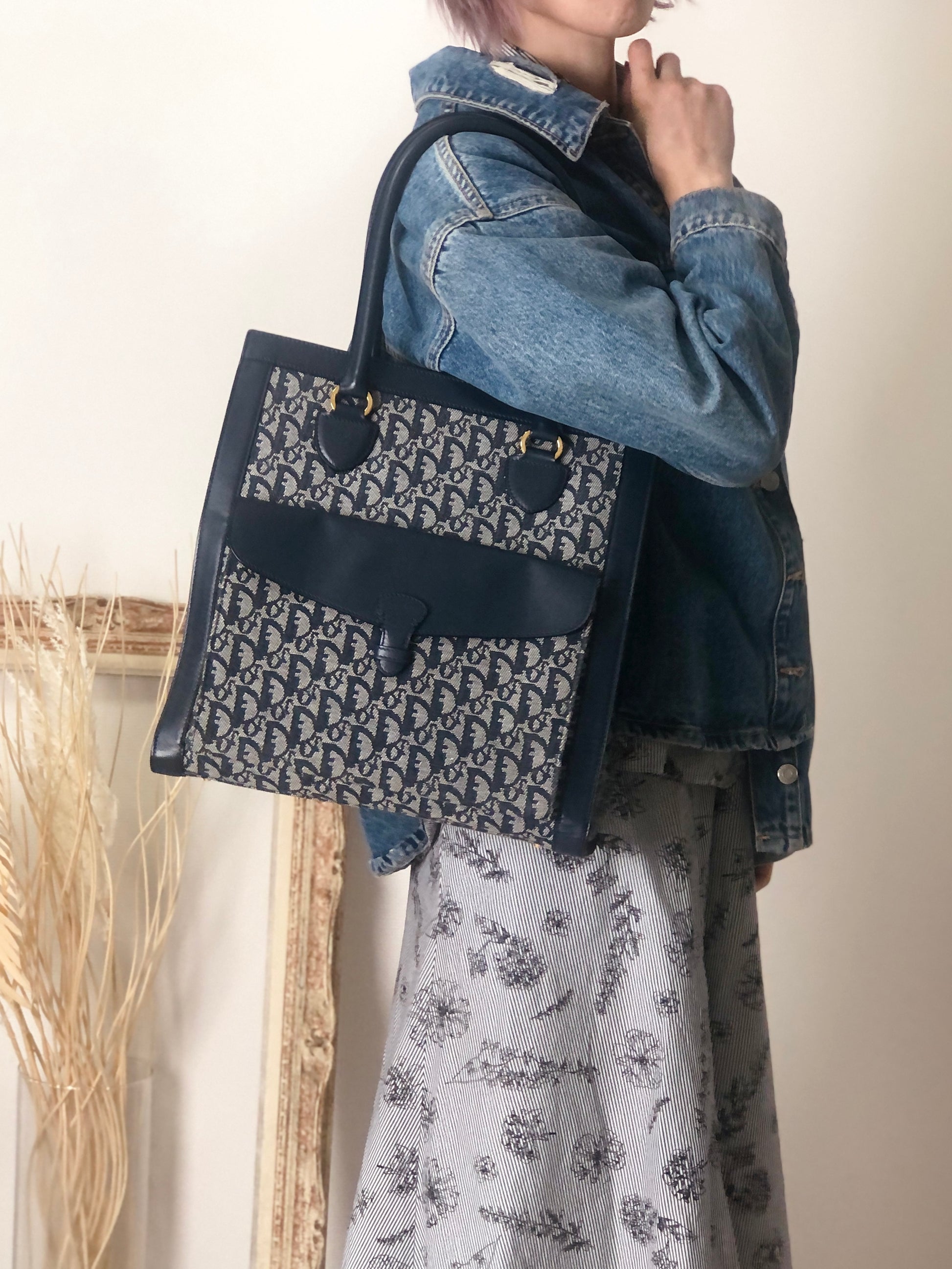 Christian Dior Trotter 前袋肩包托特包海軍藍復古 nak7gb