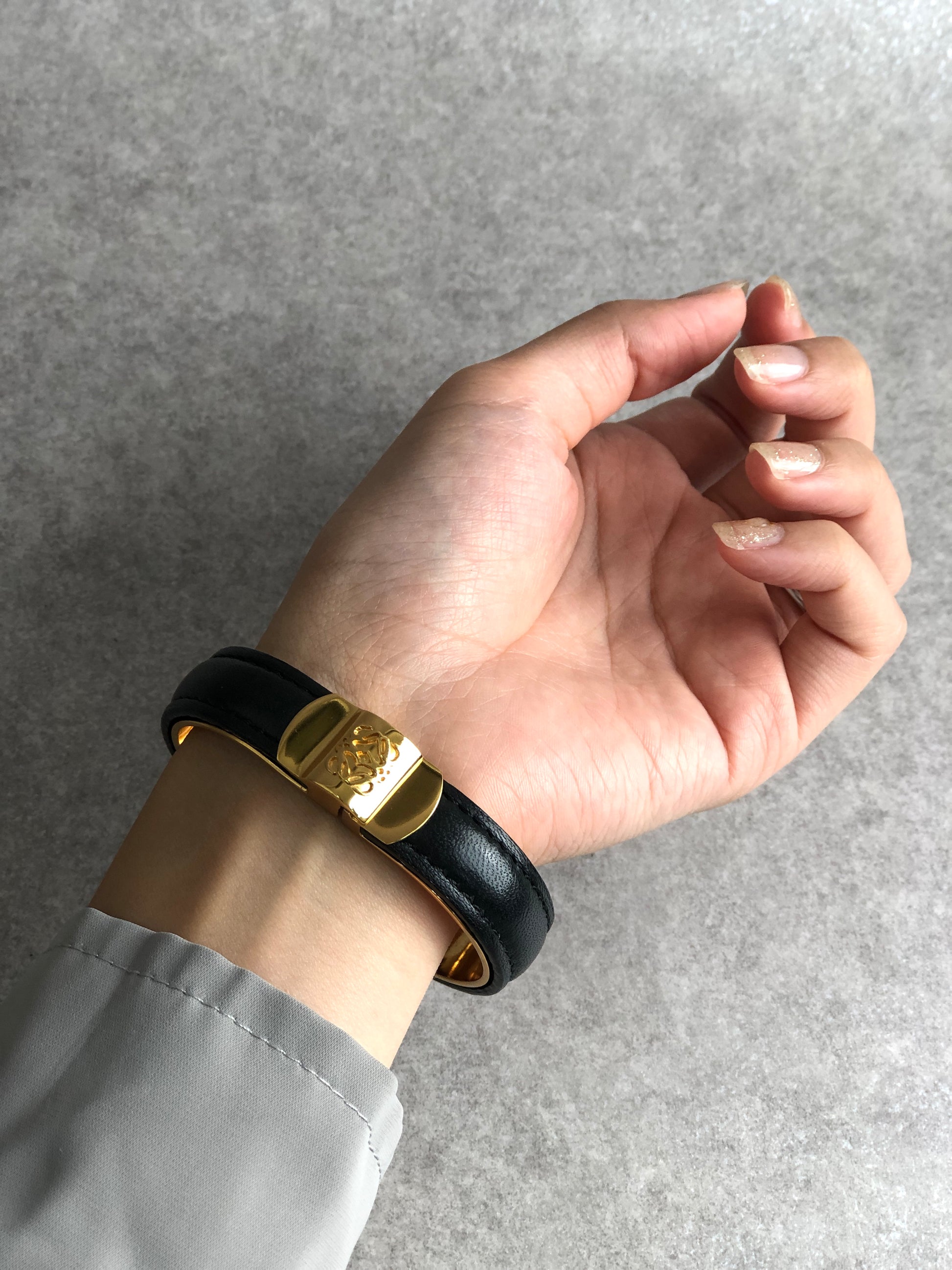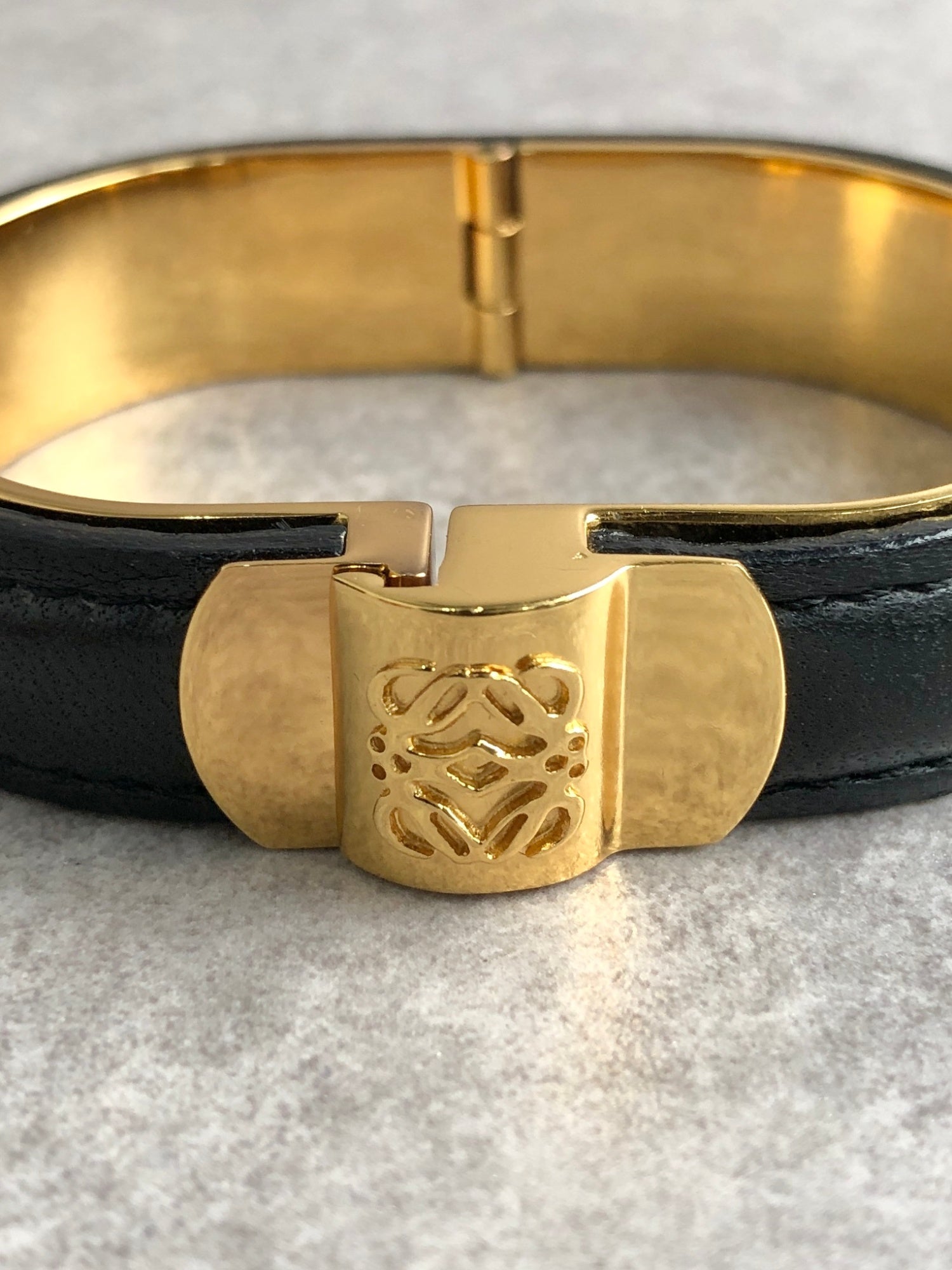 LOEWE Anagram Bangle Black×Gold Vintage 3pc2jj
