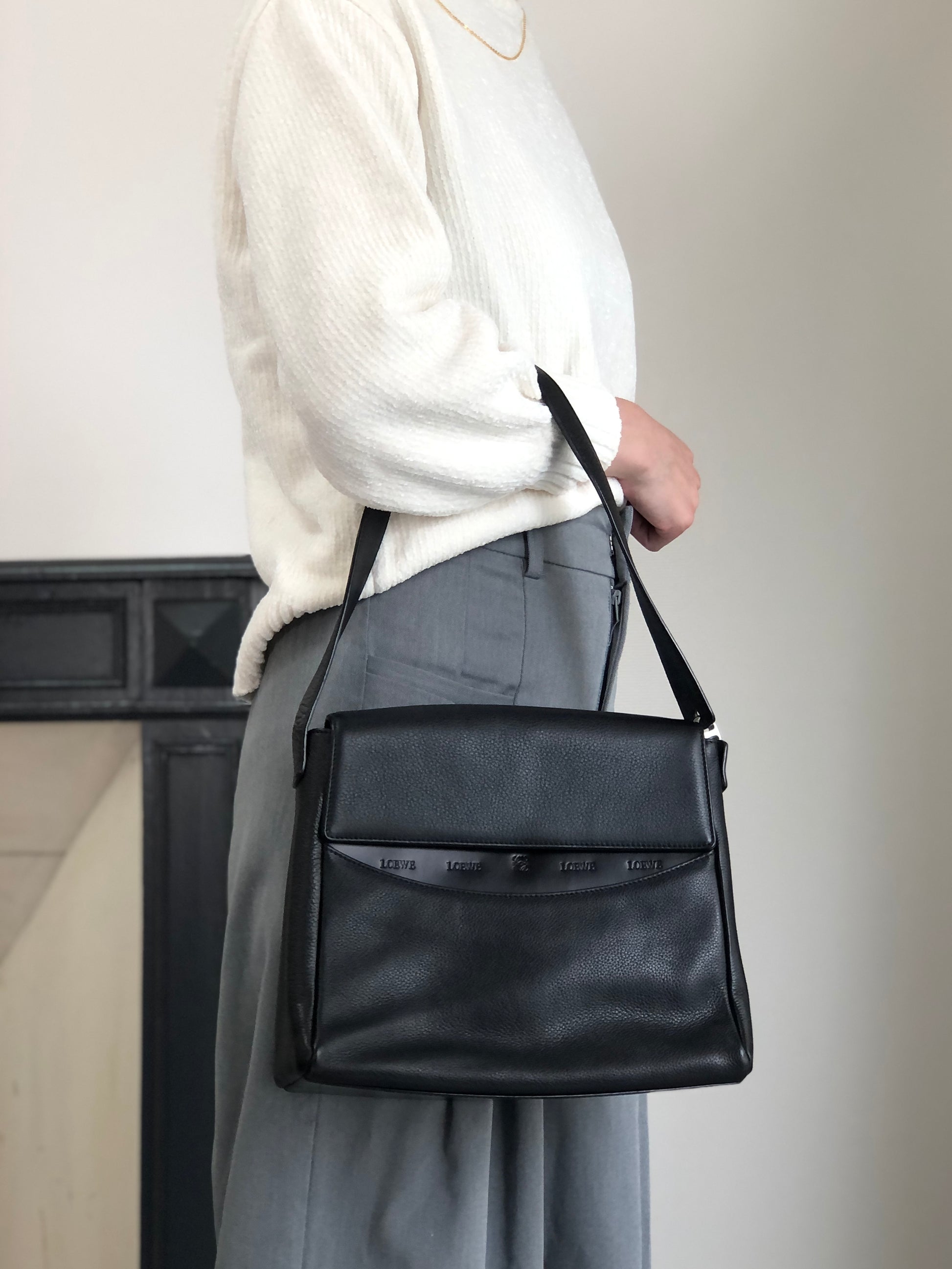 LOEWE Logo Embossed Shoulder bag Black Vintage ni55eb