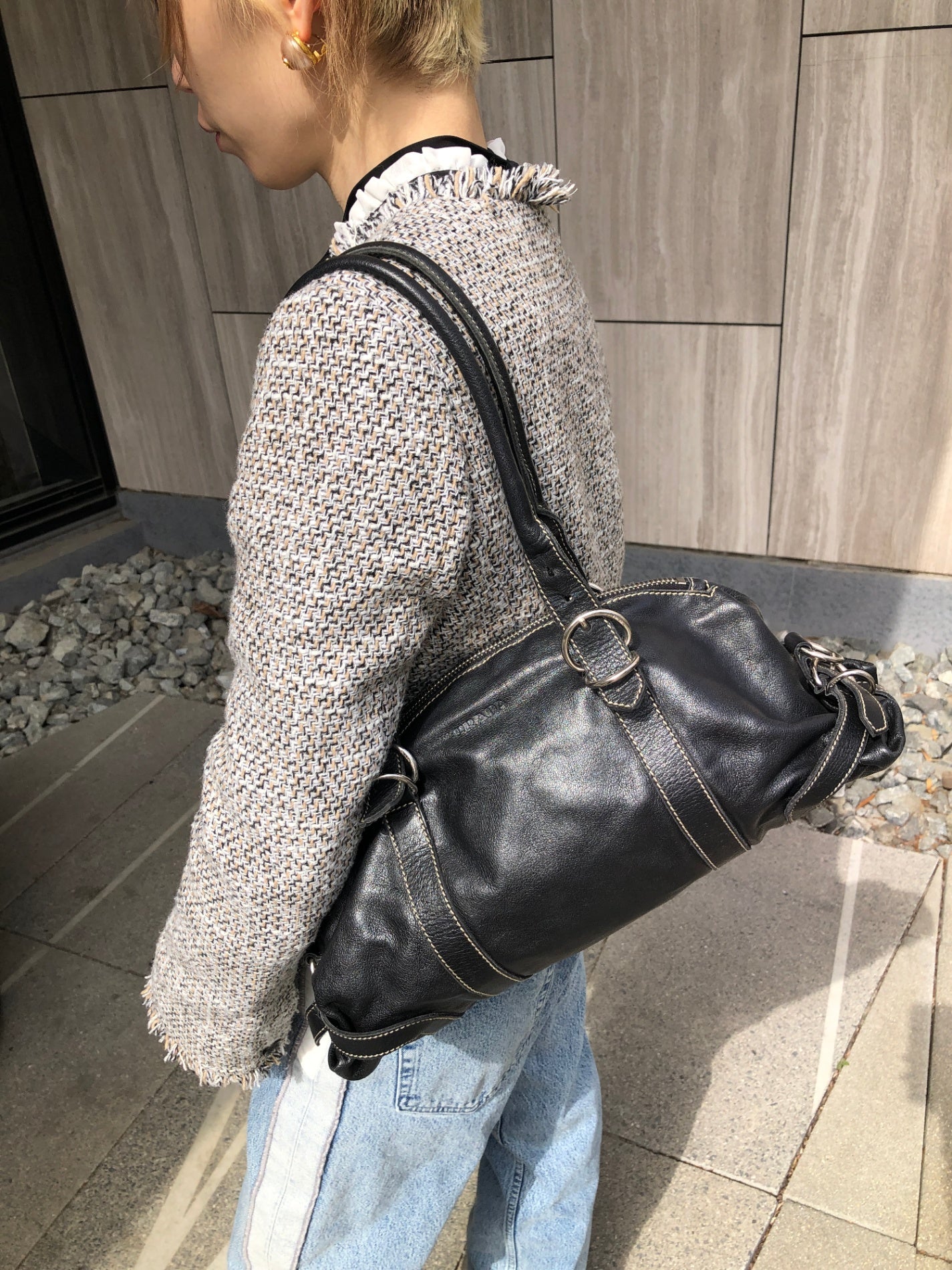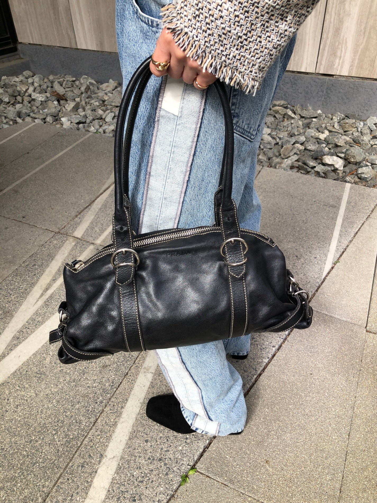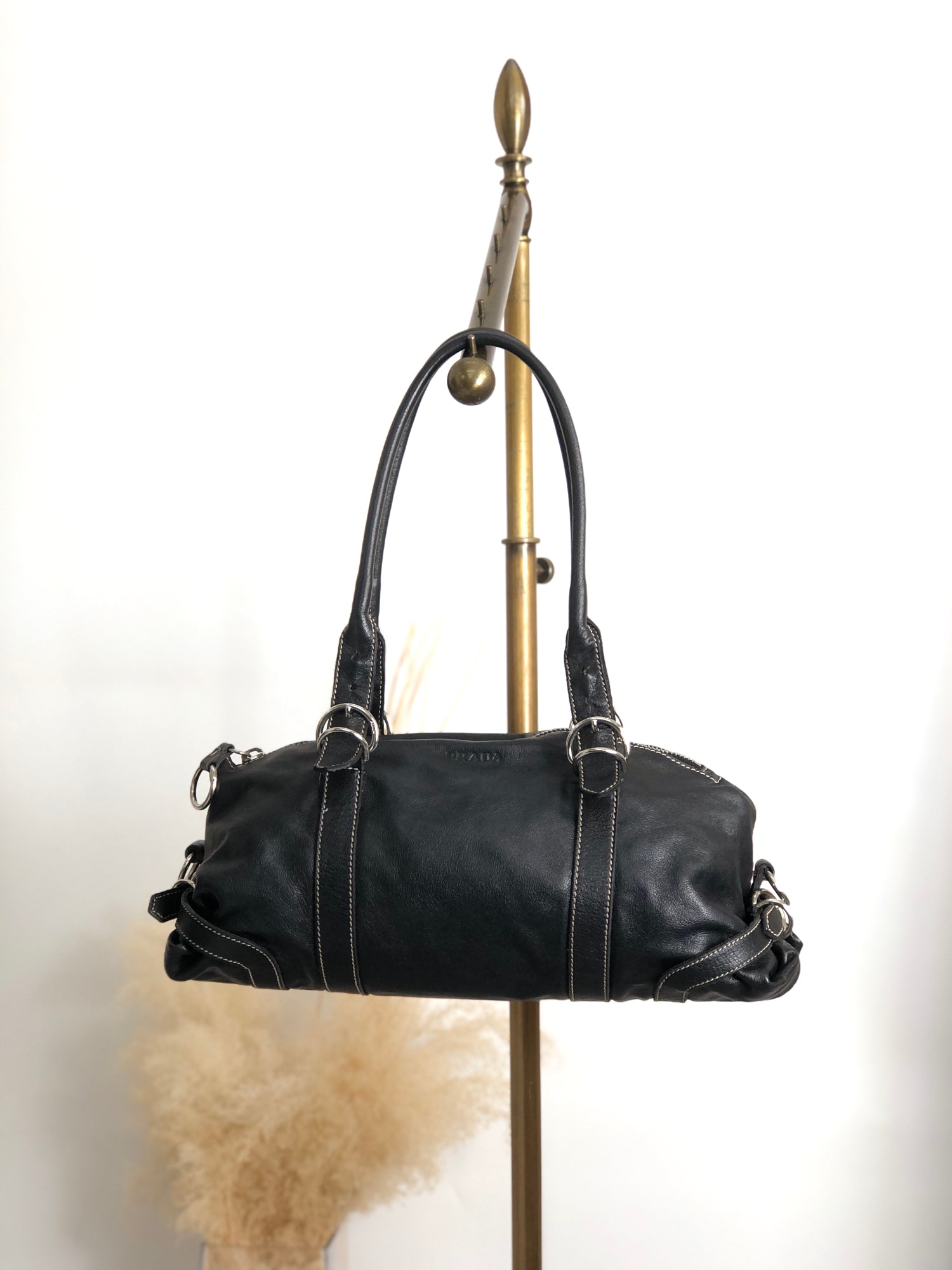 PRADA Logo Embossed Belt Handbag Black Vintage m8shz4