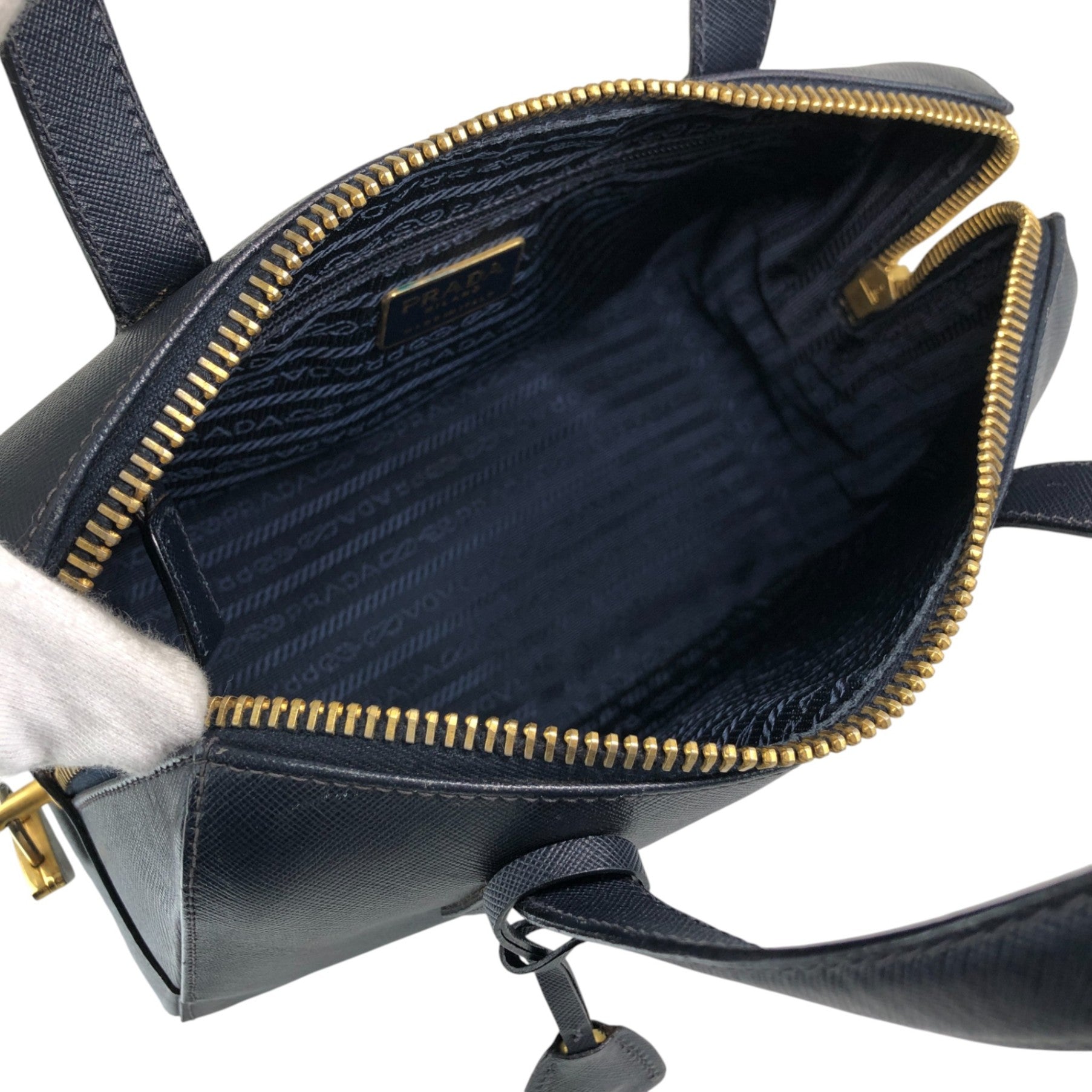 PRADA Logo Embossed Padlock Handbag Navy Vintage w43cew