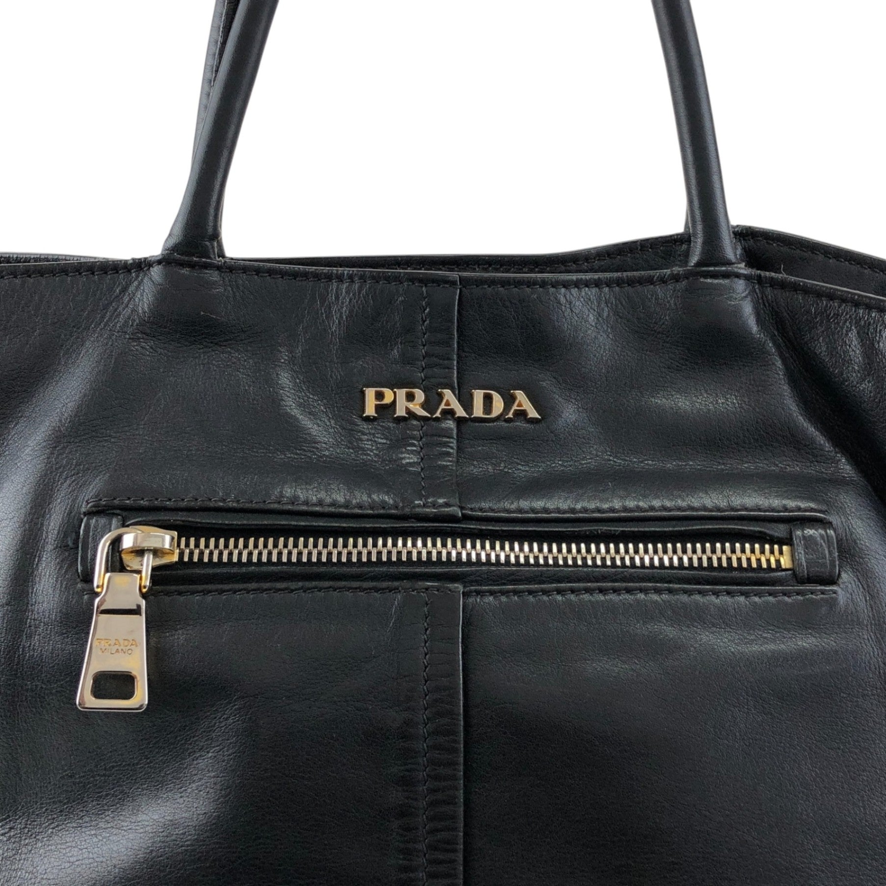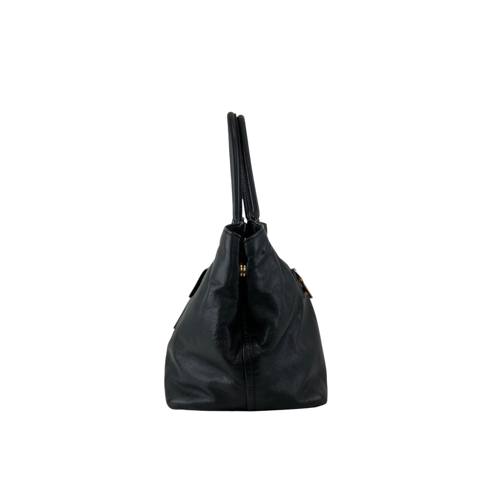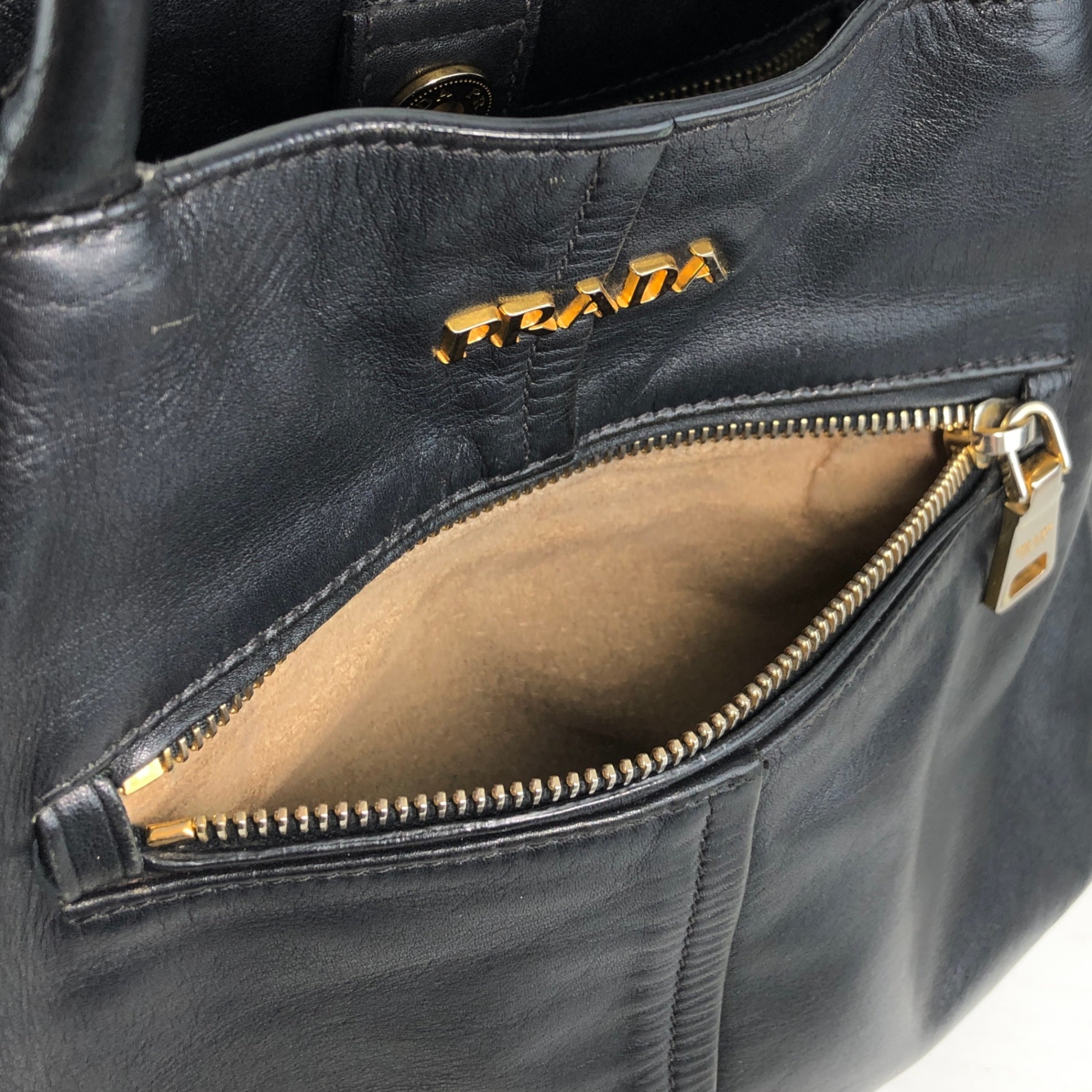 PRADA Logo Front Pocket Handbag Black Vintage gkw2r3