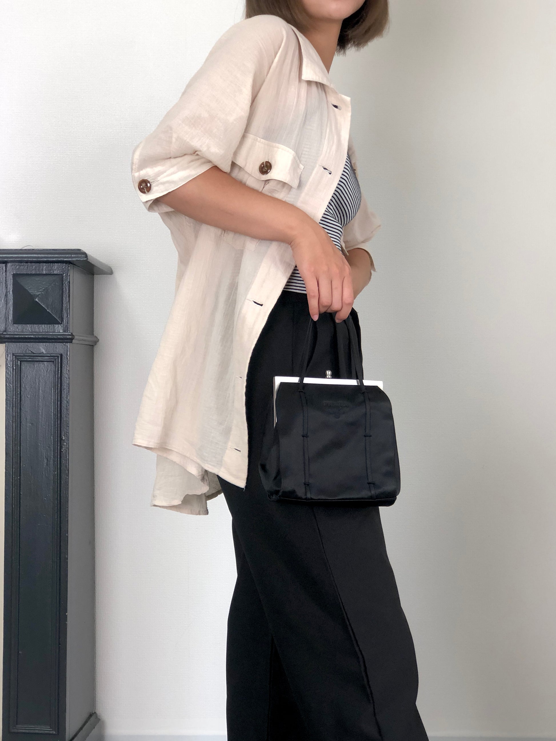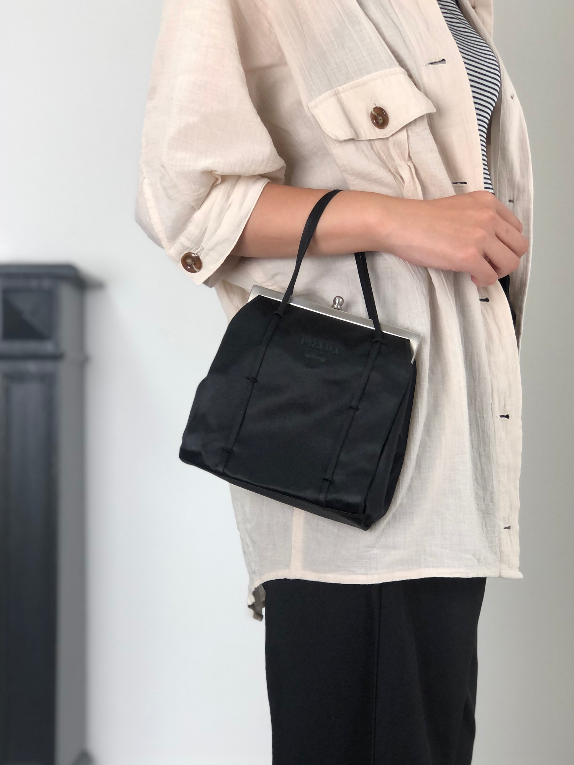 PRADA Logo Metal Clasp Small Handbag Black Vintage sh35vg