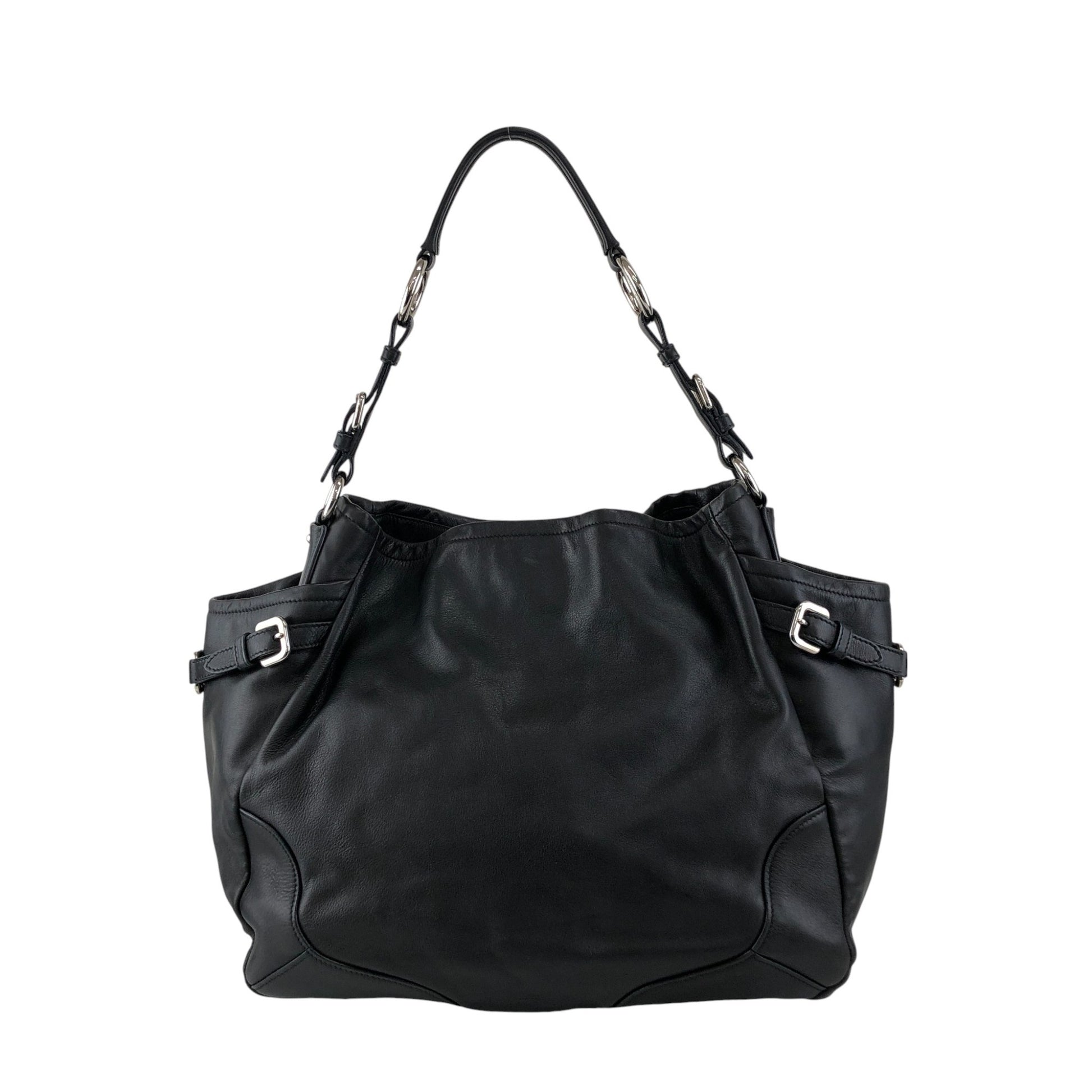 PRADA Logo Side Pocket Handbag Black Vintage ab8g6p